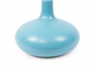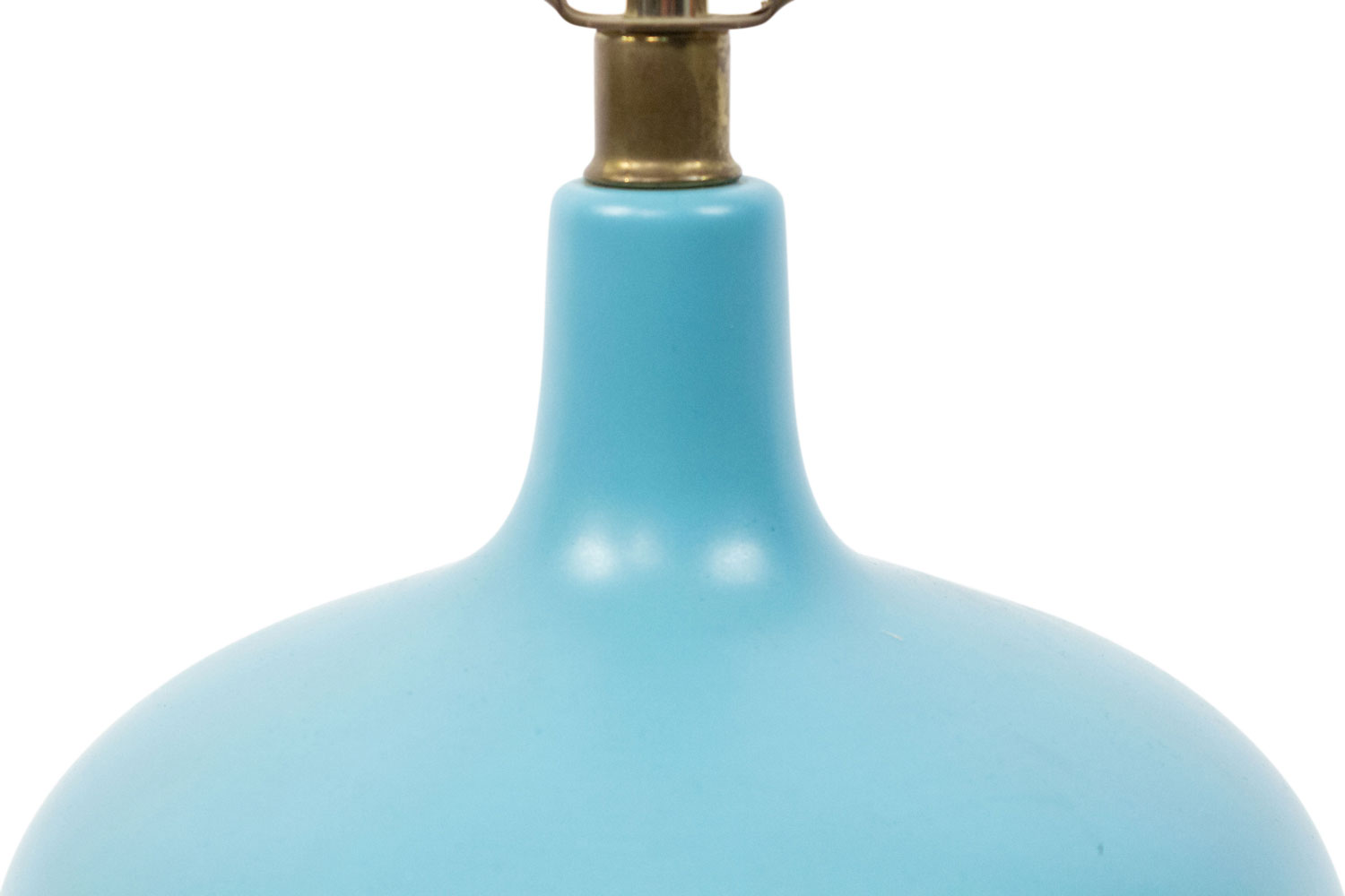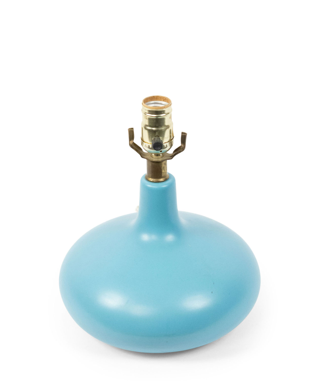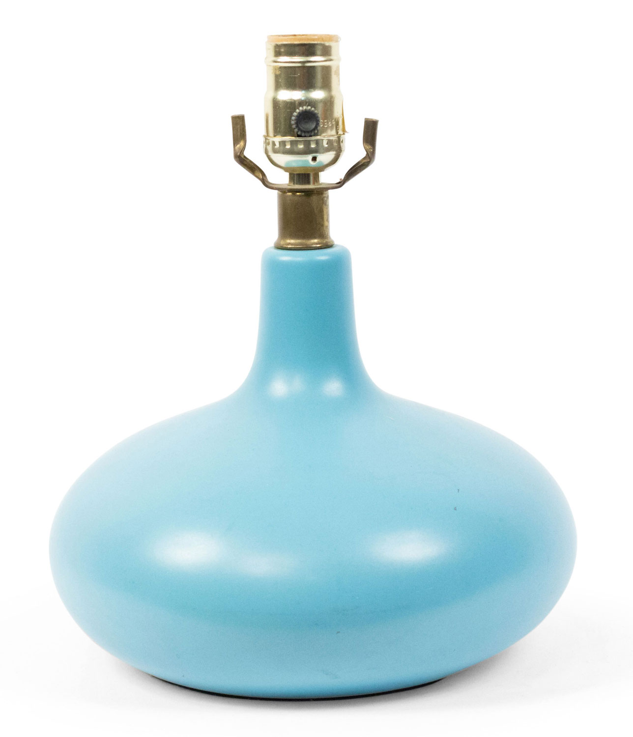 American Mid-Century style light blue porcelain table lamp with a bulbous base over a short narrow neck