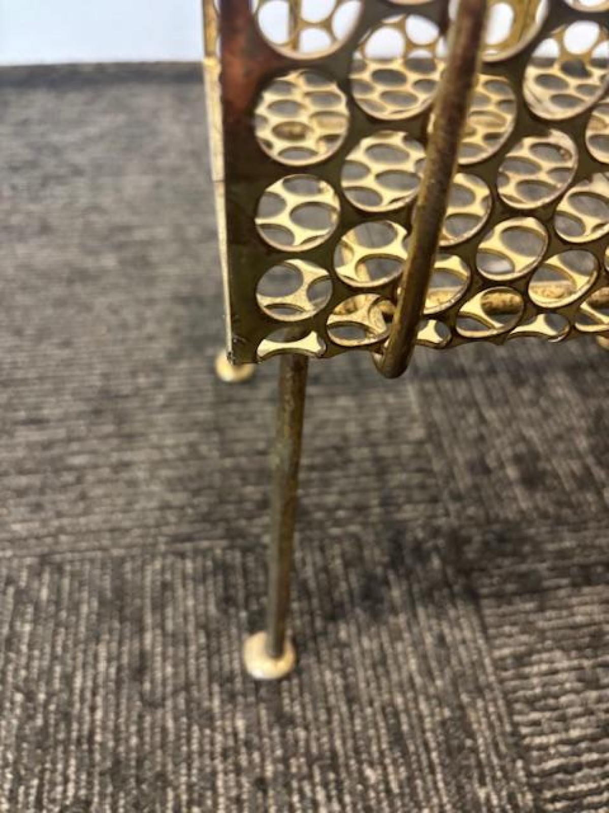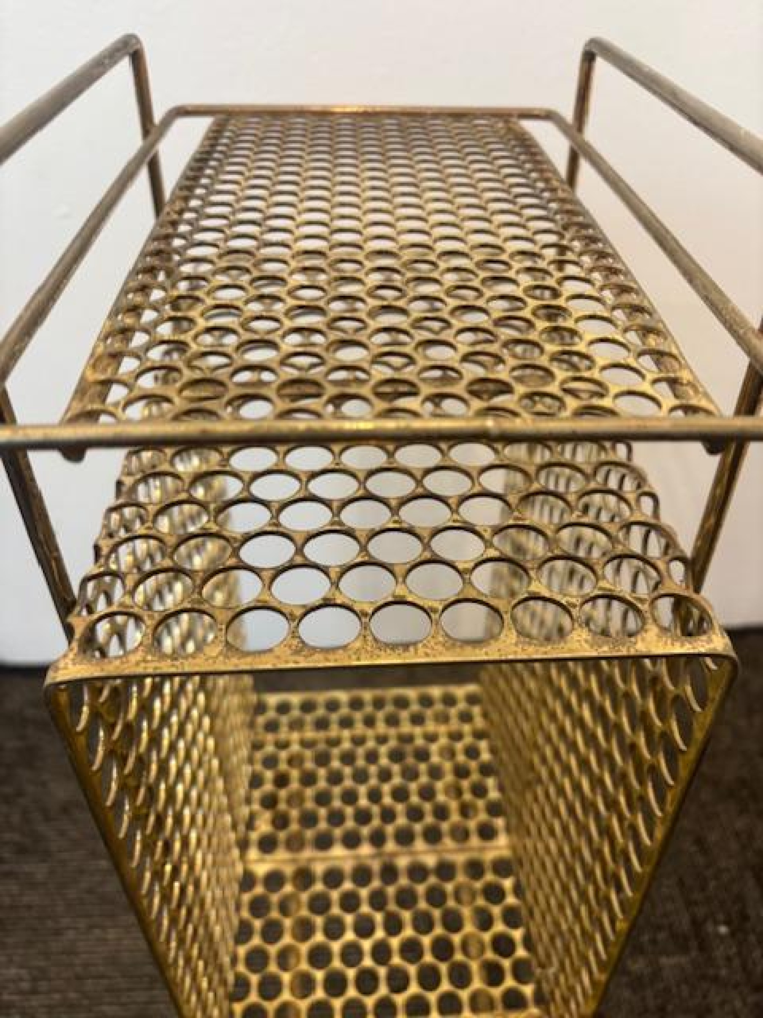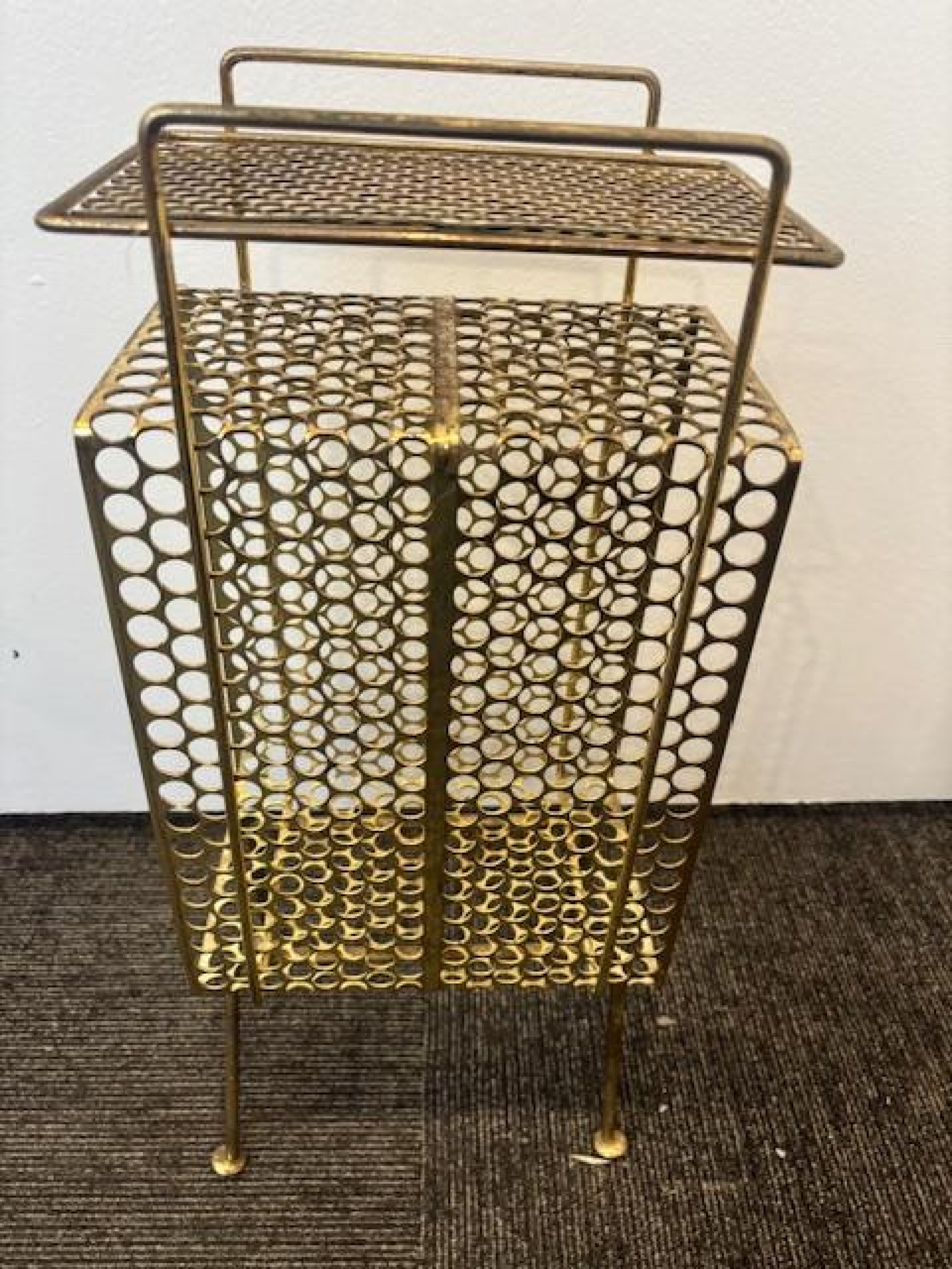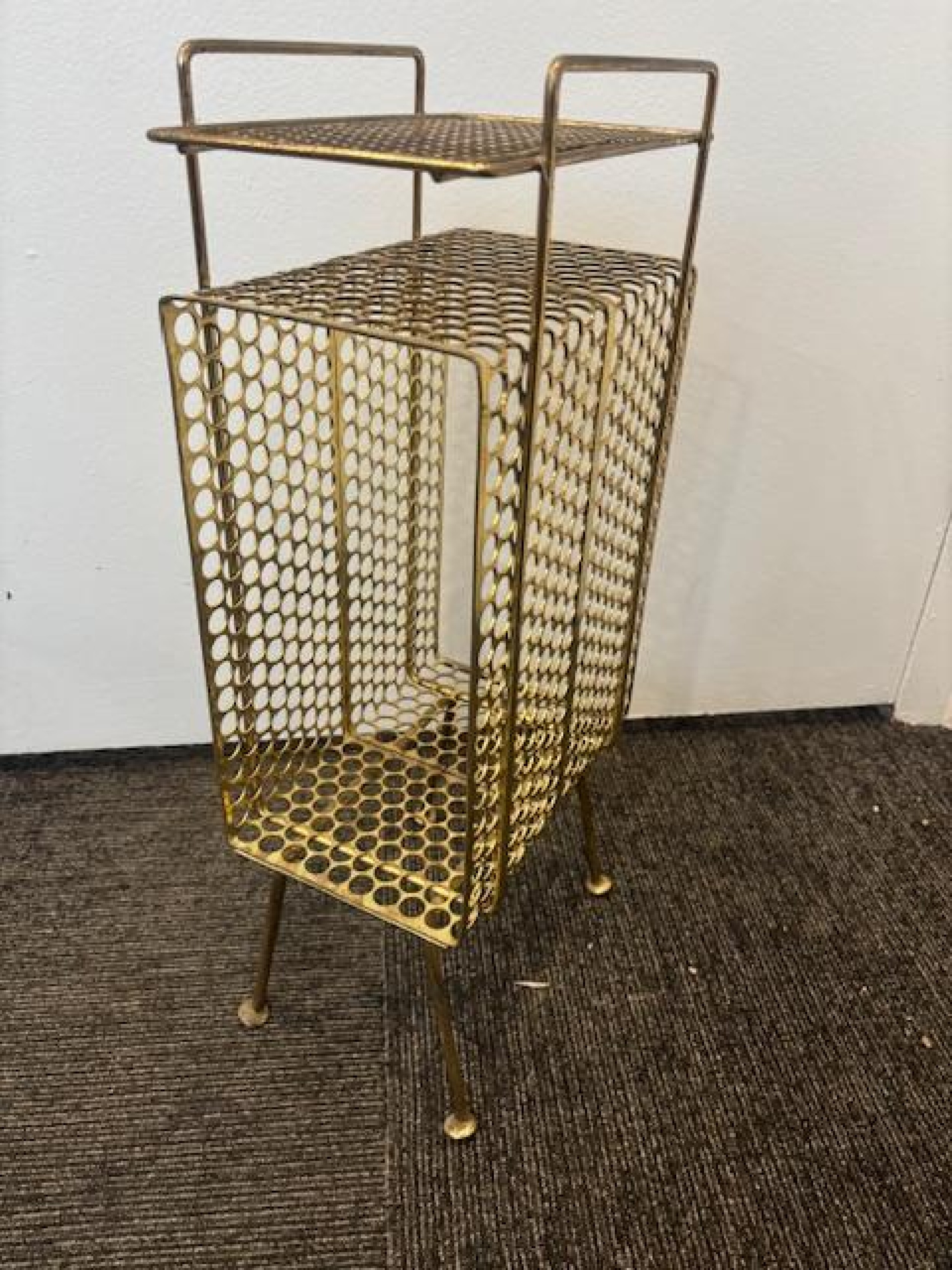 Mid-Century brass mesh magazine rack telephone table