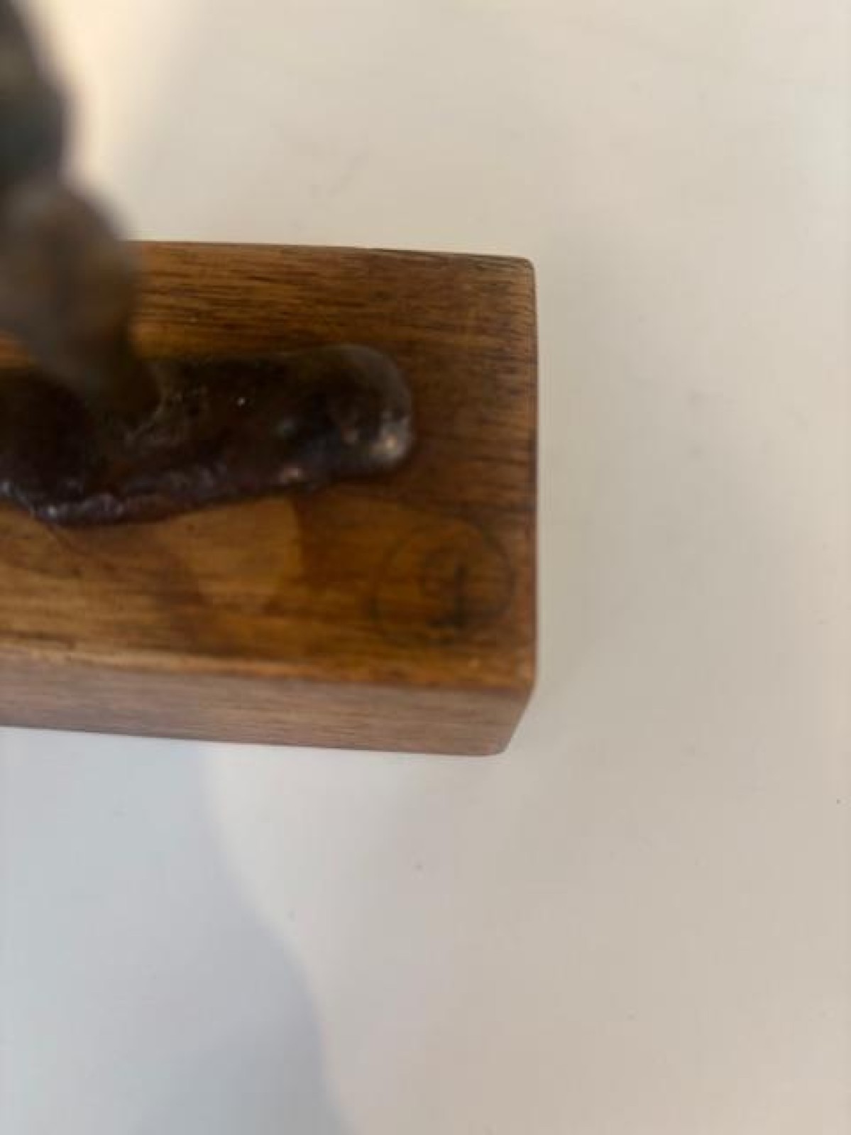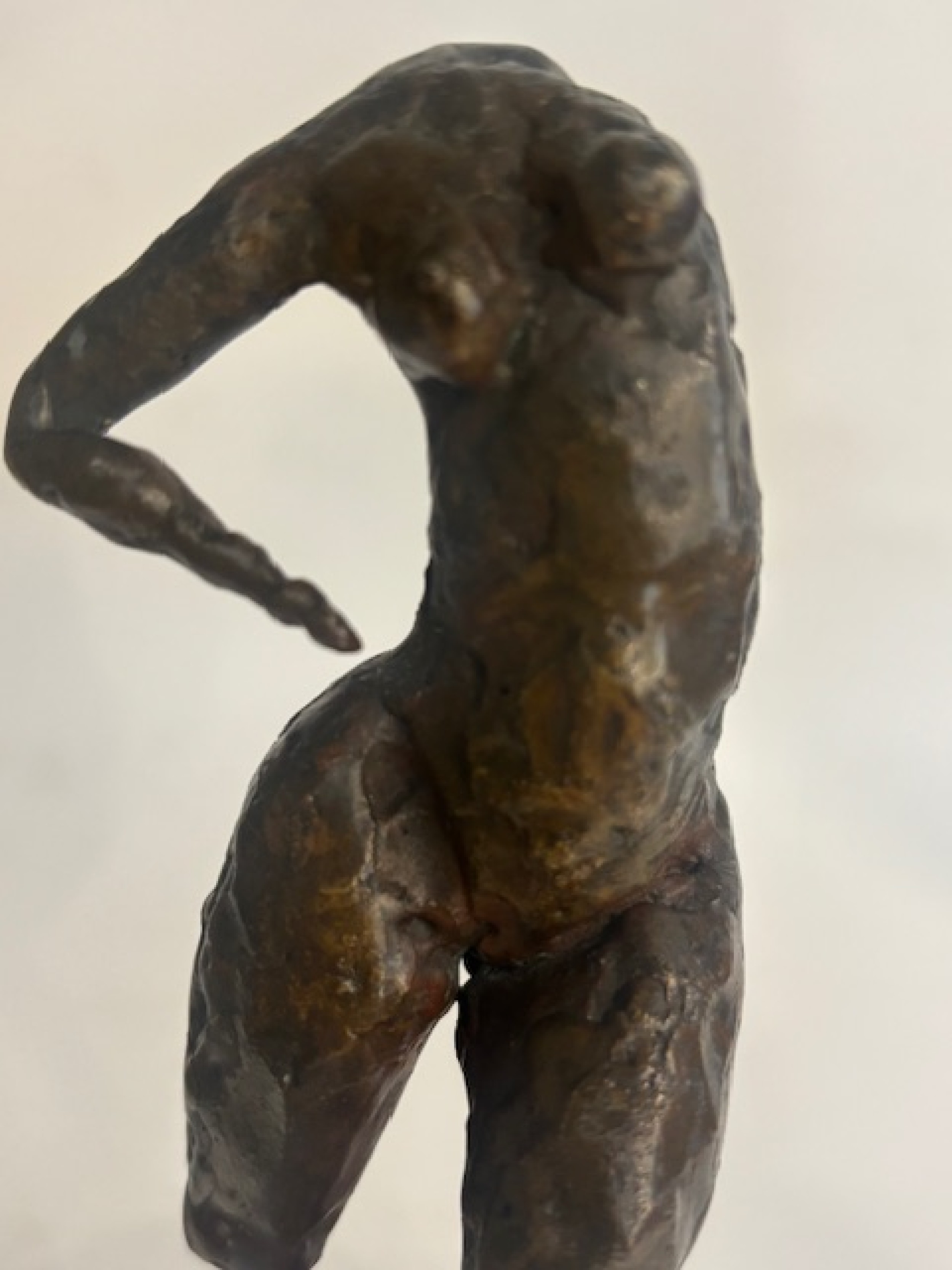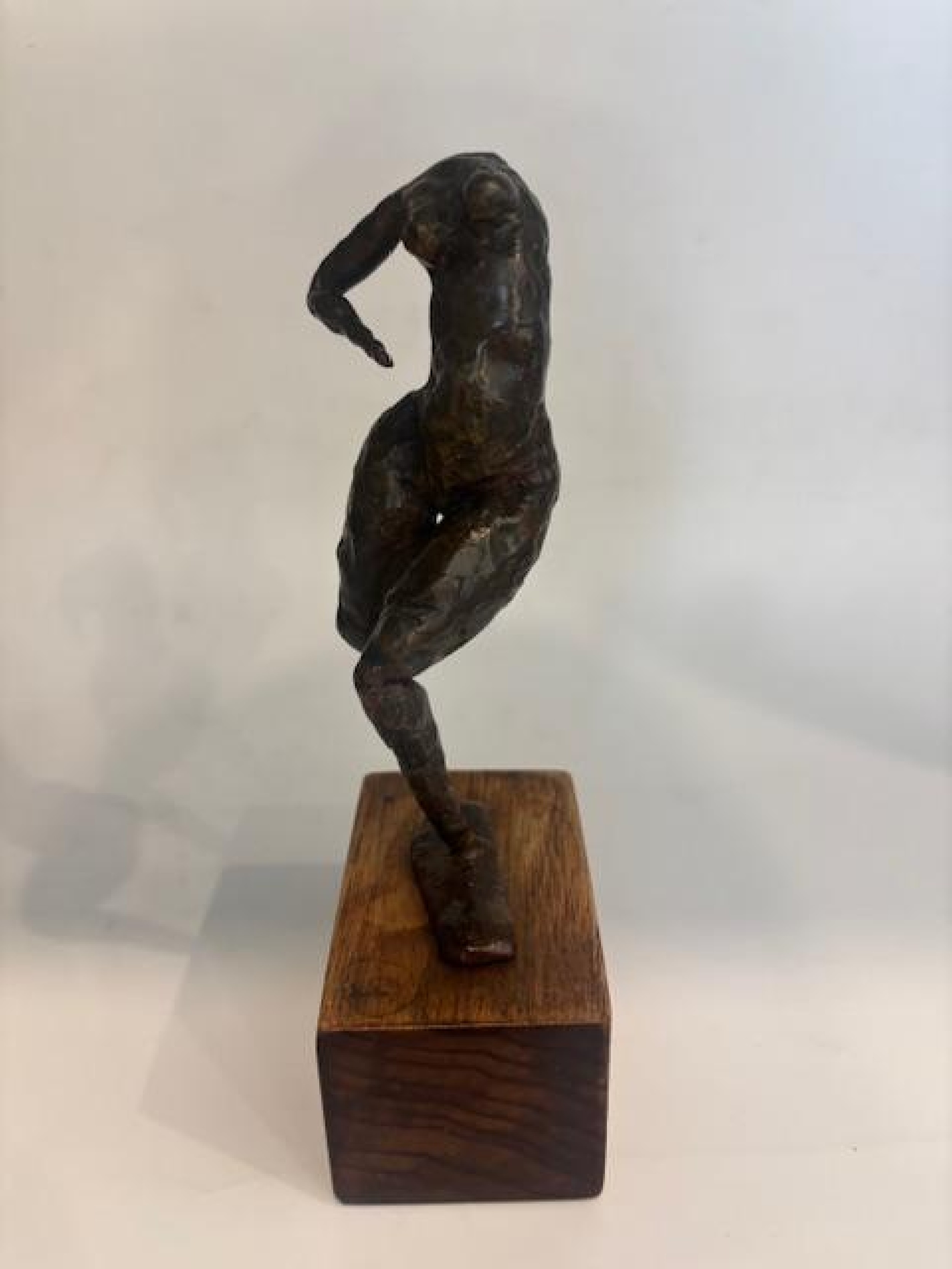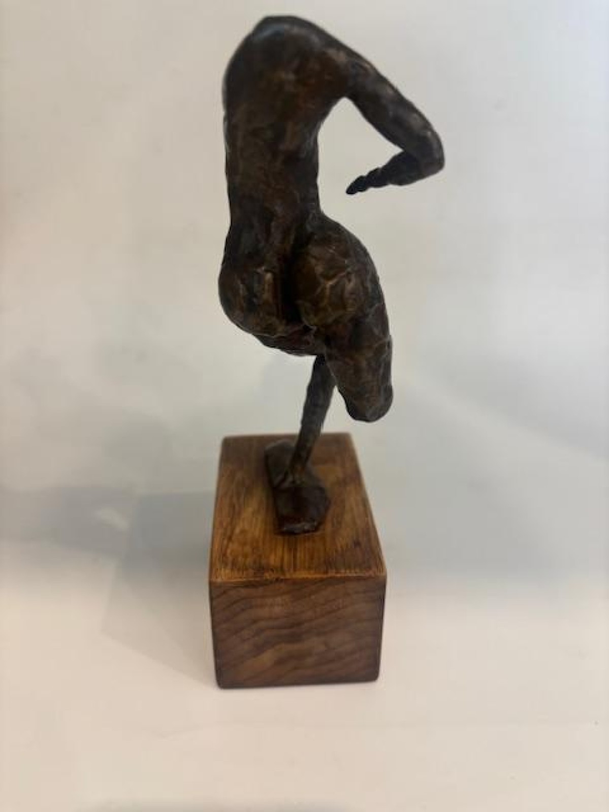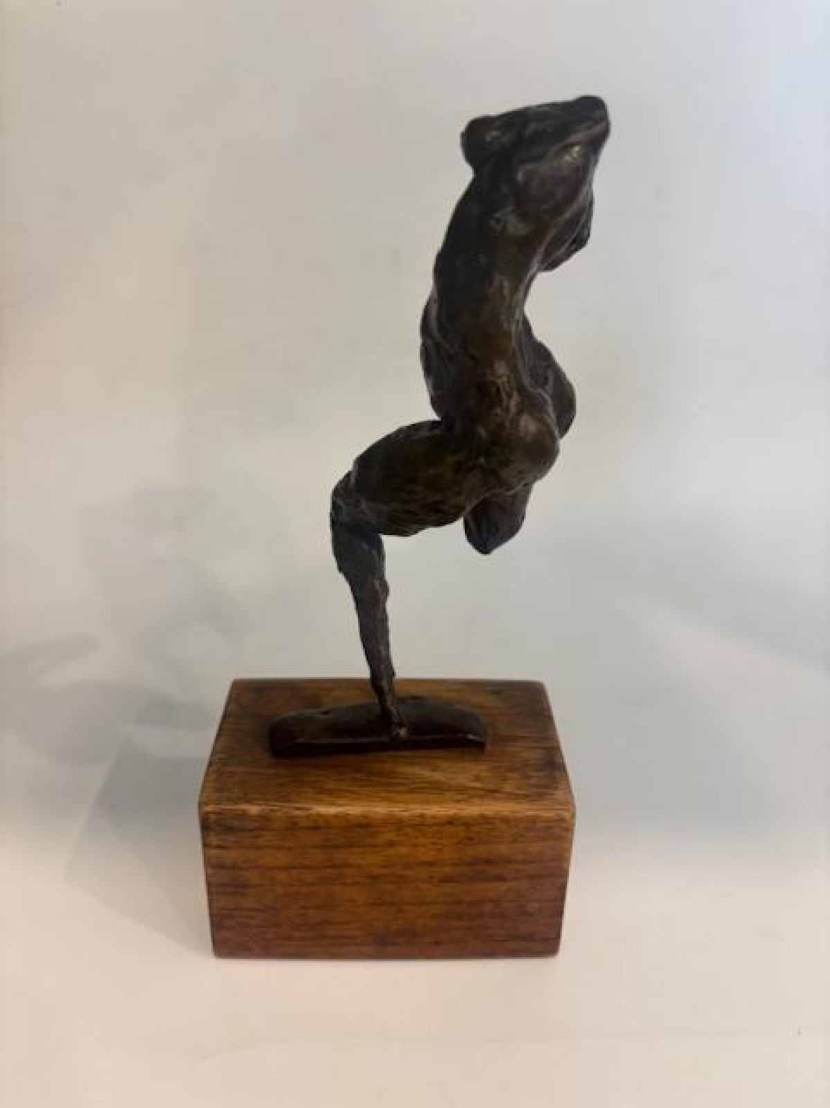 Mid-Century small bronze scupture of a contorting female nude mounted on a rectangular wood base
