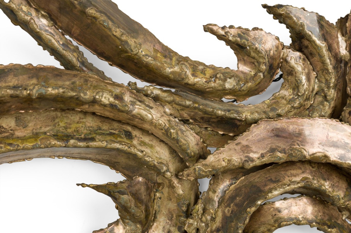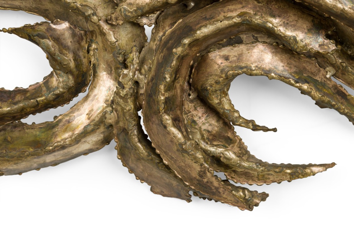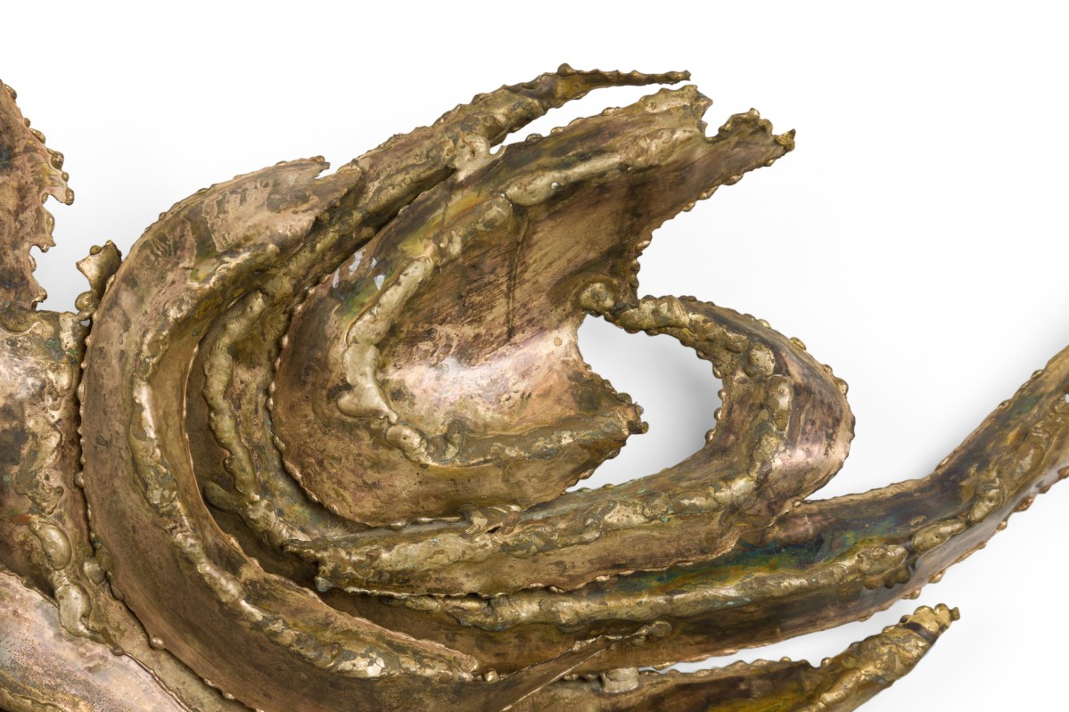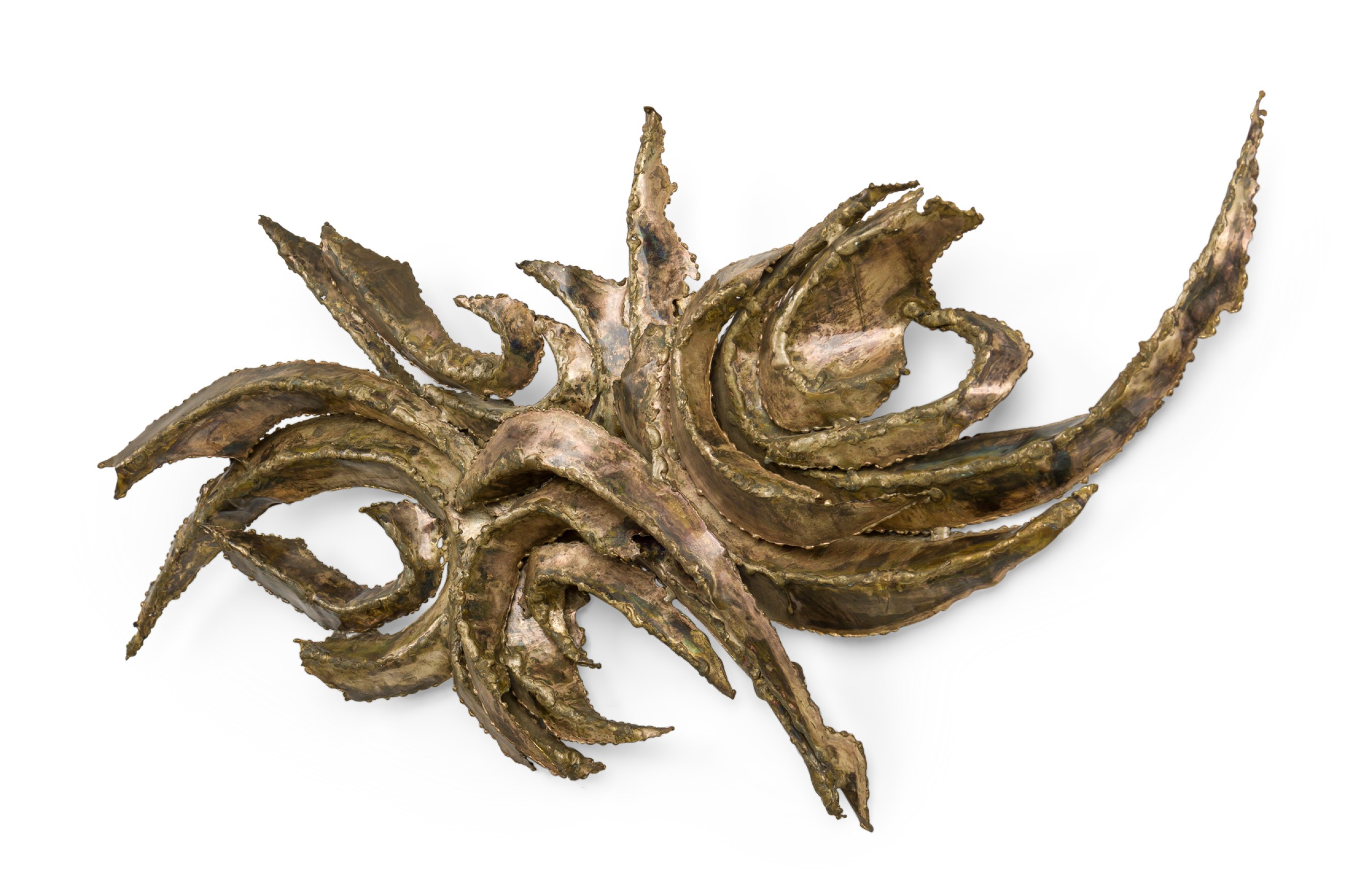 Mid-Century American Brutalist style wall plaque featuring an abstract bent metal design