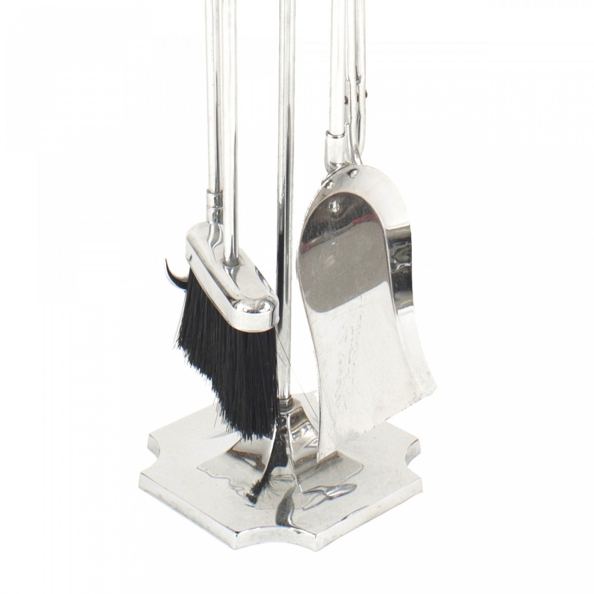 American Mid-Century Modern chrome set of 4 fire tools on a matching stand.