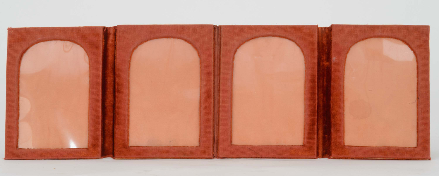 Mid-Century vintage set of 4 rectangular red velvet frames with arch-shaped openings attached together