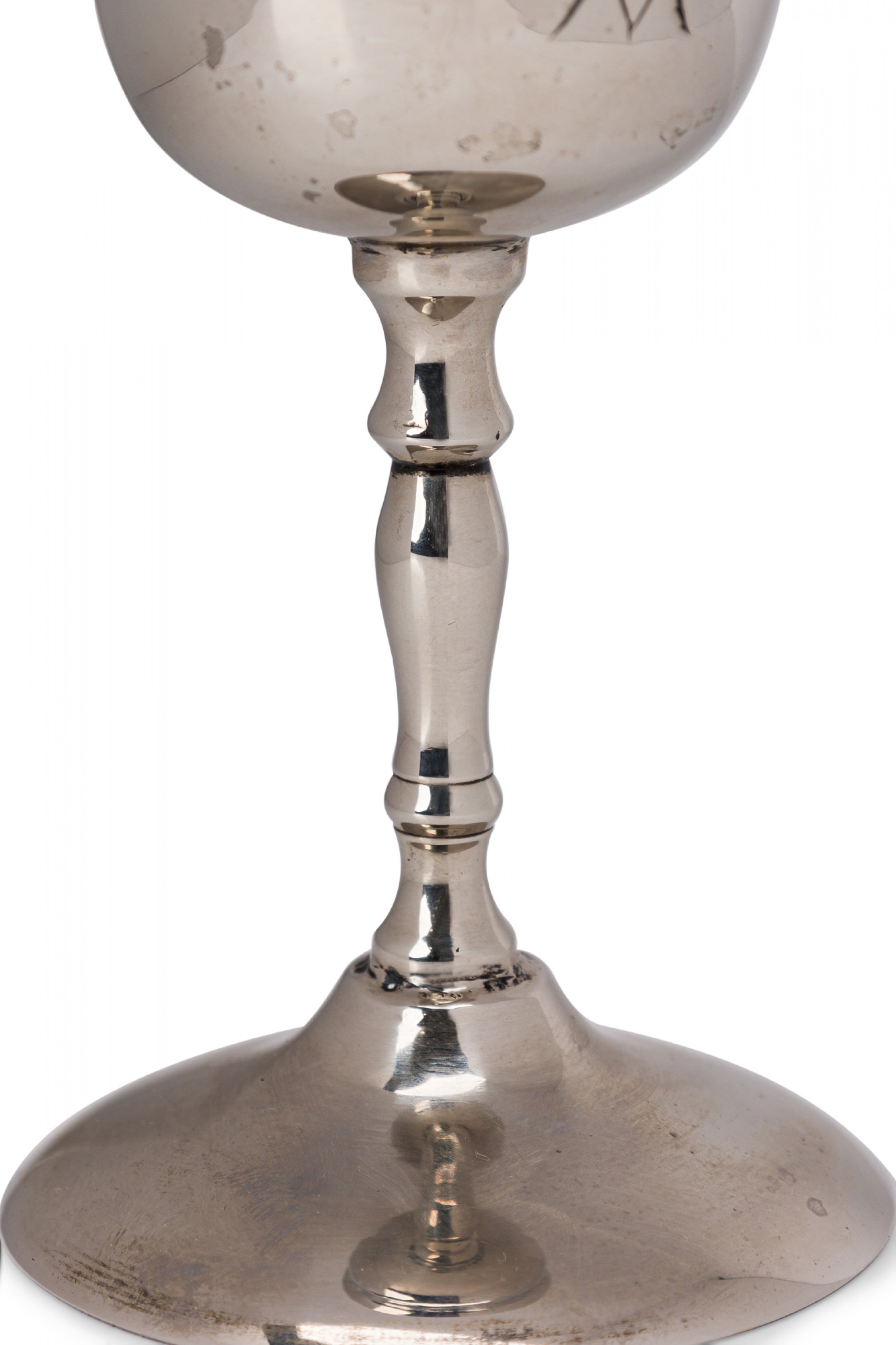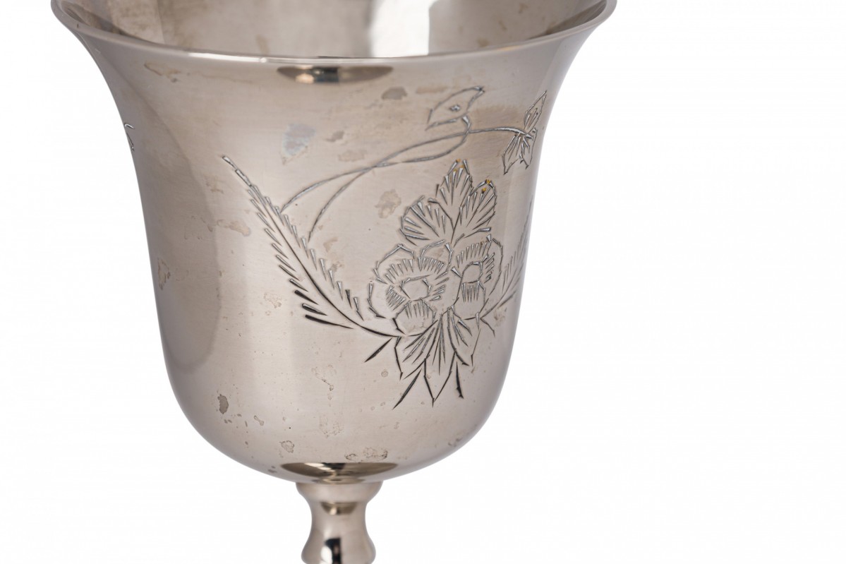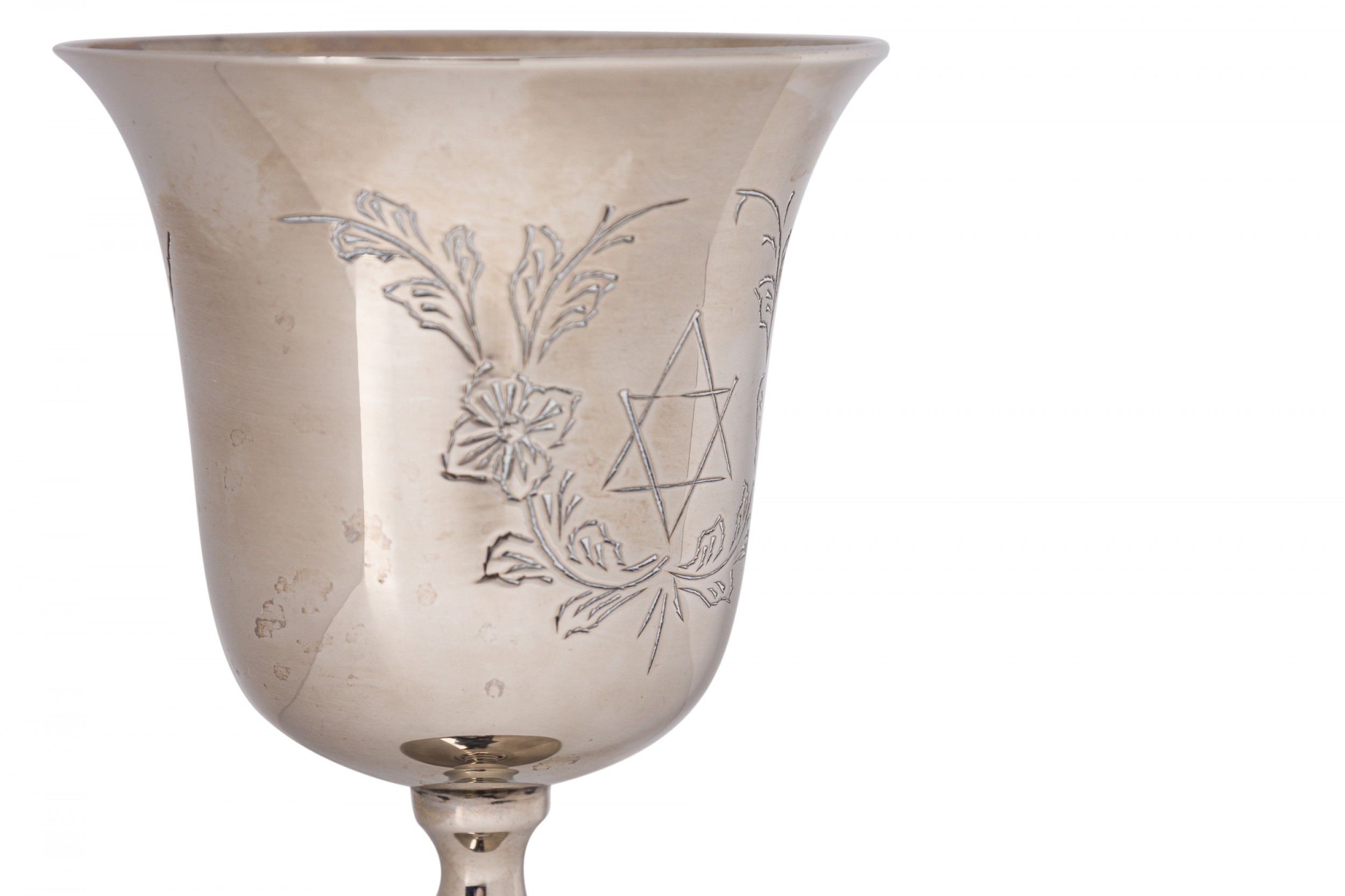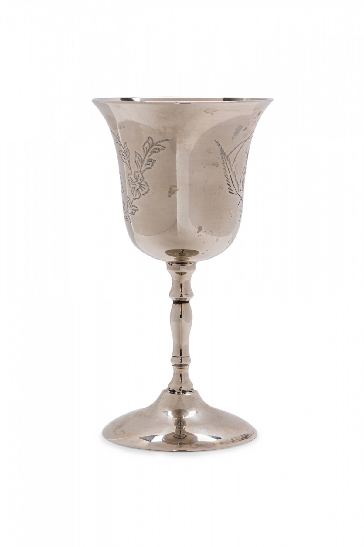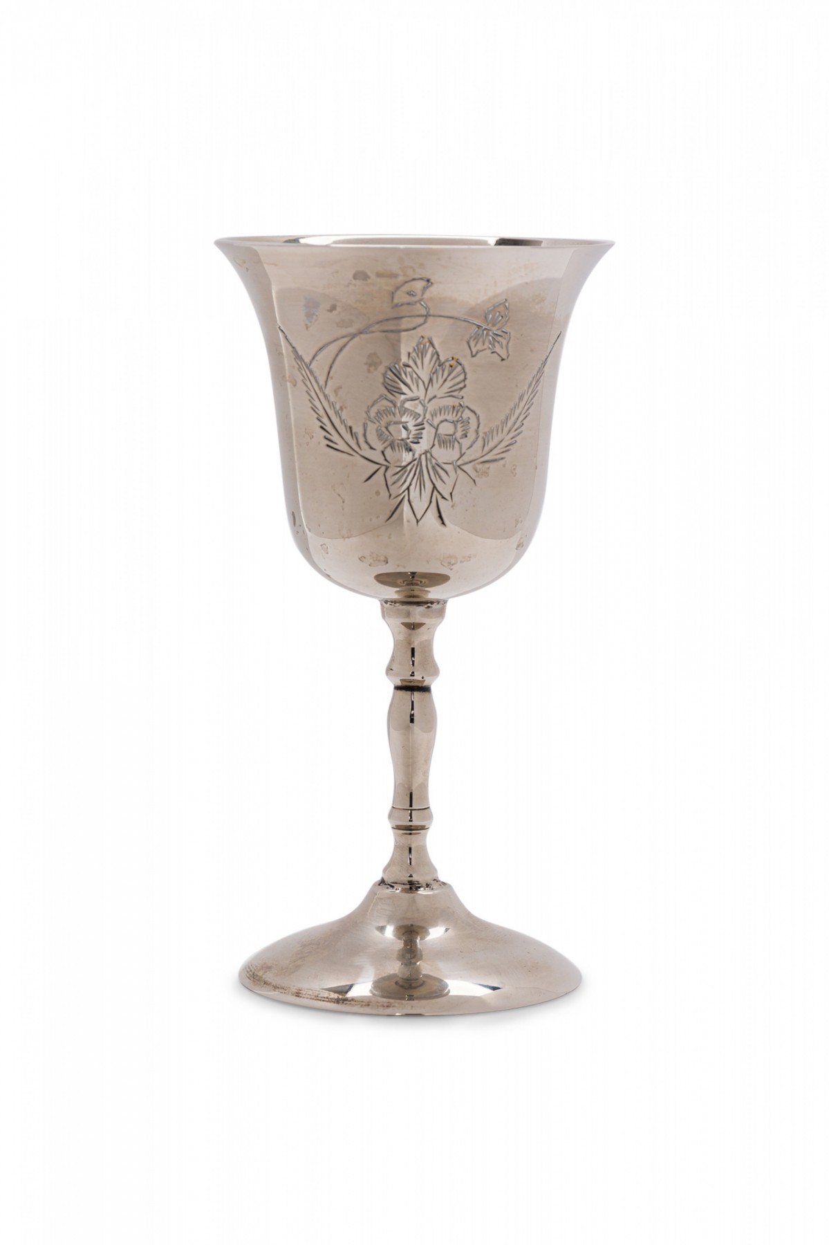 Mid-Century silver Kiddush cup in a goblet form depicting the Star of David and floral arrangements on a shaped stem.