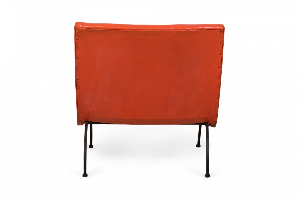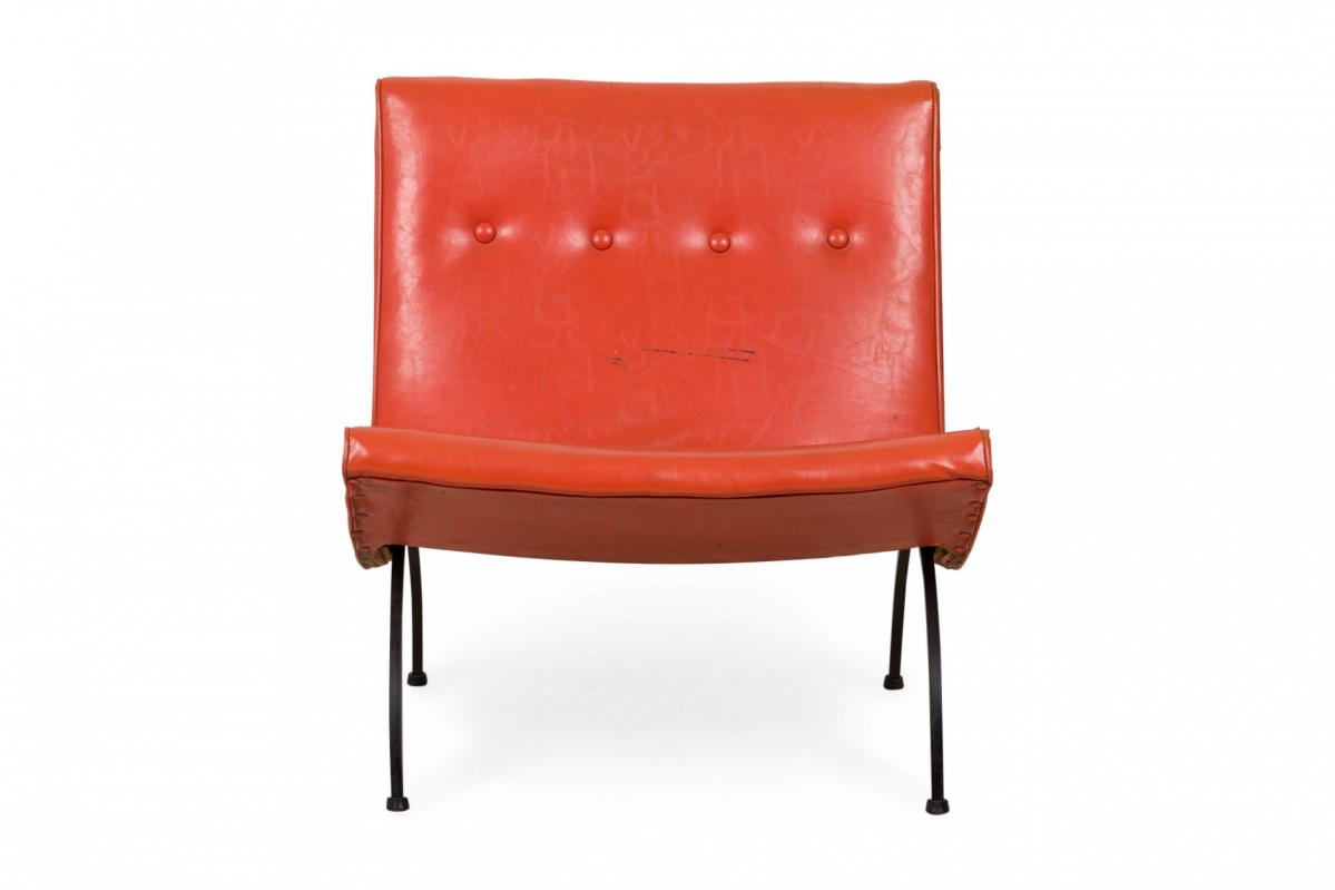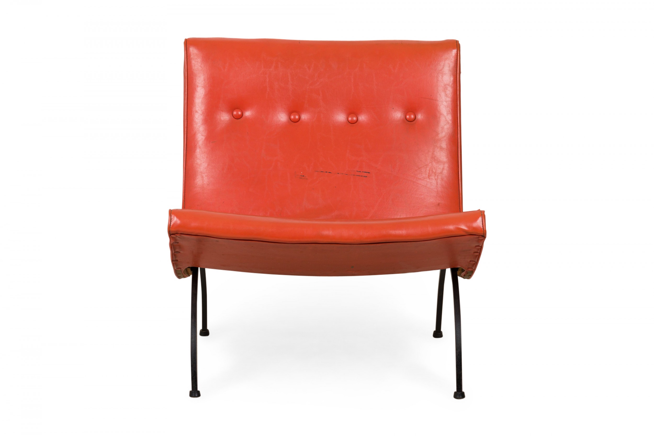 Choose one of the options below.American Mid-Century Orange Tufted Vinyl Upholstery and Iron Scoop Lounge / Side Chair