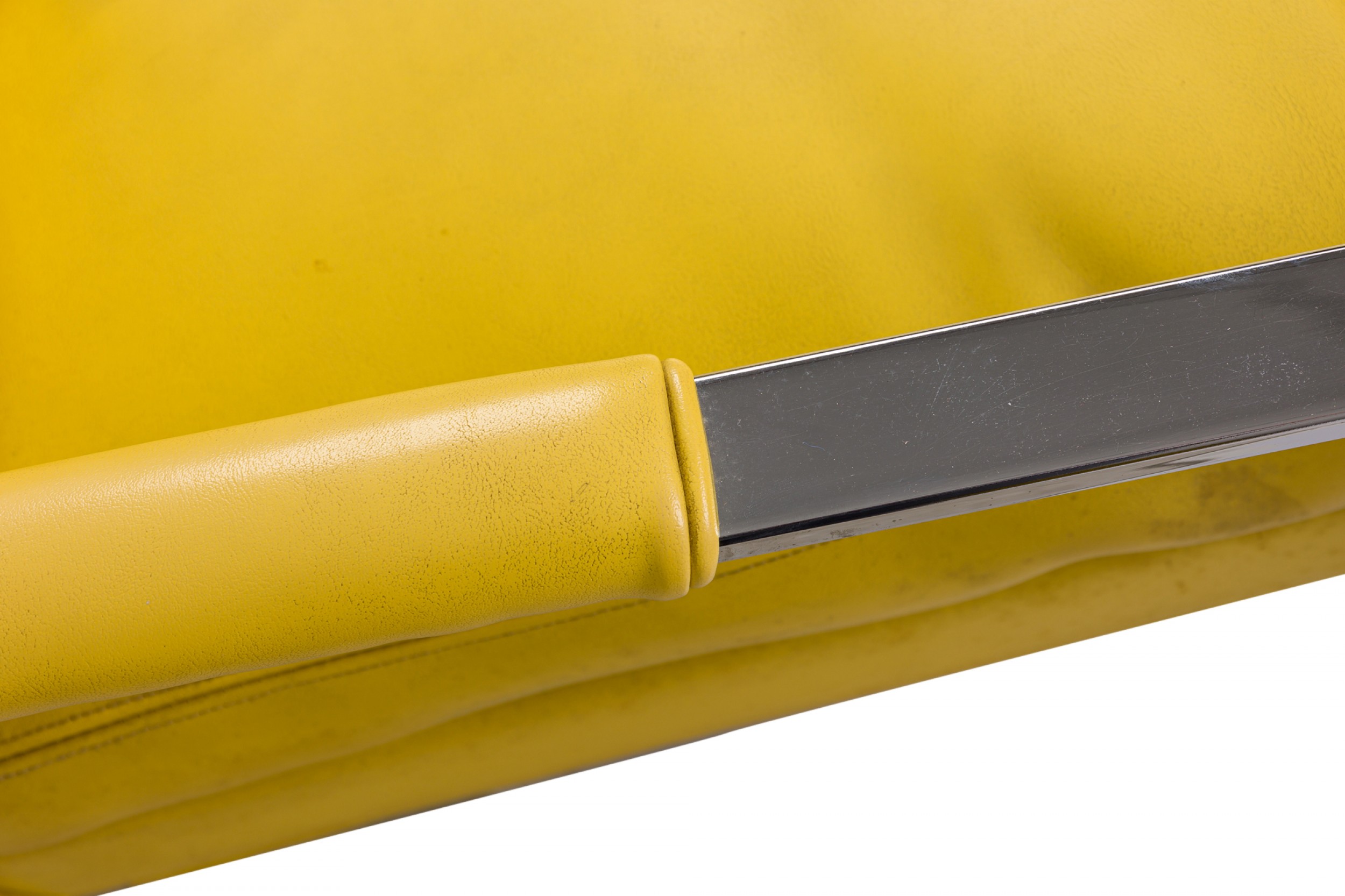 Choose one of the options below.American Mid-Century Chrome and Yellow Vinyl Upholstered Flat Bar Lounge Armchairs