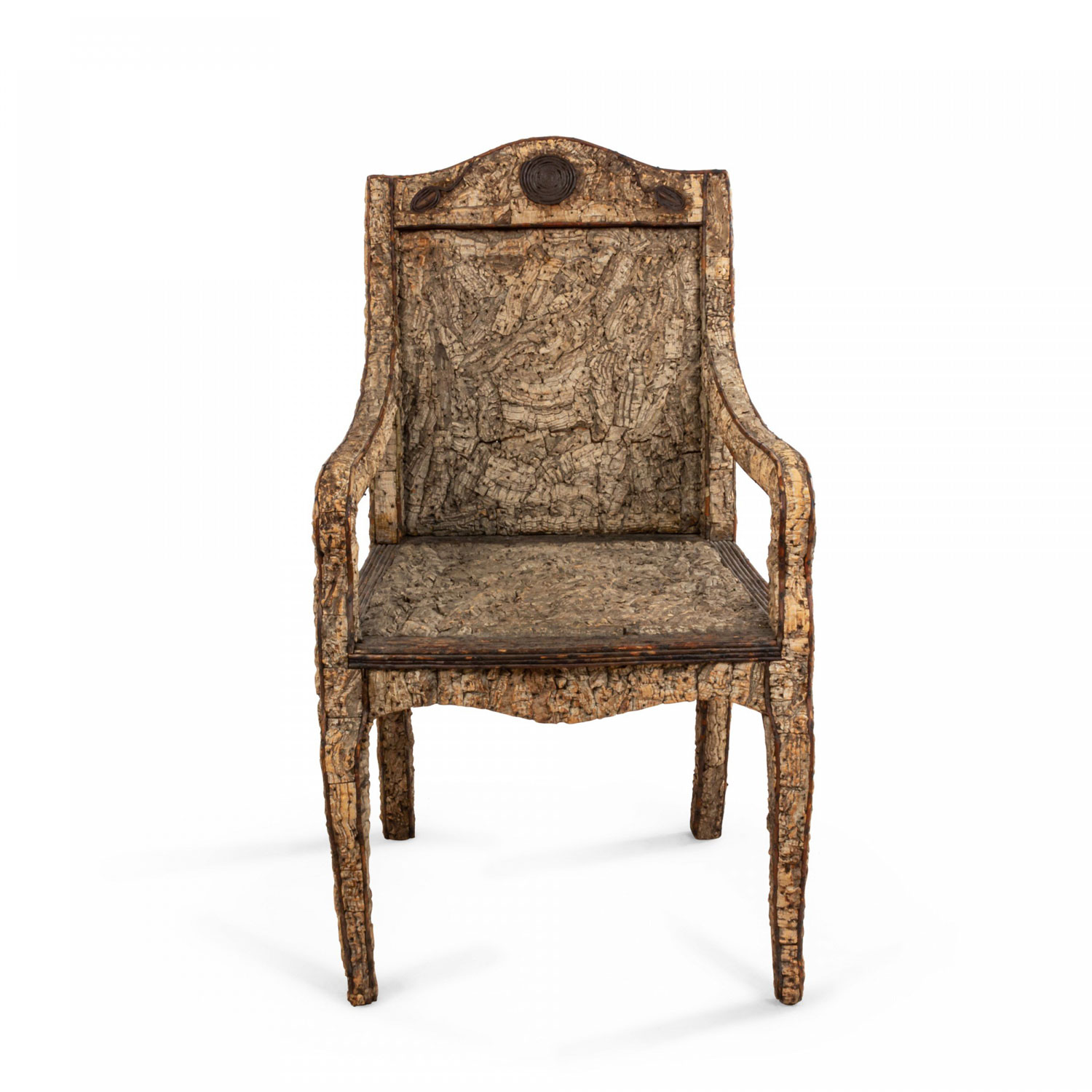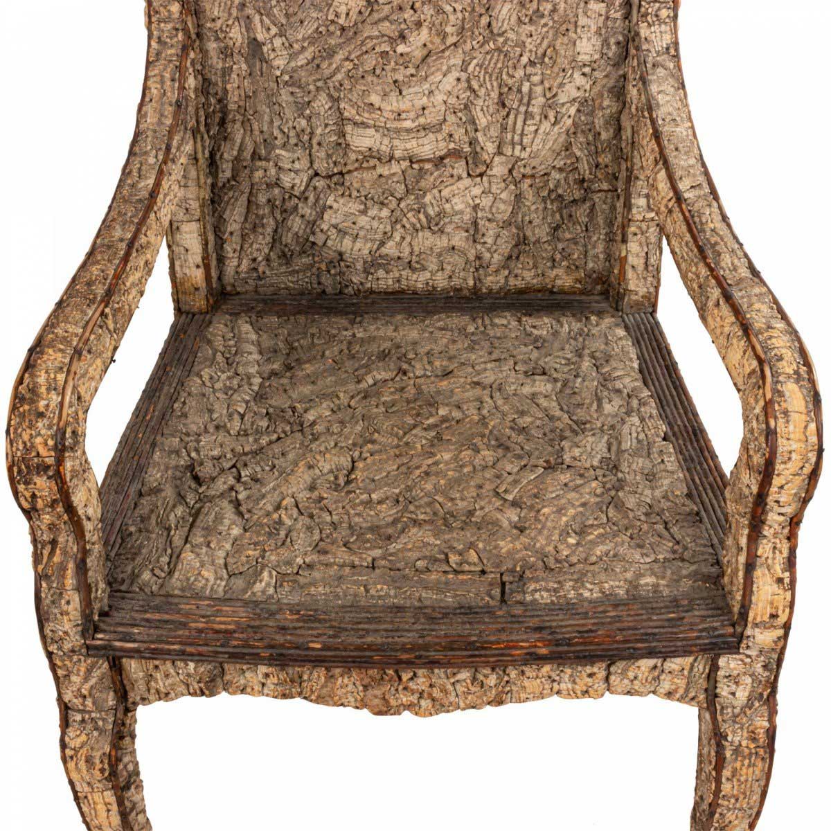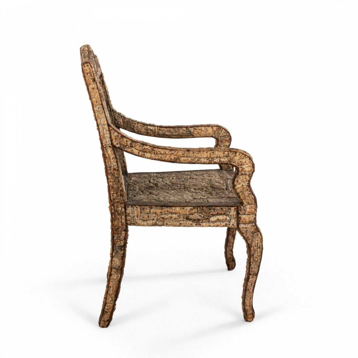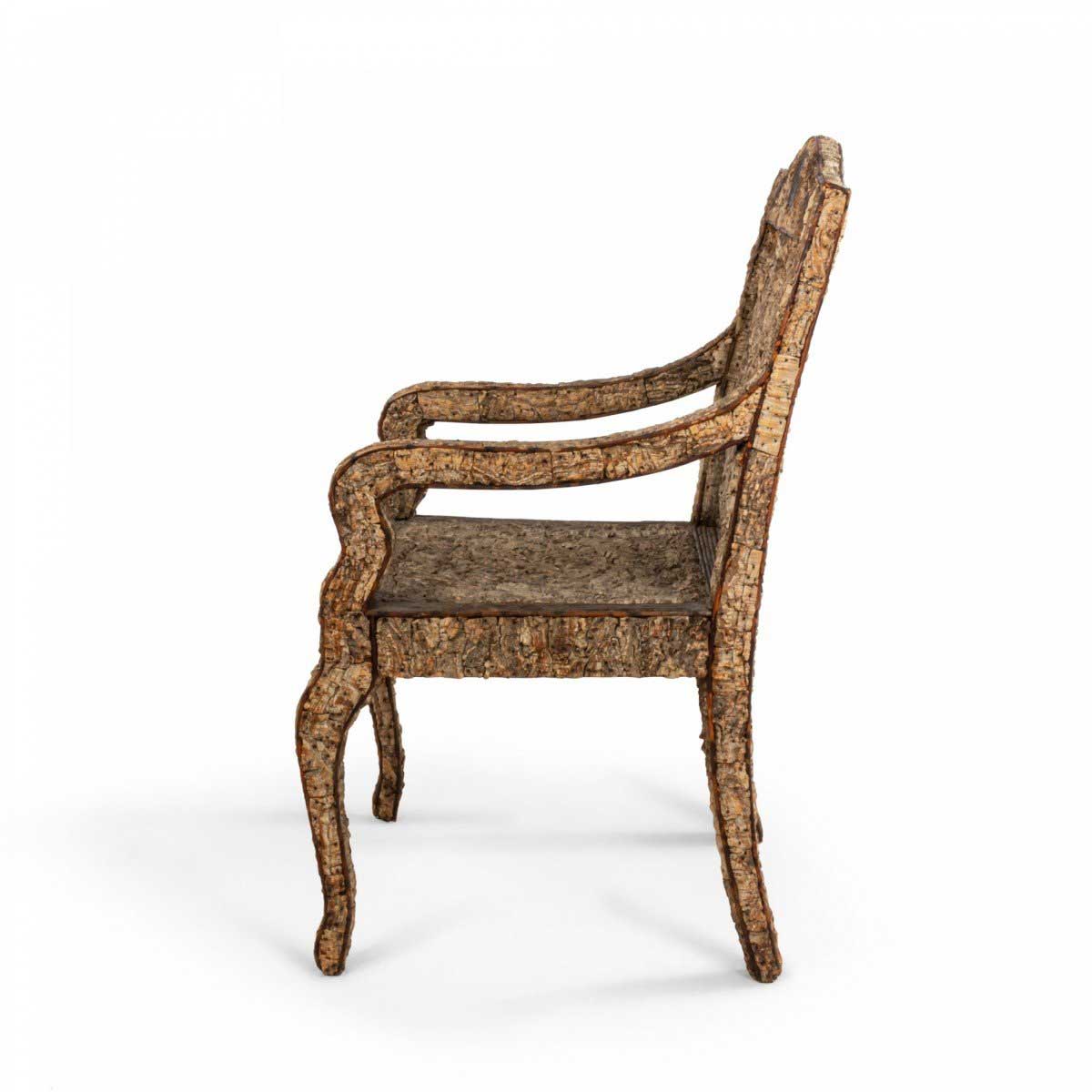Rustic Continental Neoclassic style cork & twig arm chair. (Scandinavian, late 19th/20th Cent)