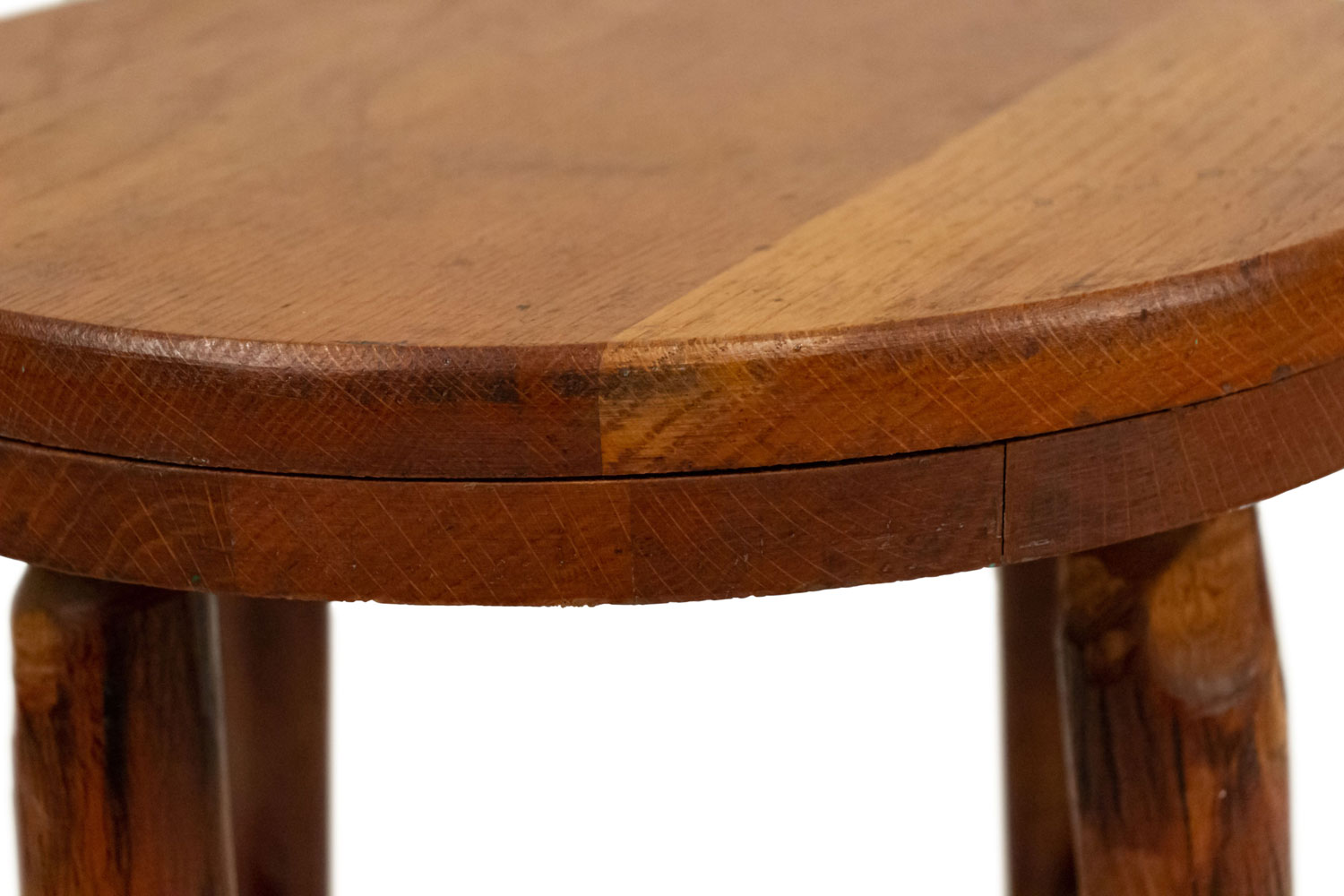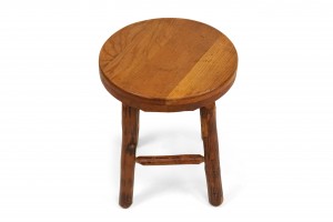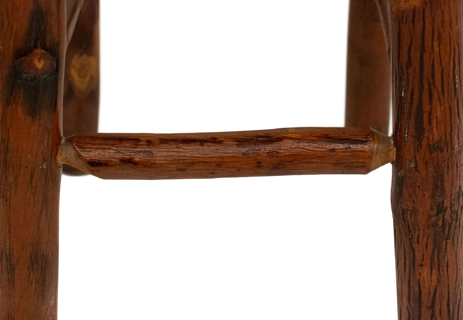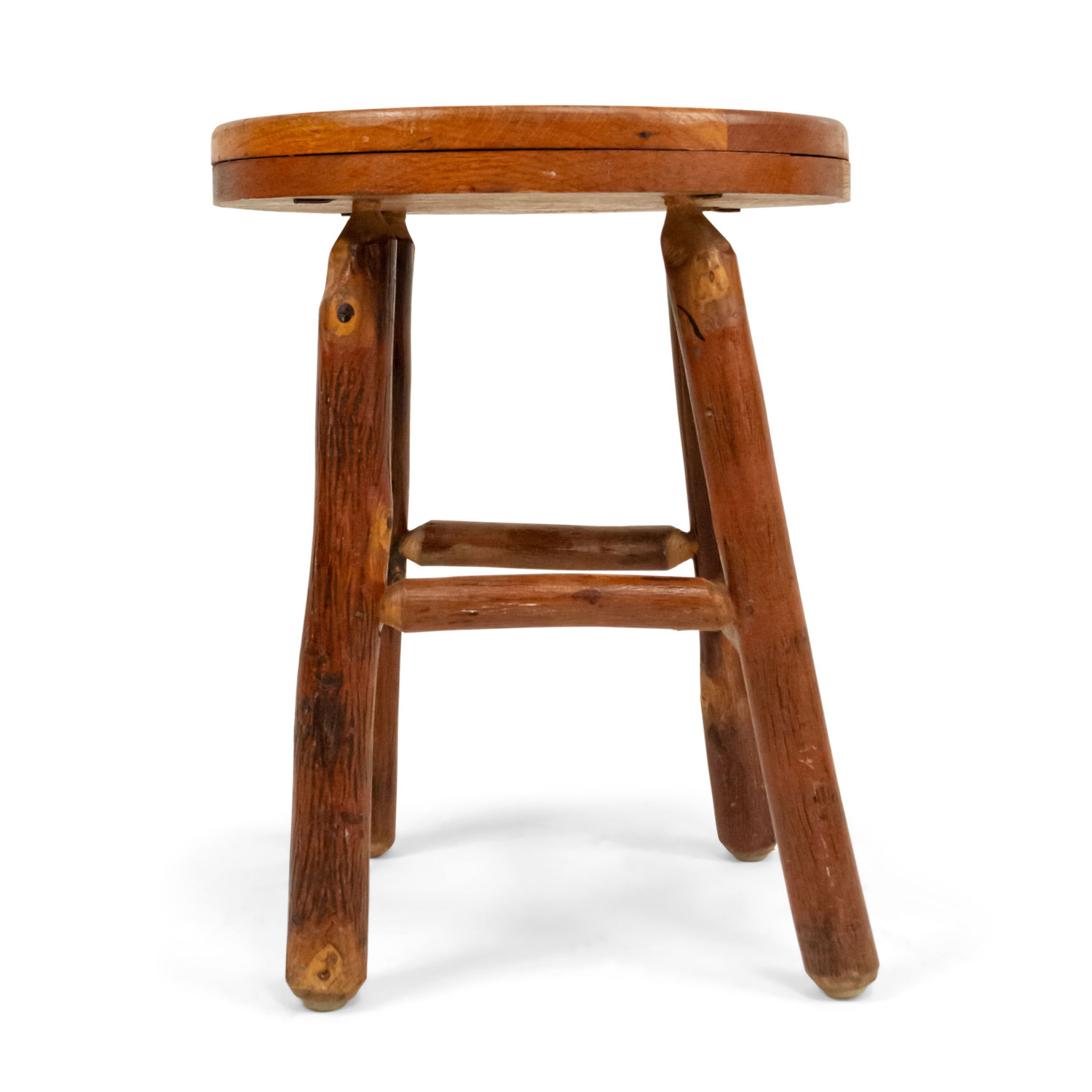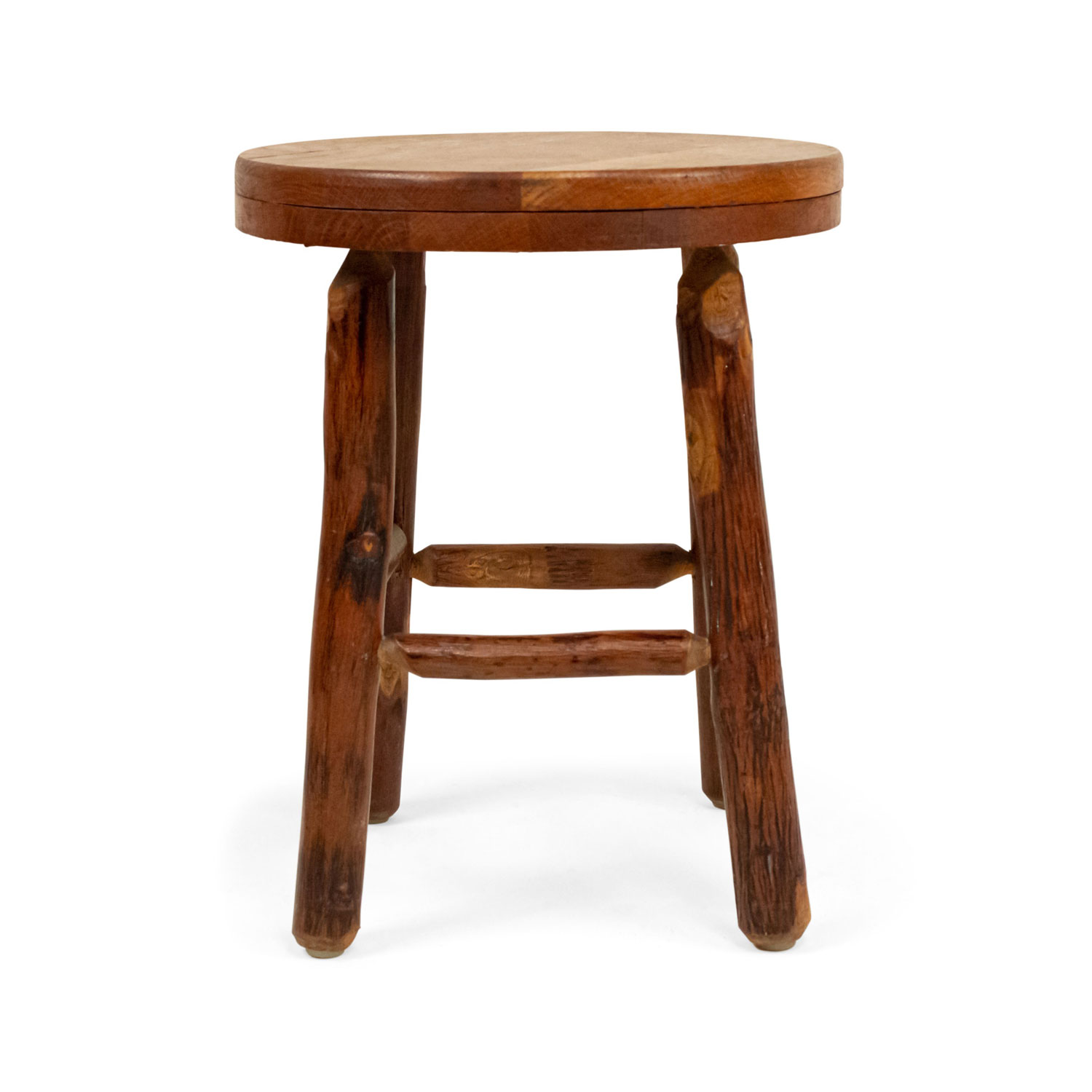 4 American Rustic Old Hickory (1930s) stools with round oak tops and a box form stretcher on leg (PRICED EACH)