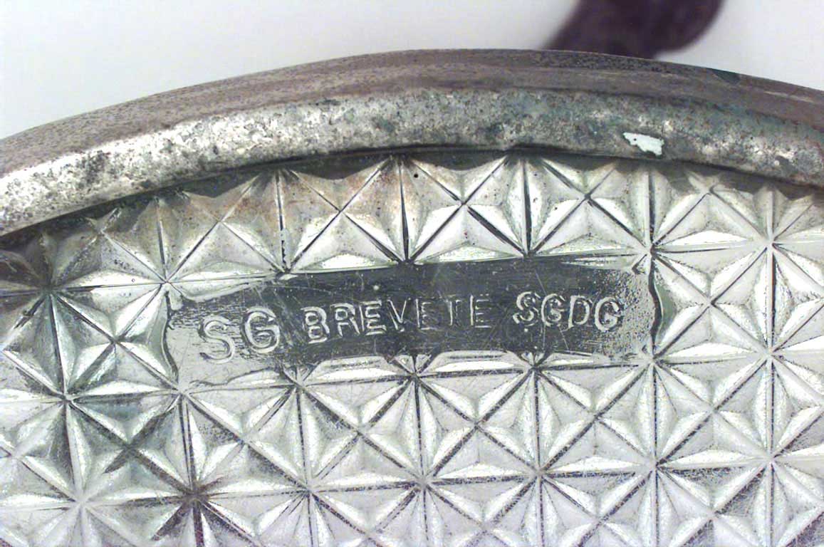 Outdoor French (Late 19th Century) painted iron pedestal base cafe table with round inset crystal tops.