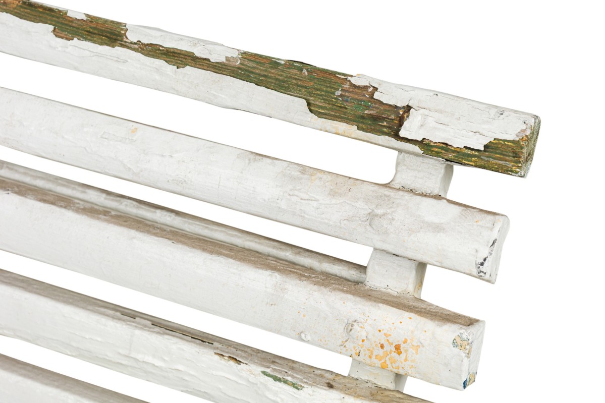 * Condition: Fair, structurally sound, some loss of paint penetrating the surface, rusty around the legs and craquelure over all