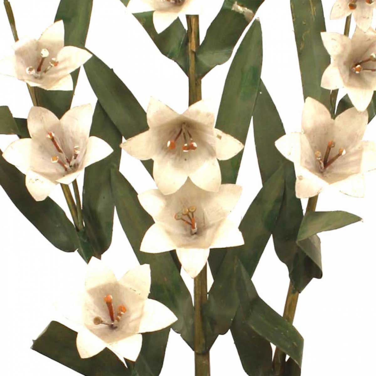 PAIR of American Art Moderne (1940/ 50's) painted tole basket with handles holding a spray of white lilies.