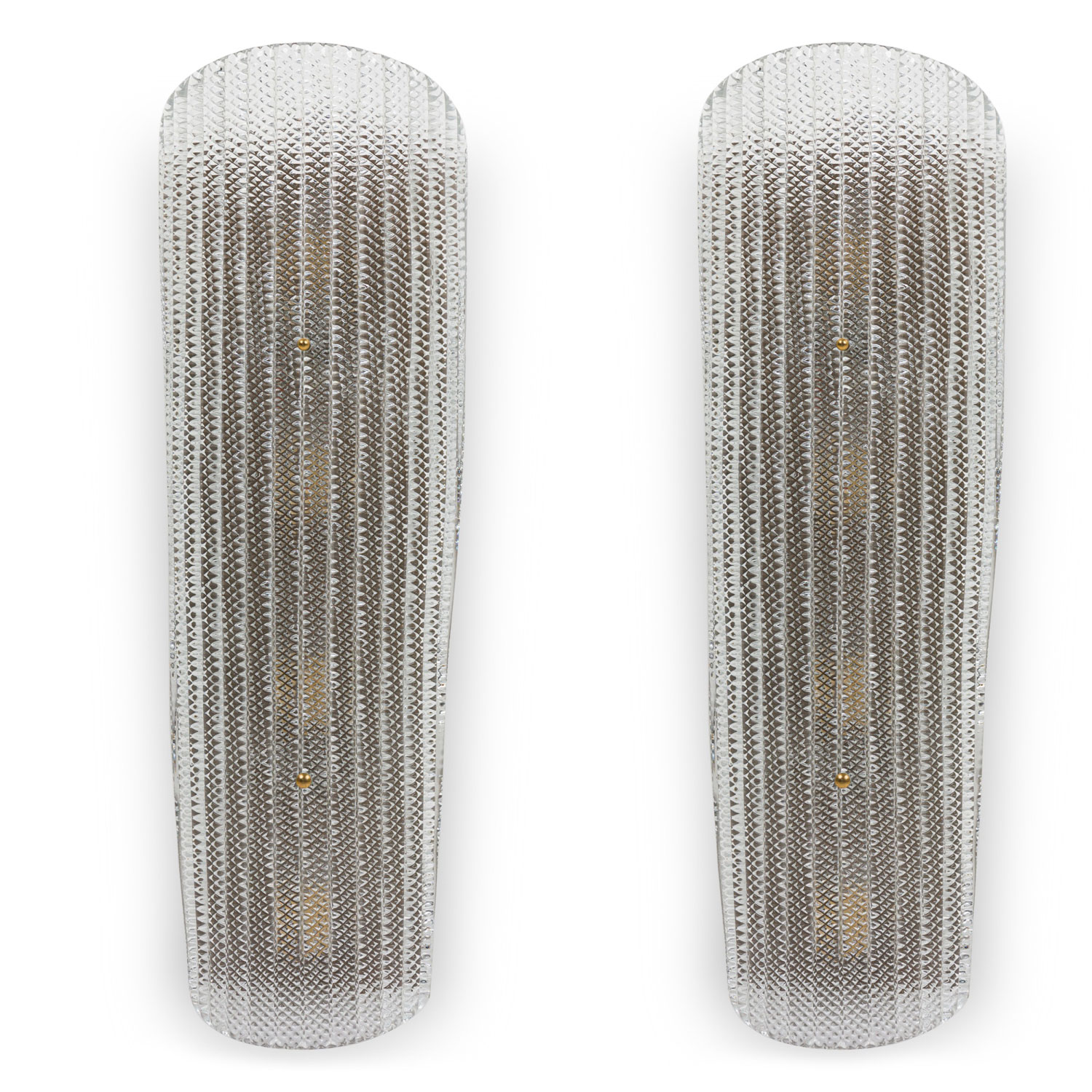 Mid-Century Italian Large Textured Glass Wall Sconces