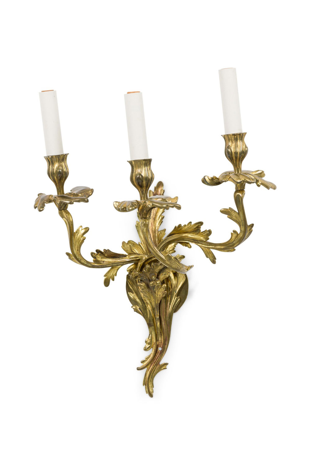 2 French Art Nouveau style brass wall sconces with three foliated arms (PRICED EACH)