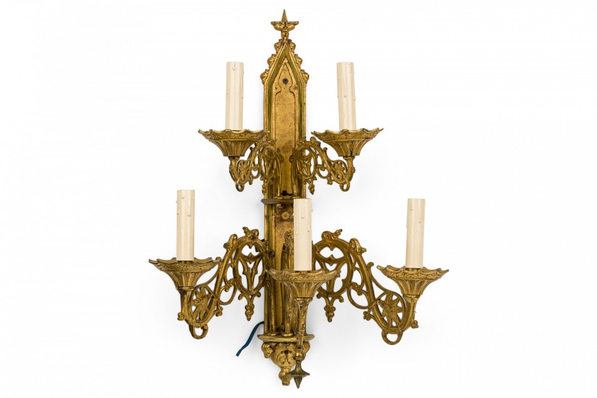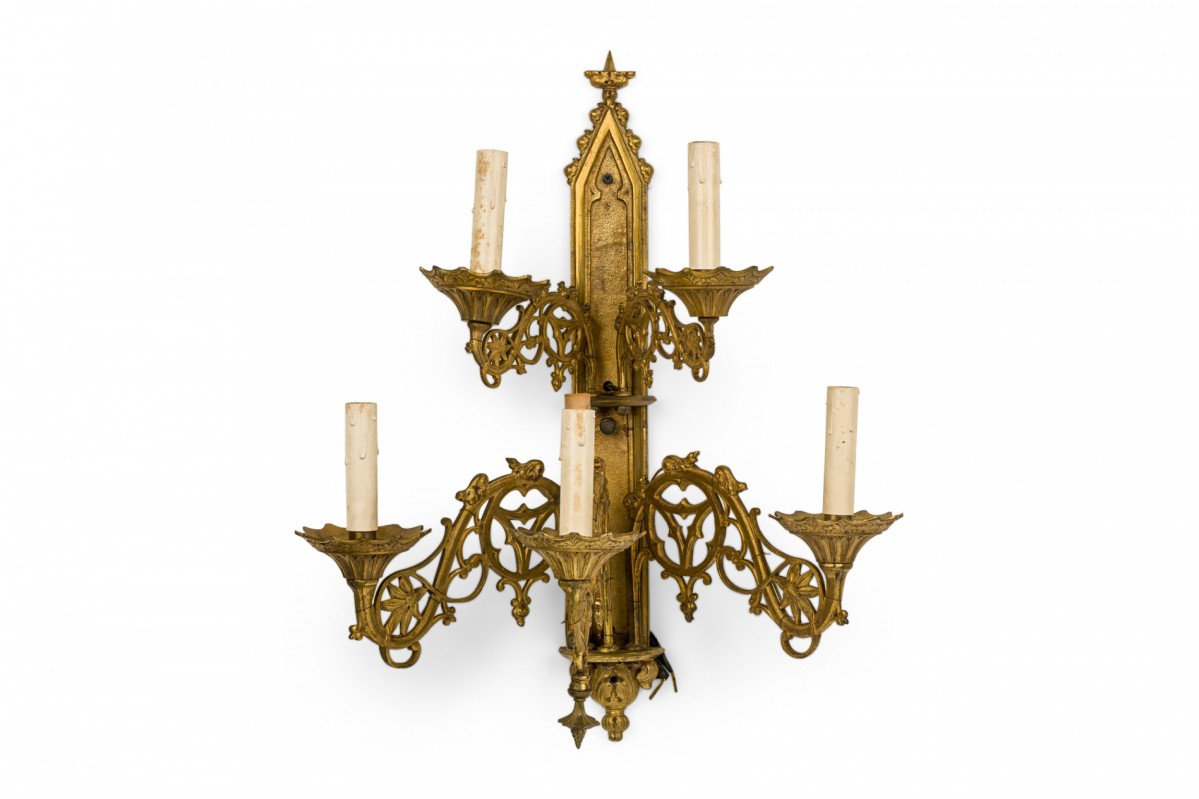2 French pre-gothic gilt bronze 5 arm sconces featuring floral and foliage motifs (PRICED EACH)