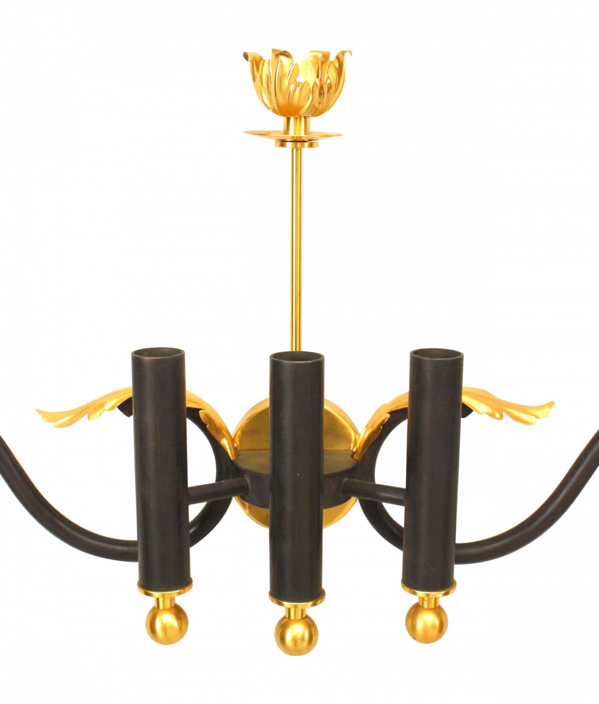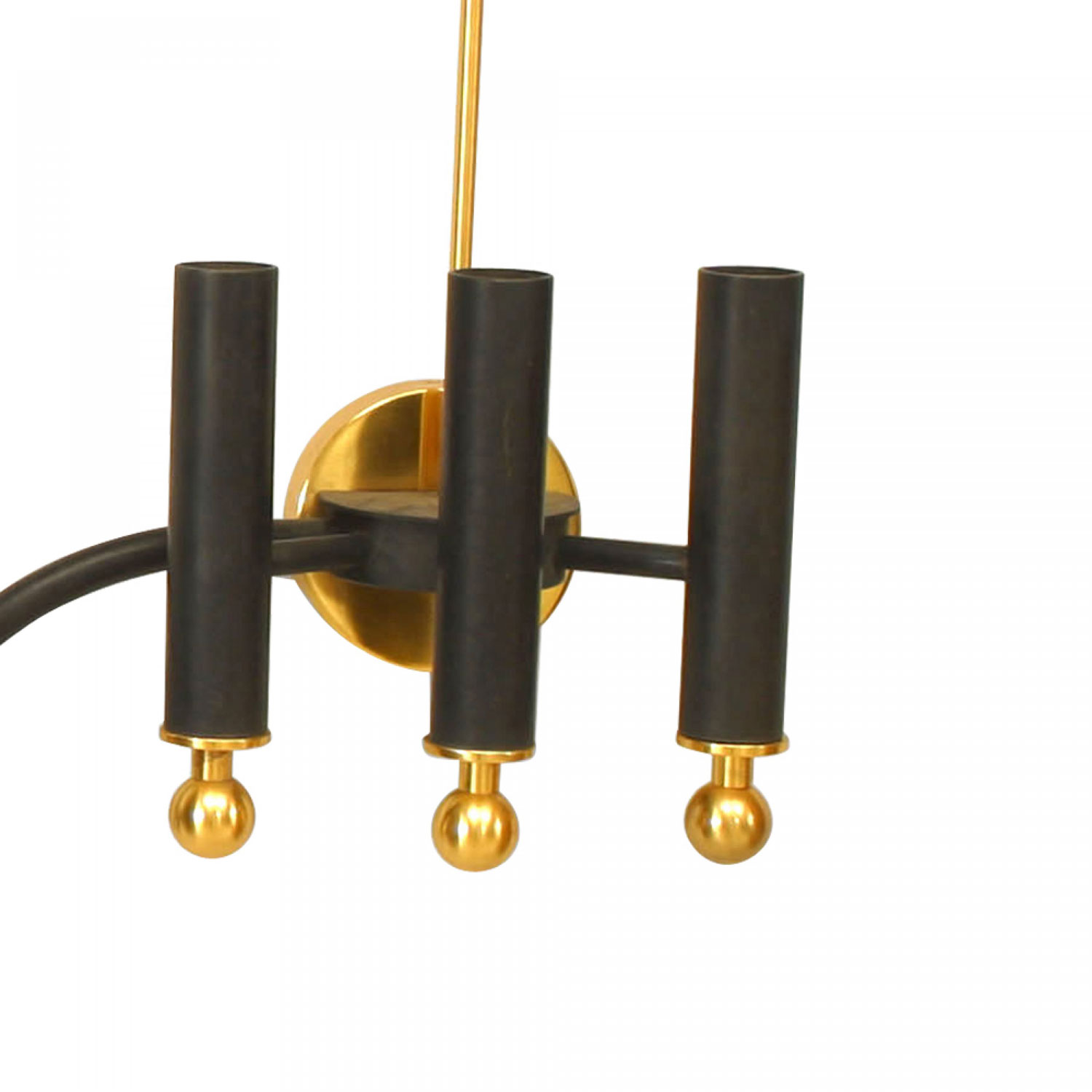 2 French Mid-Century (1950's) iron & gilt brass nine light sconces consisting of three groups of three lights finished with brass ball base & single candlelight top and a foliate center (PRICED EACH)