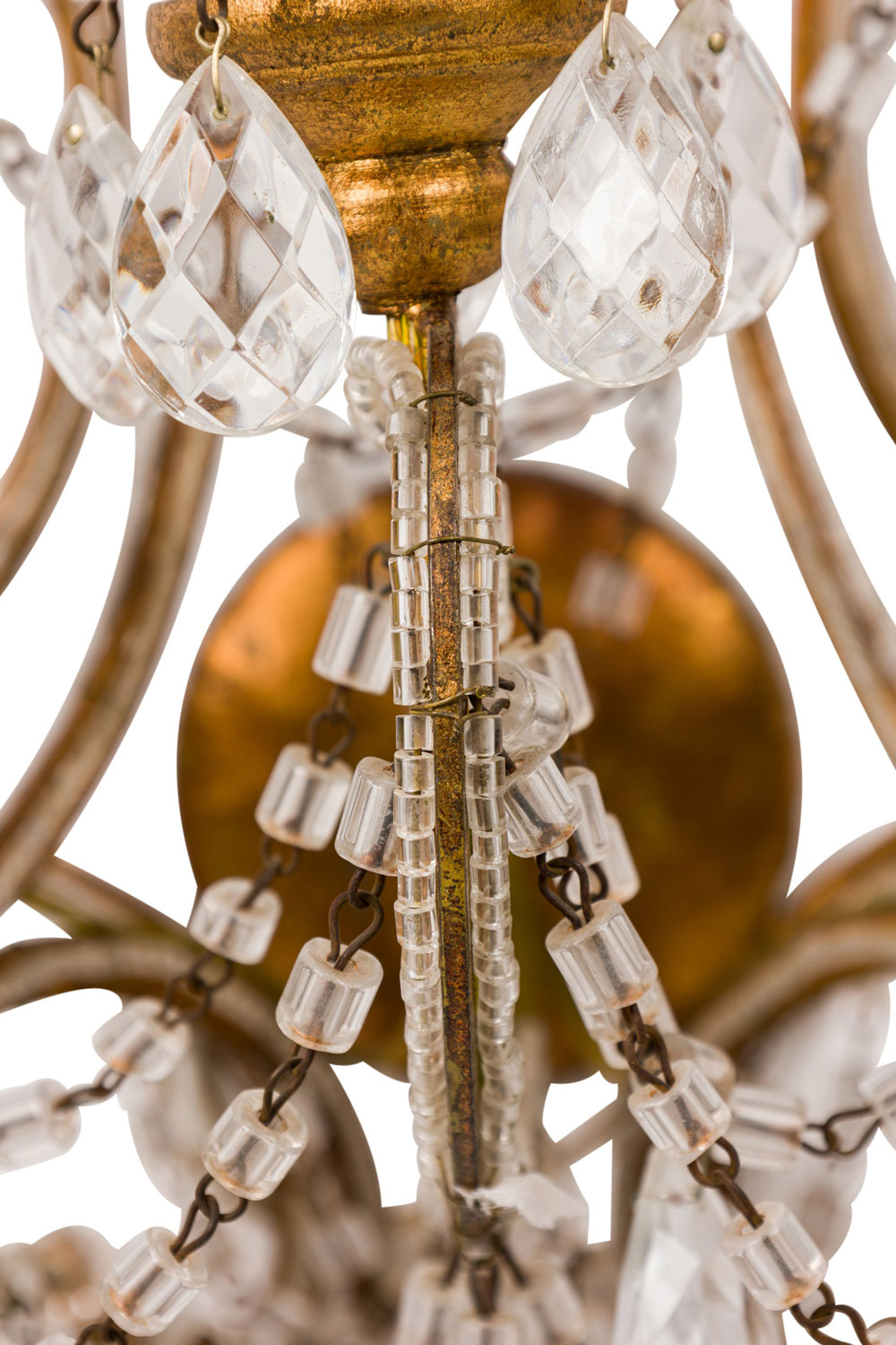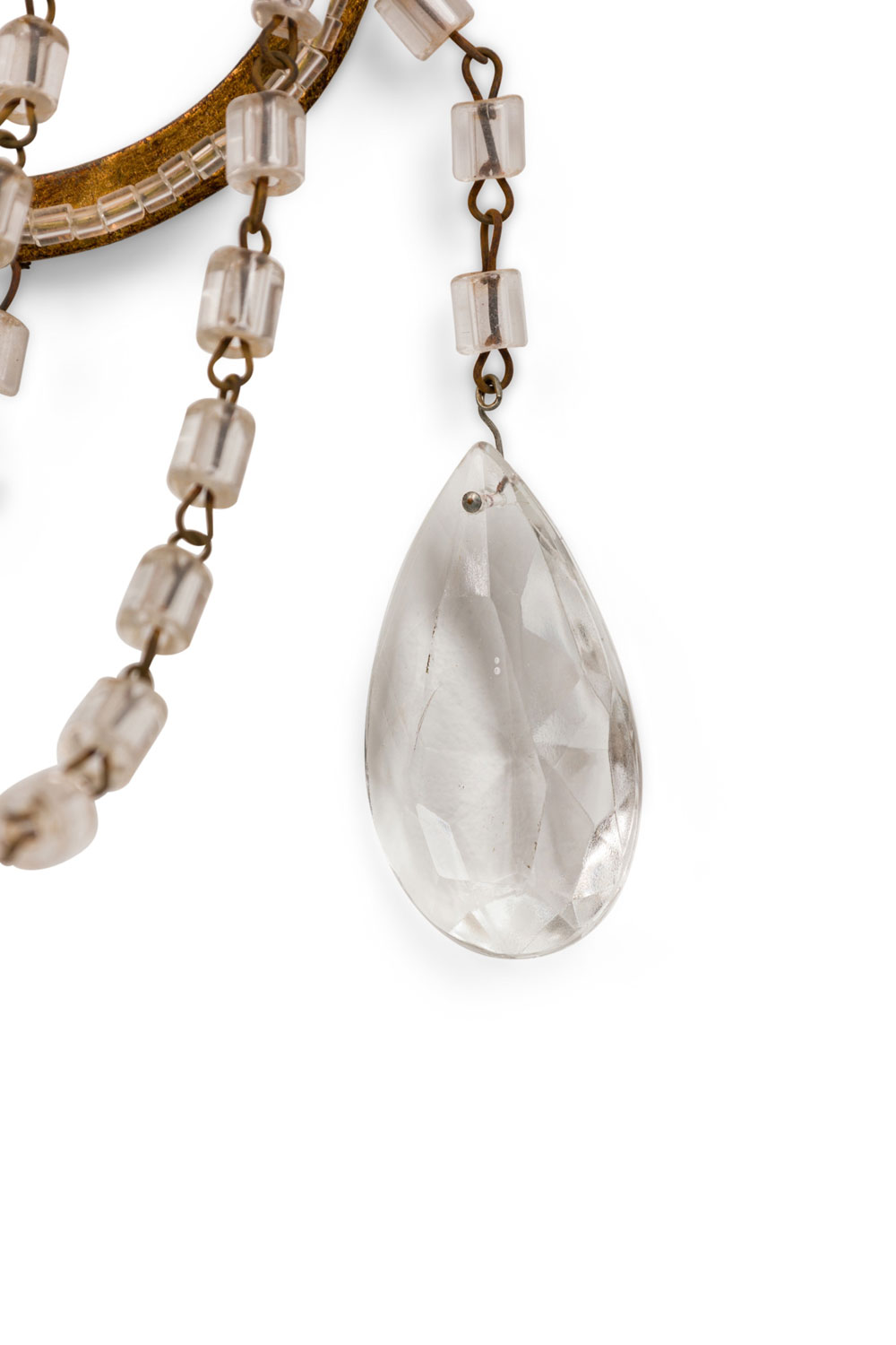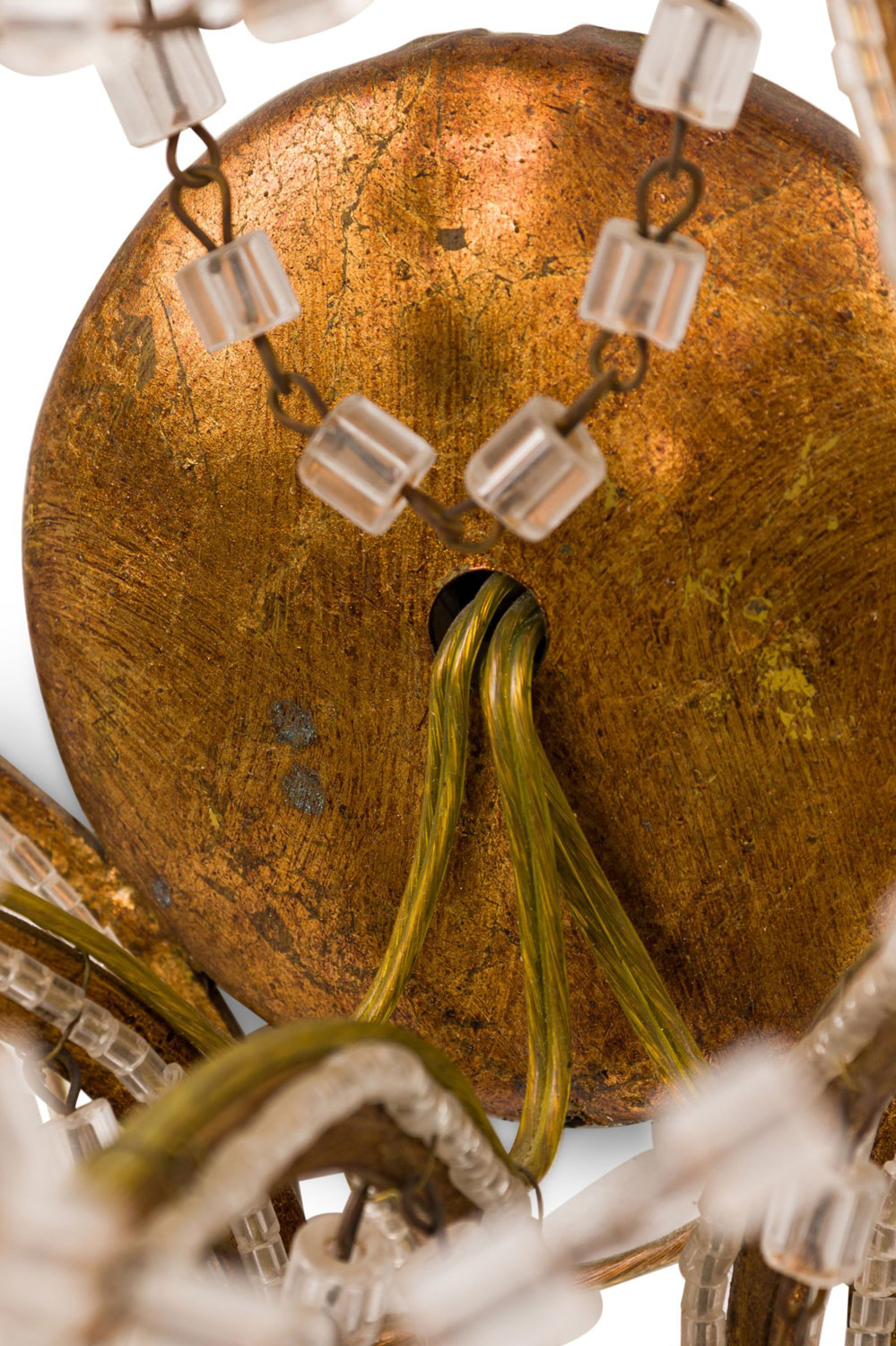 2 Italian Venetian style wall sconces with three arms, a gilt metal scroll design, and beaded crystal frame with crystal pendants and swags (PRICED EACH)