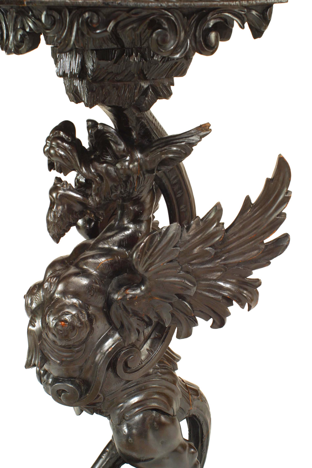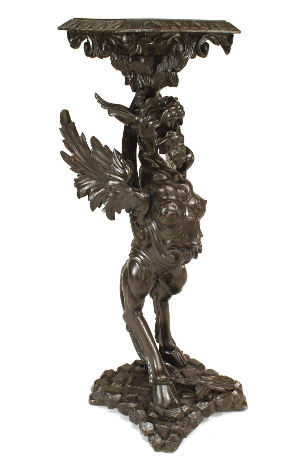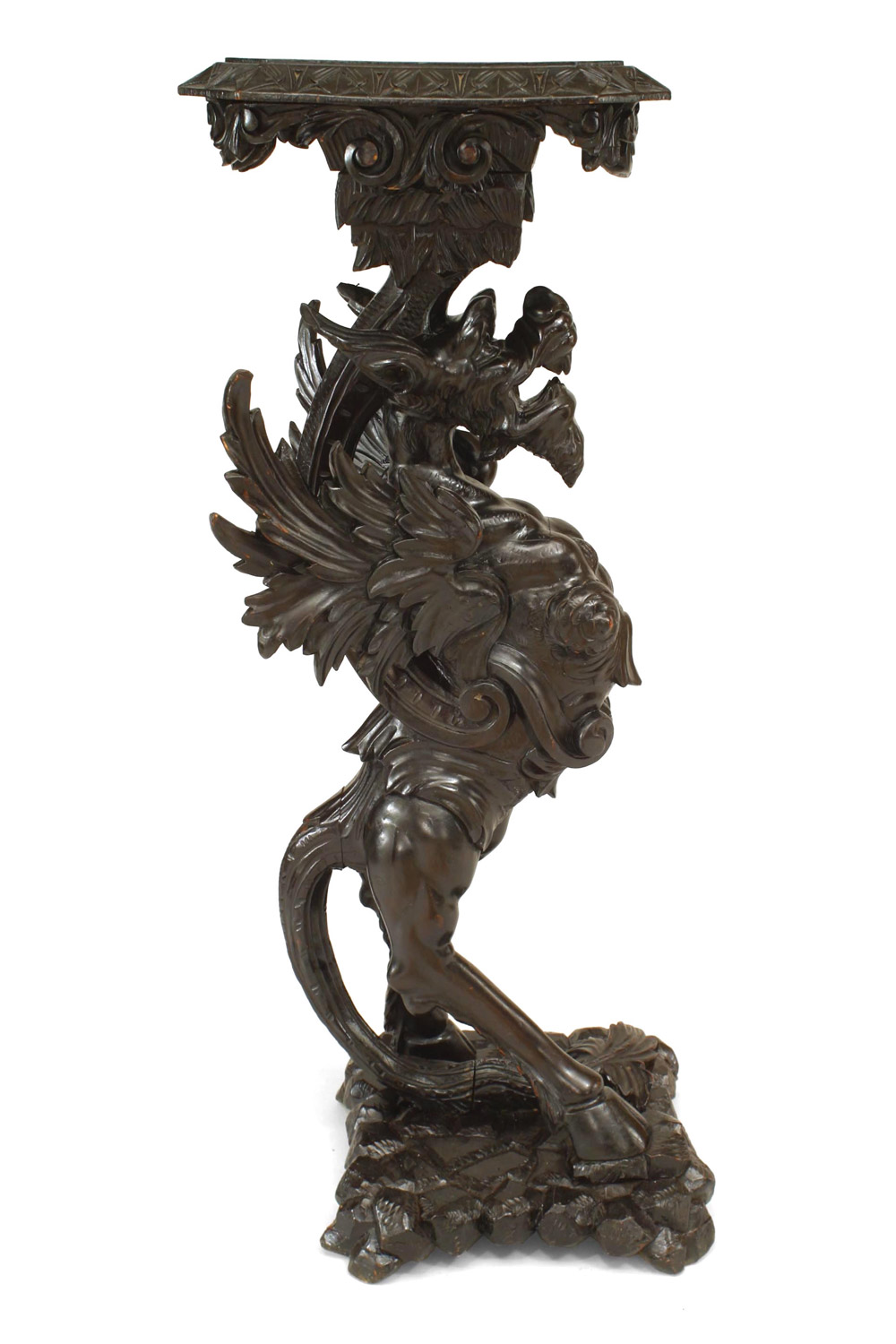 2 Italian (19th Cent) walnut carved winged griffin base pedestals on square base. (Priced Each).