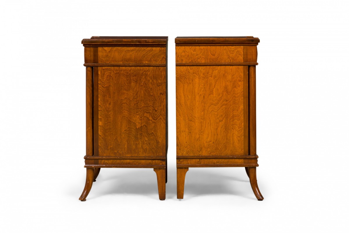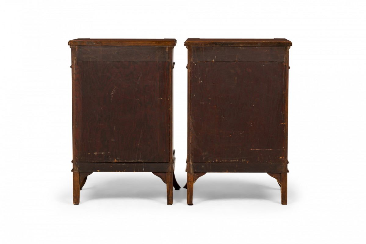 2 Louis XVI-Style Parquetry Veneer Bedside Table / Commodes