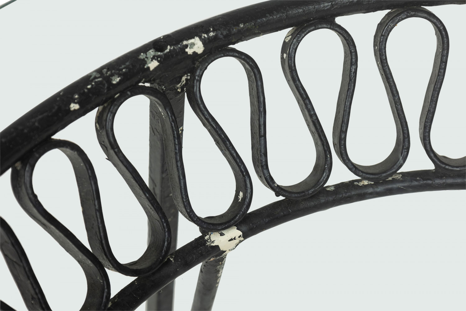 2 Mid-Century Circular Black Metal "Ribbon" Occasional Tables