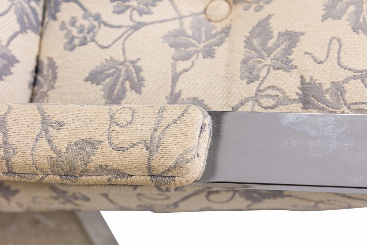 Choose one of the options below.2 American Mid-Century Chrome and Beige and Blue Floral Fabric Upholstered Flat Bar Lounge Armchairs