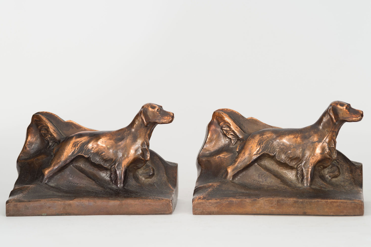 PAIR of vintage Rustic American Country copper plated dog bookends (PRICED AS PAIR)