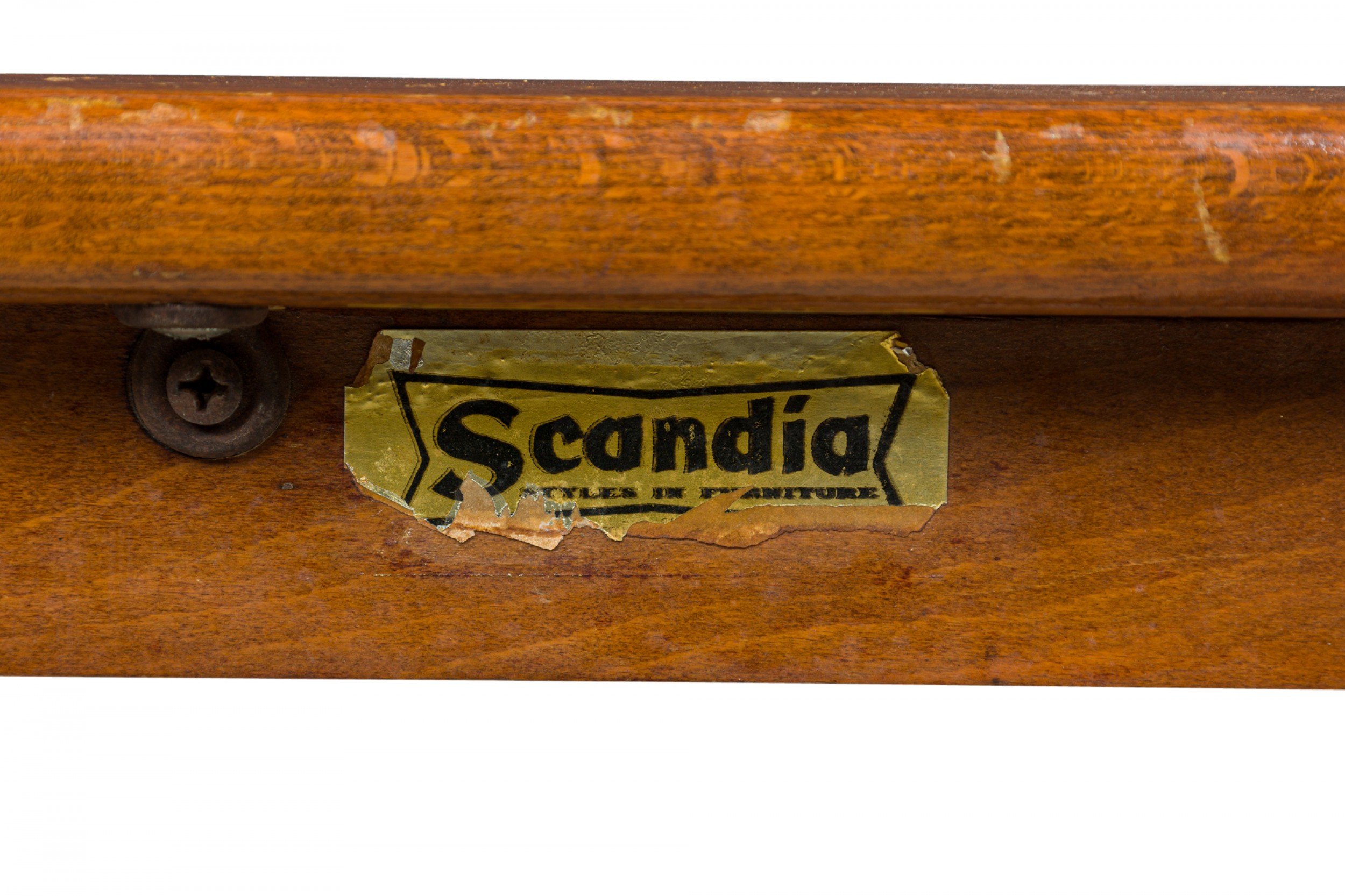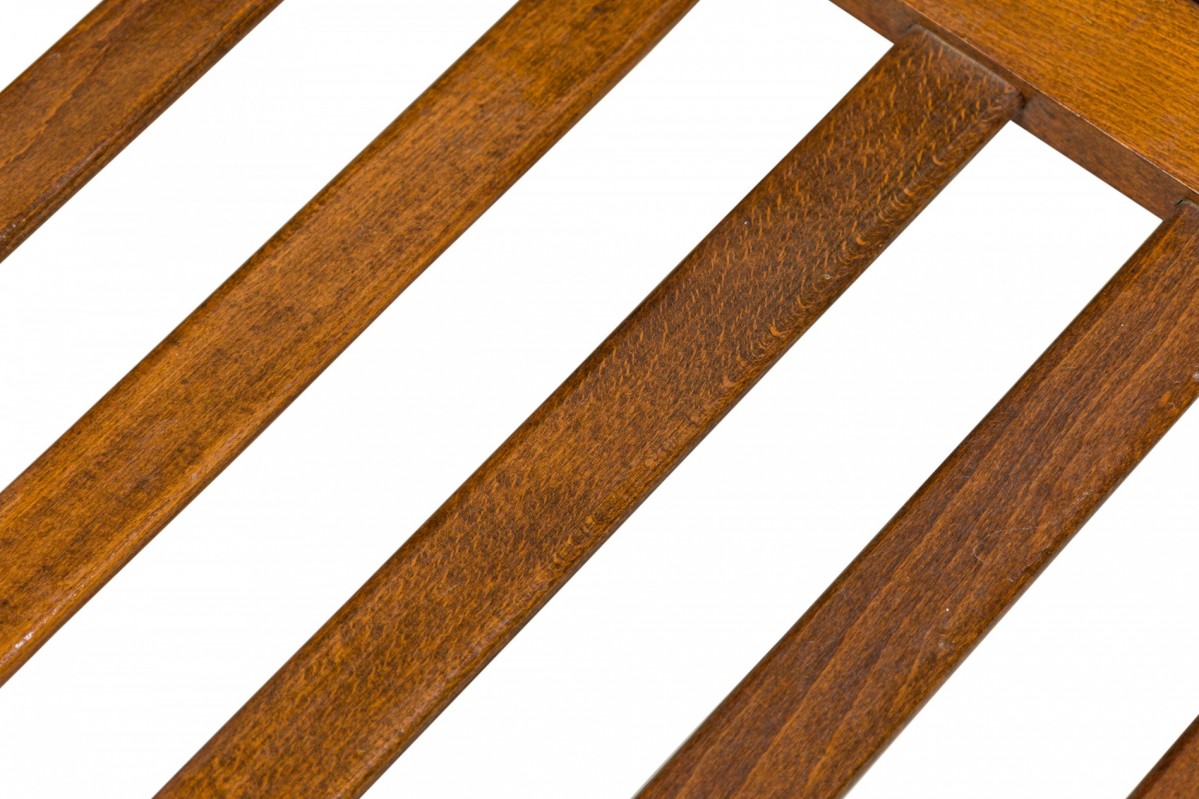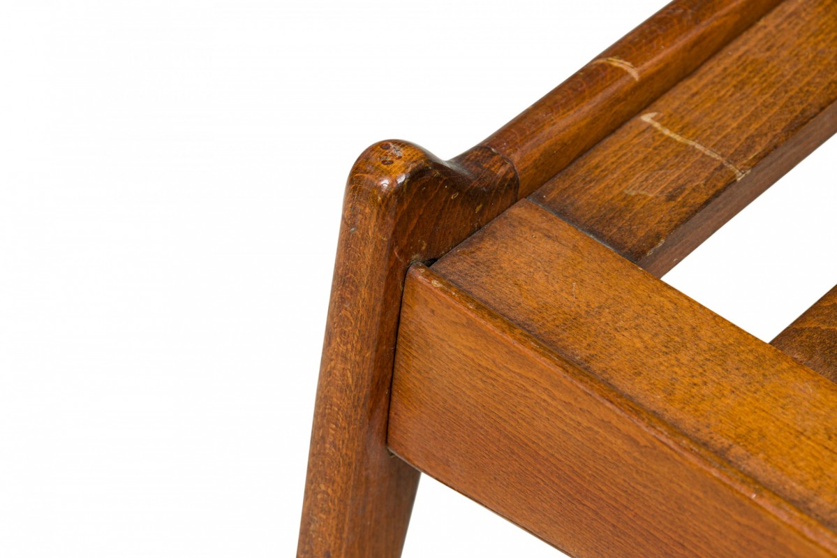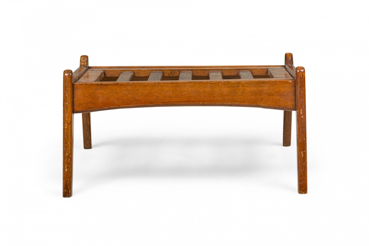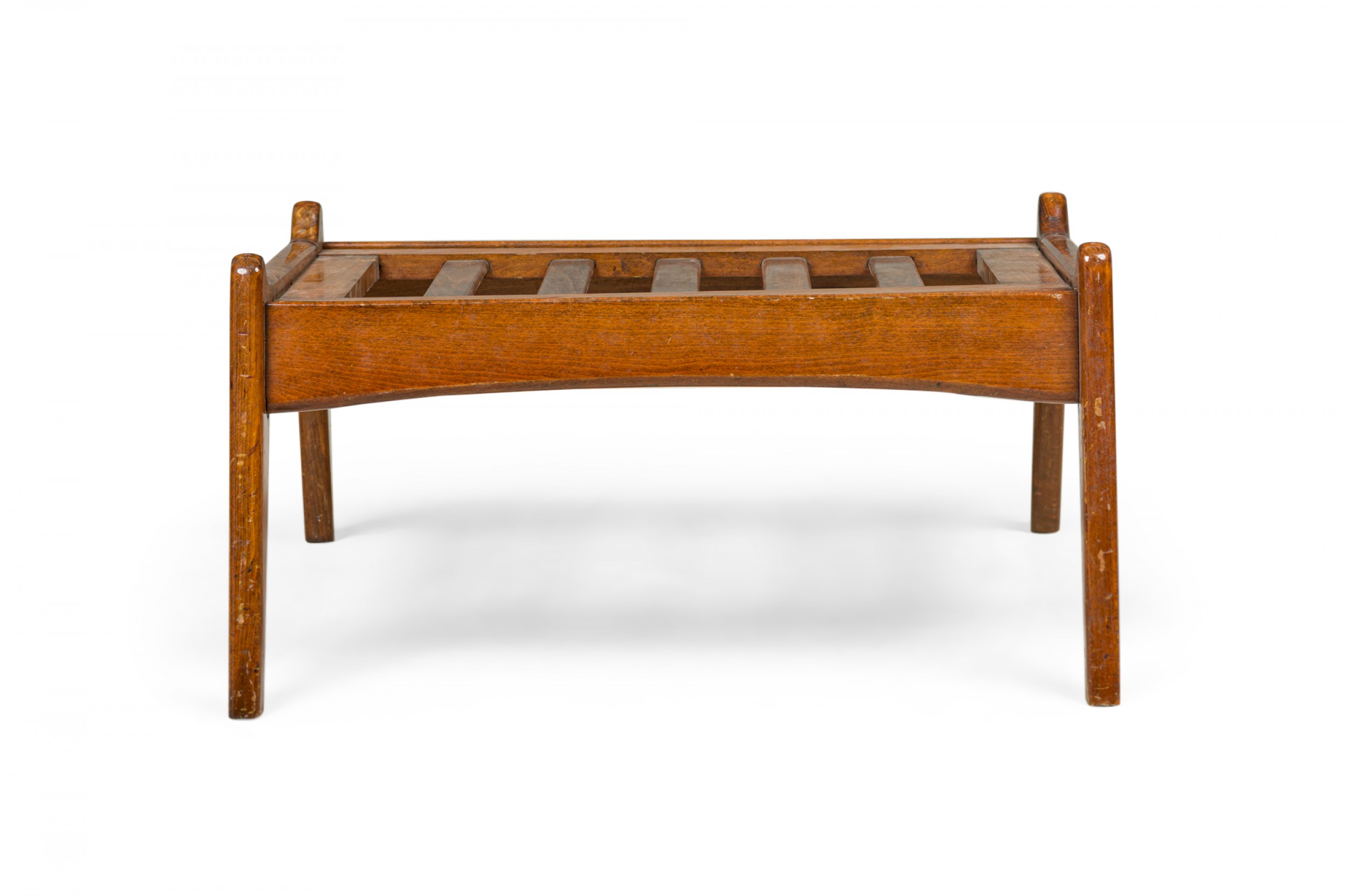 Italian Mid-Century walnut ottomans with openwork slat tops, resting on four slightly splayed tapered legs