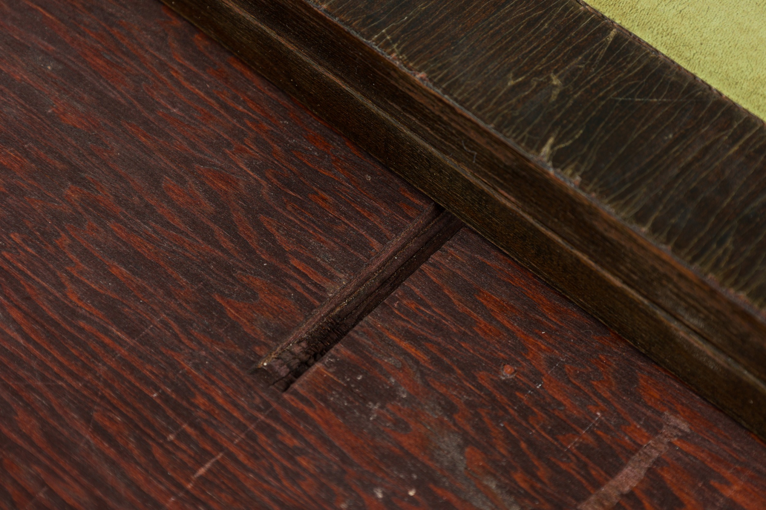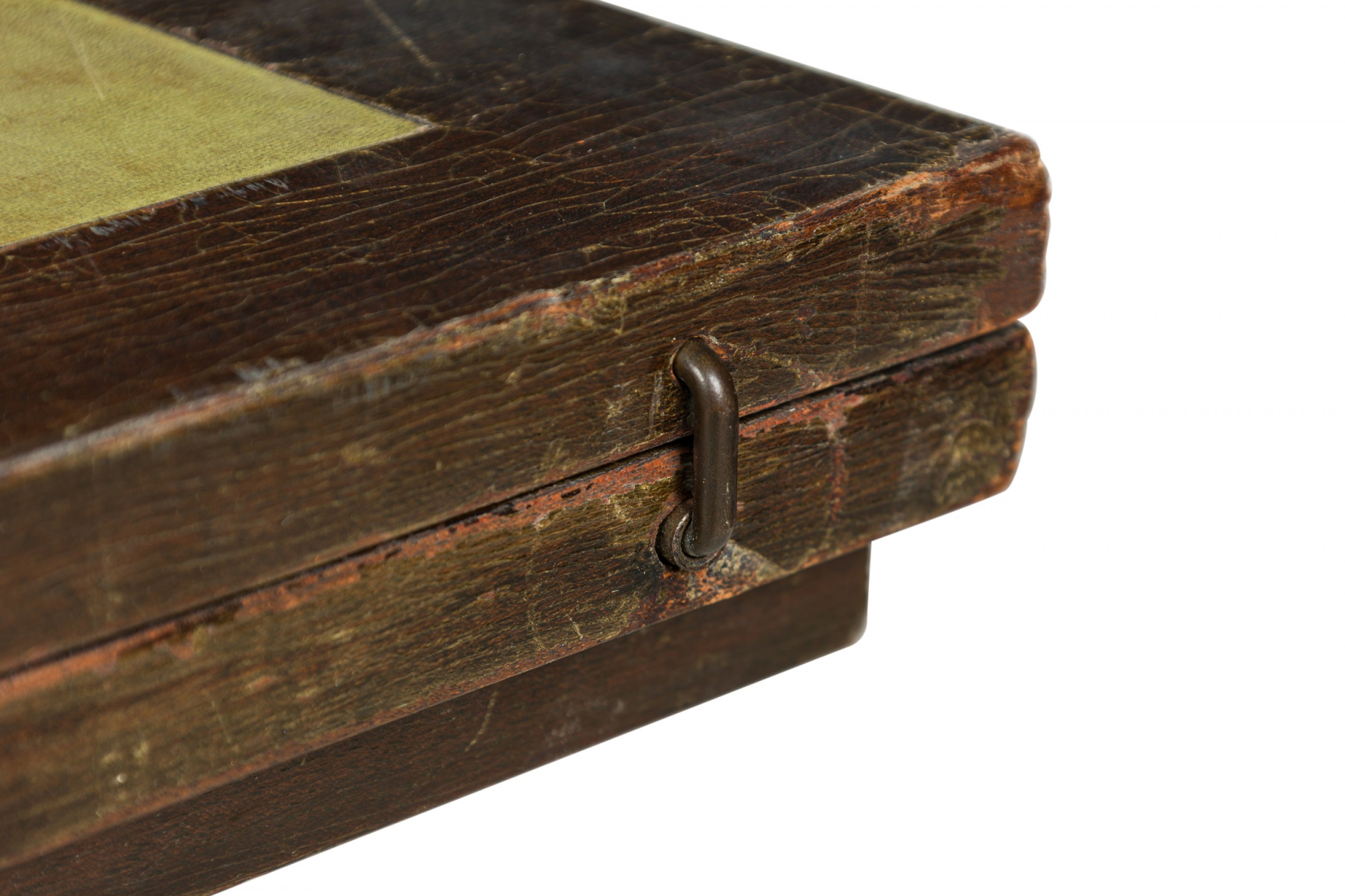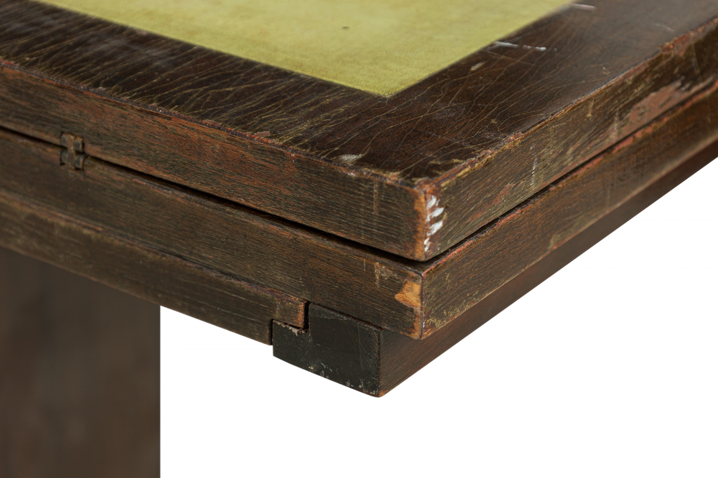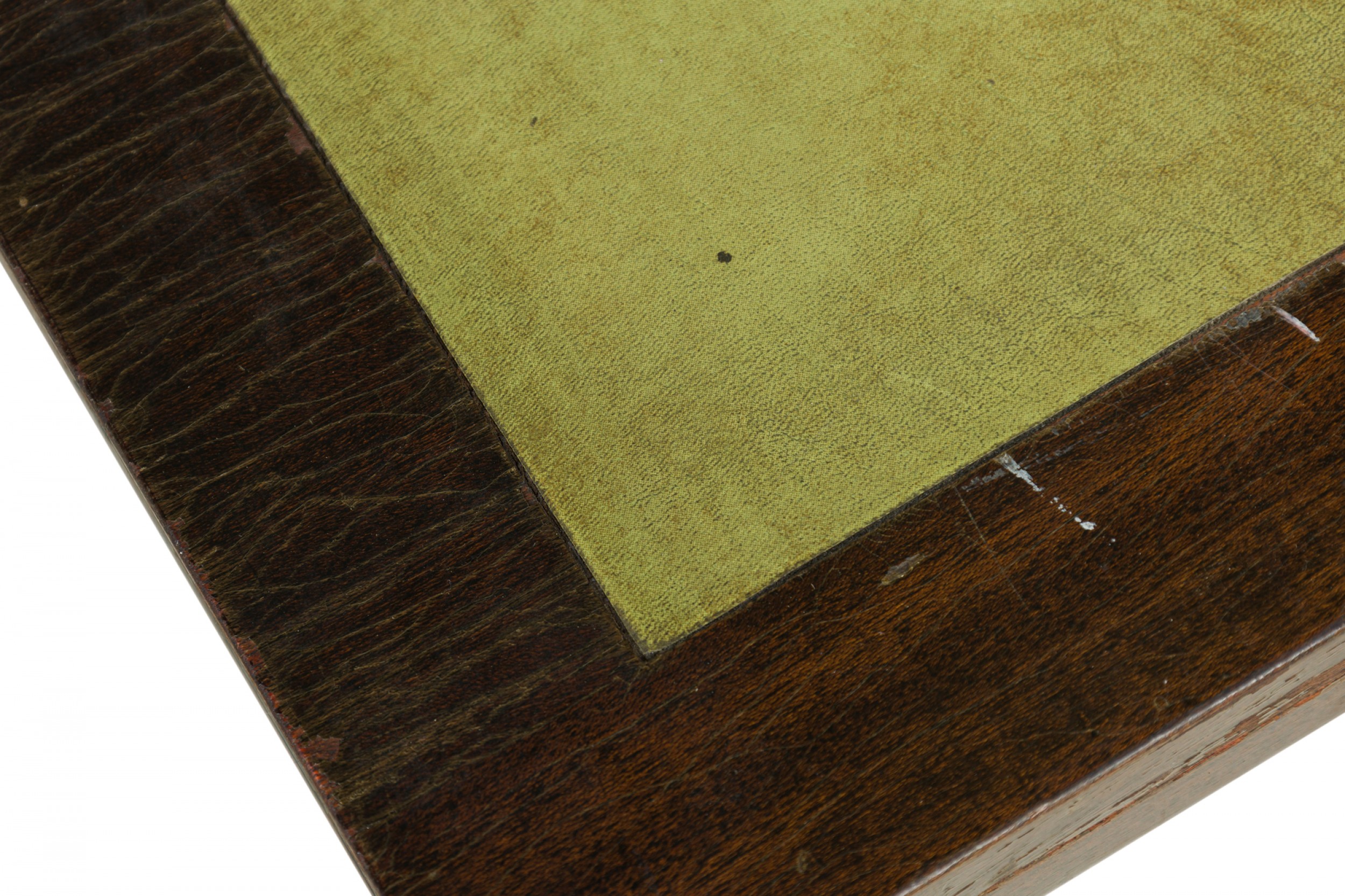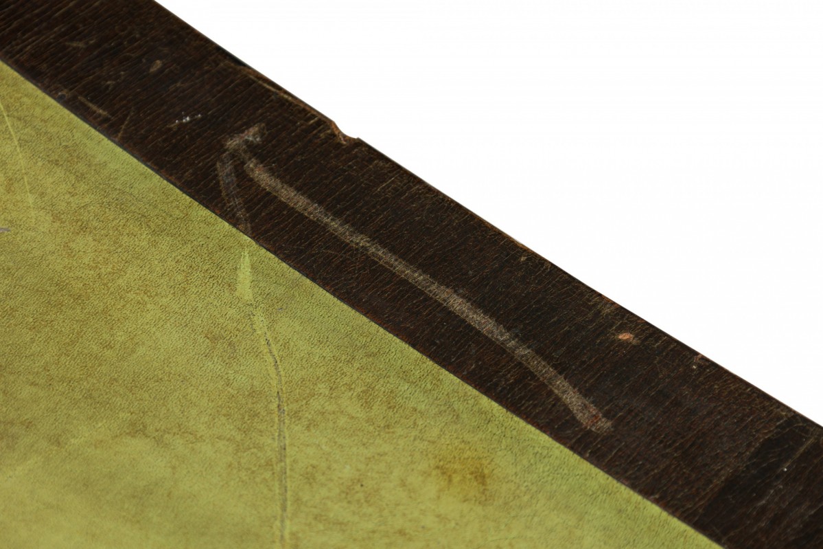 * Condition: Leather is faded and worn, wear and scuffs to wood finish.