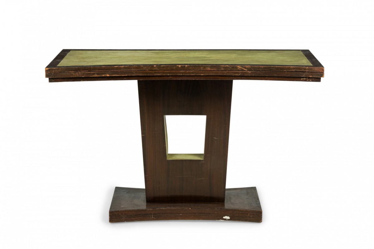 American Art Deco Mahogany and Green Leather Extendable Console Table