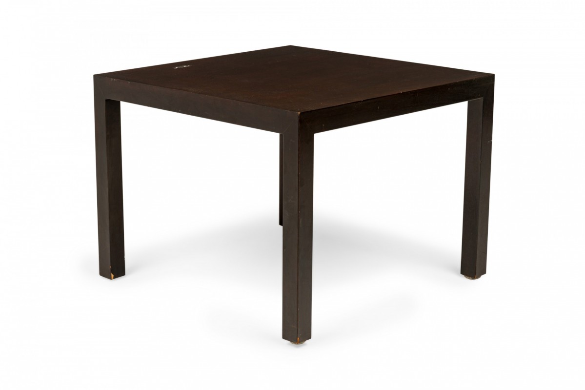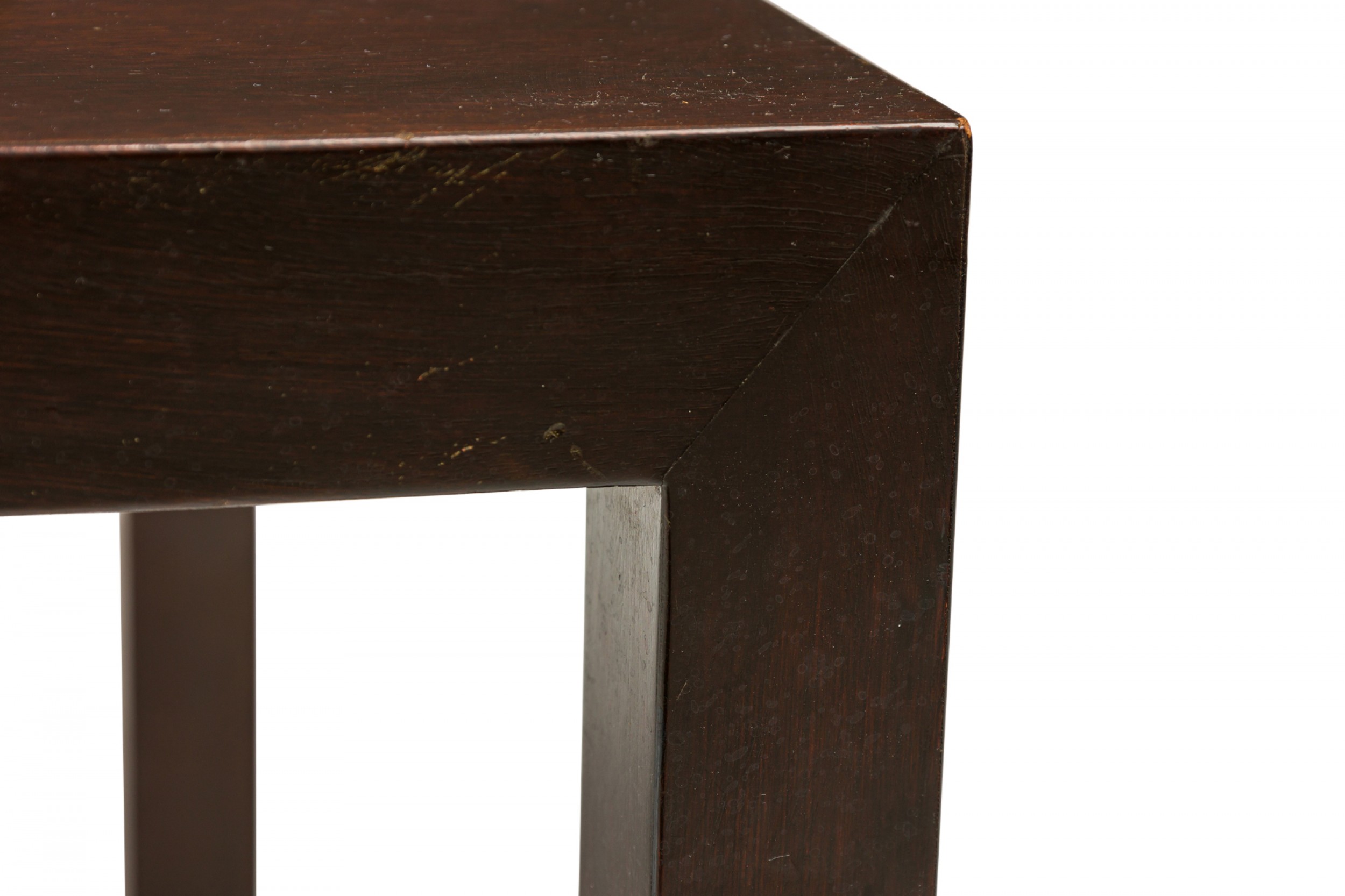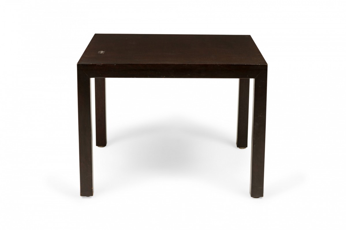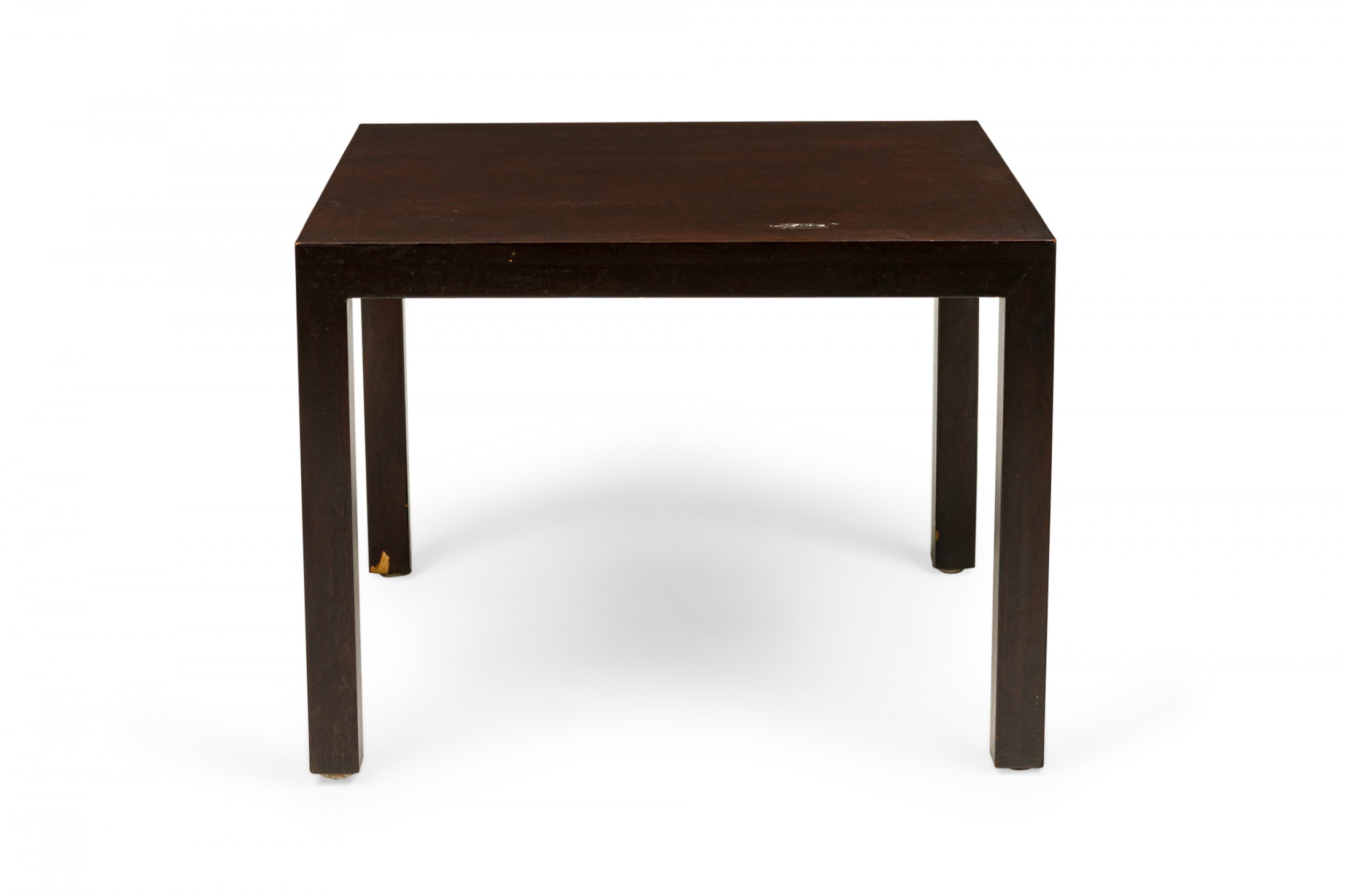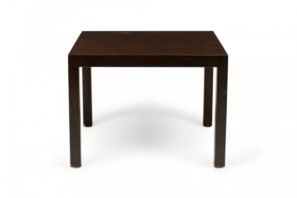 American Mid-Century wooden square end / side table with four square wooden legs with a dark brown stained finish. (PAUL MCCOBB FOR DUNBAR FURNITURE COMPANY)