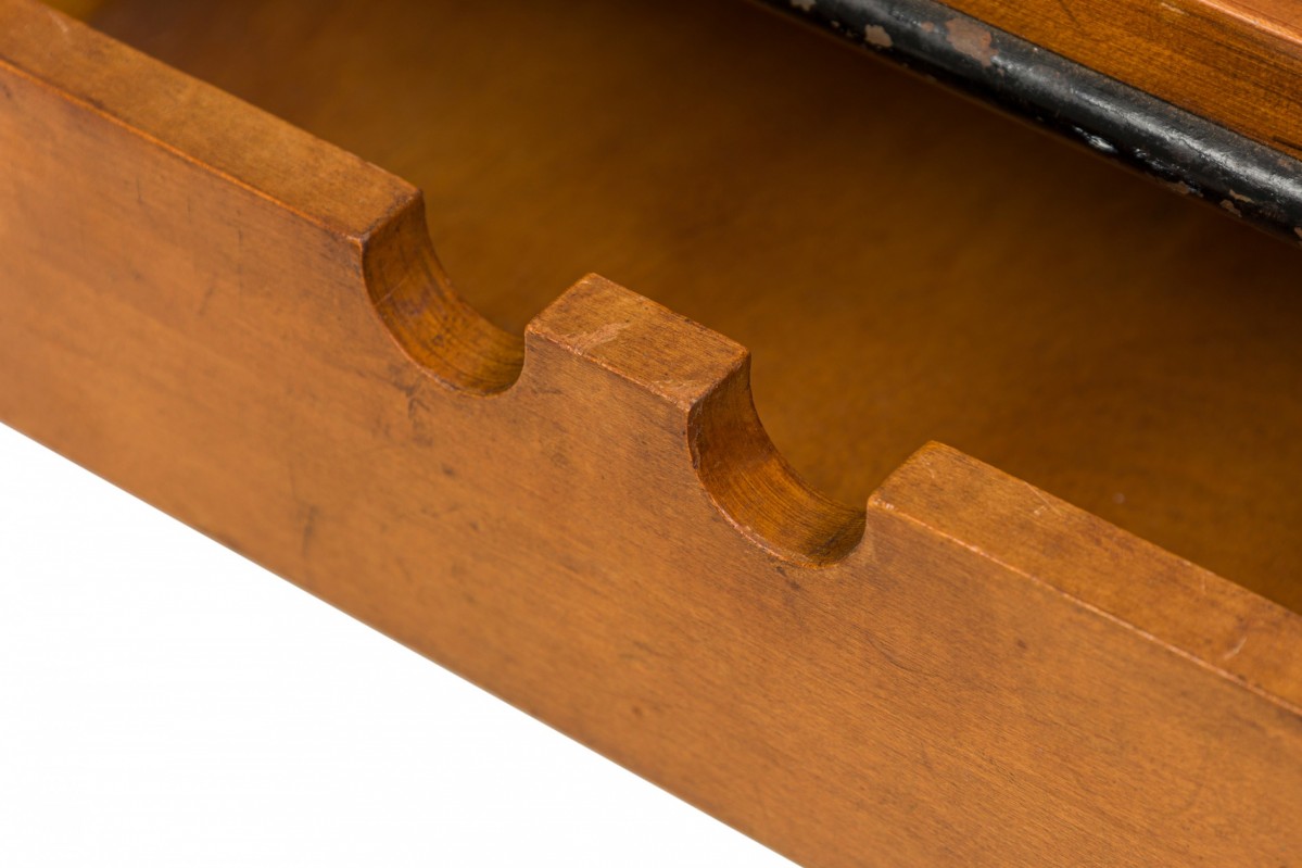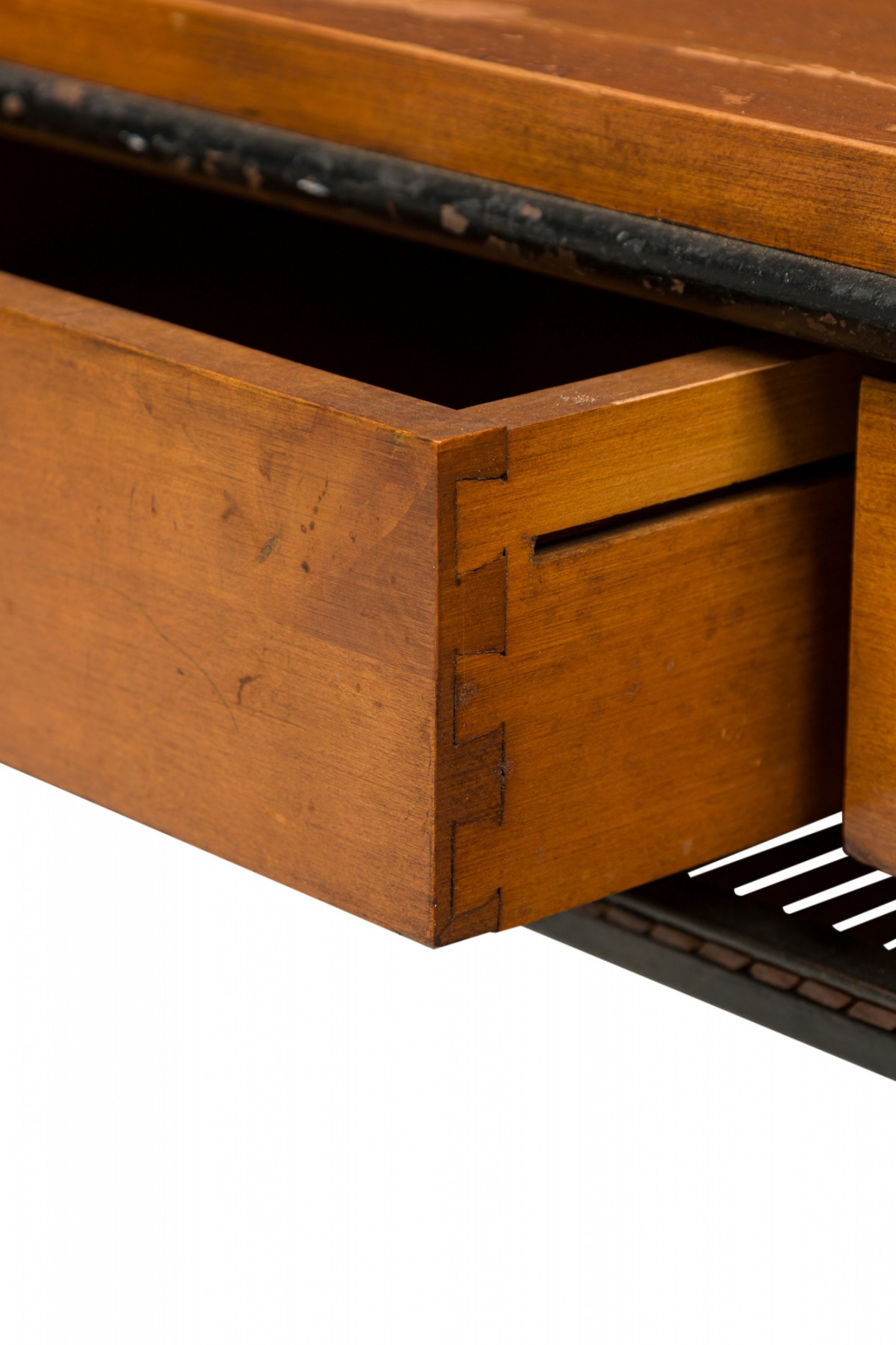 Choose one of the options below.American Mid-Century 'Planner' Wood and Iron Two Drawer Coffee Table
