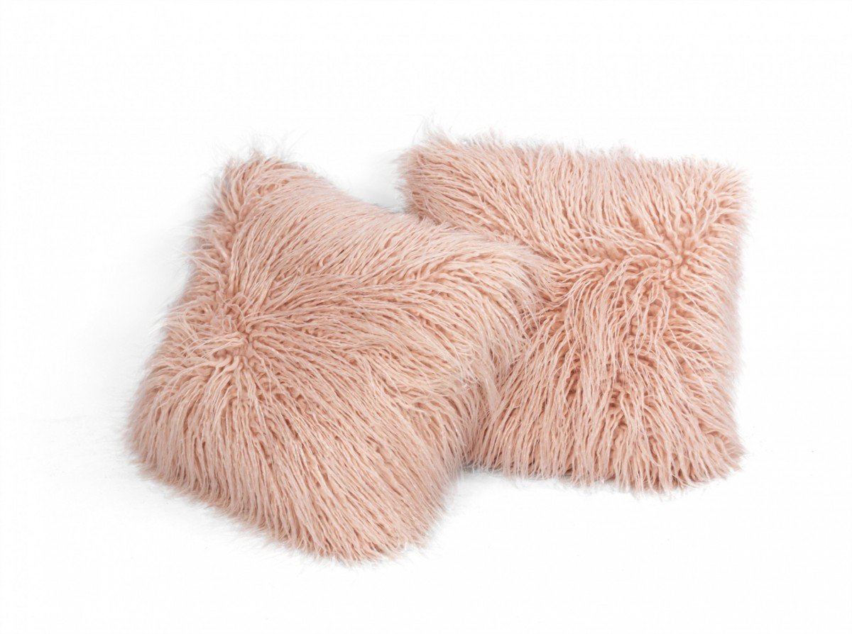 Pair of Pink Lamb's Fur Throw Pillows