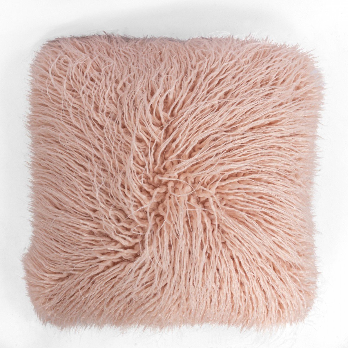 PAIR of Contemporary square pink dyed lamb's fur pillows (PRICED AS PAIR)