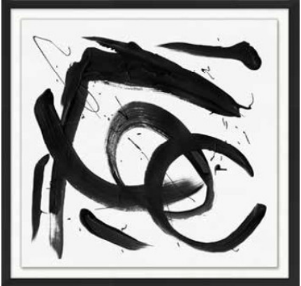 "Practice Stroke 5", Black and white abstract art print in a black frame. (Matching pieces: 060931, 060933, 060935)