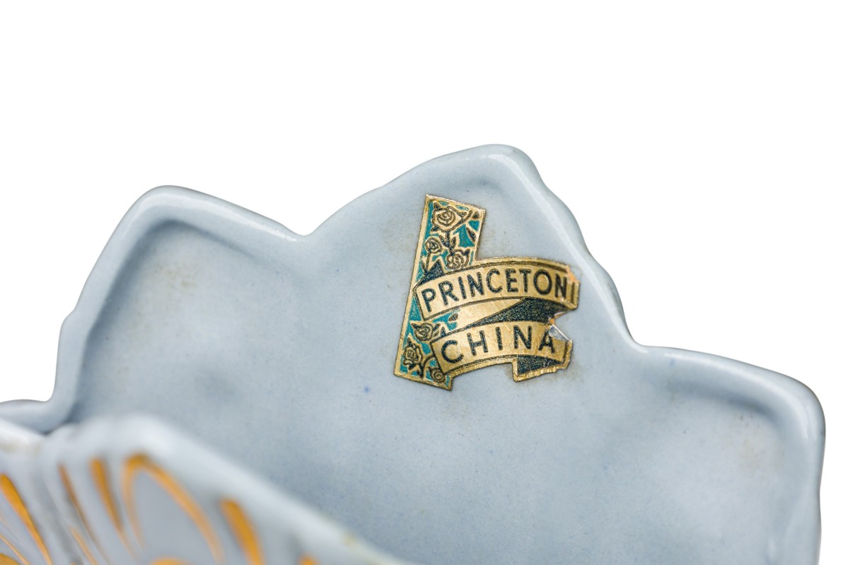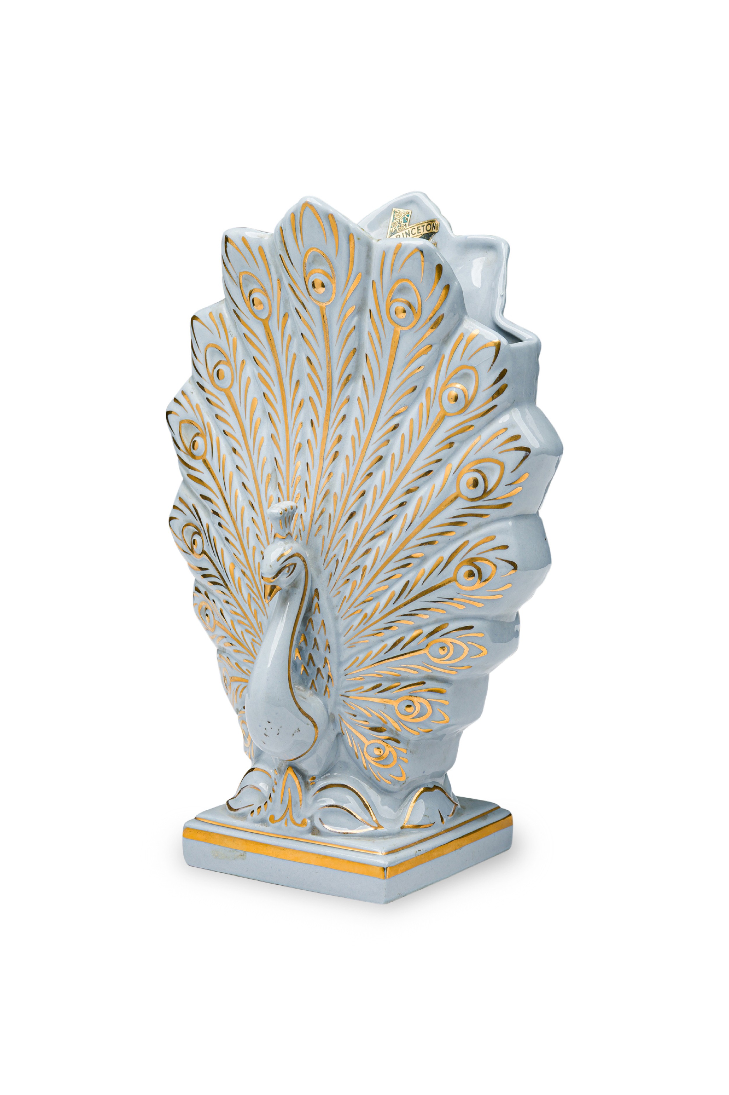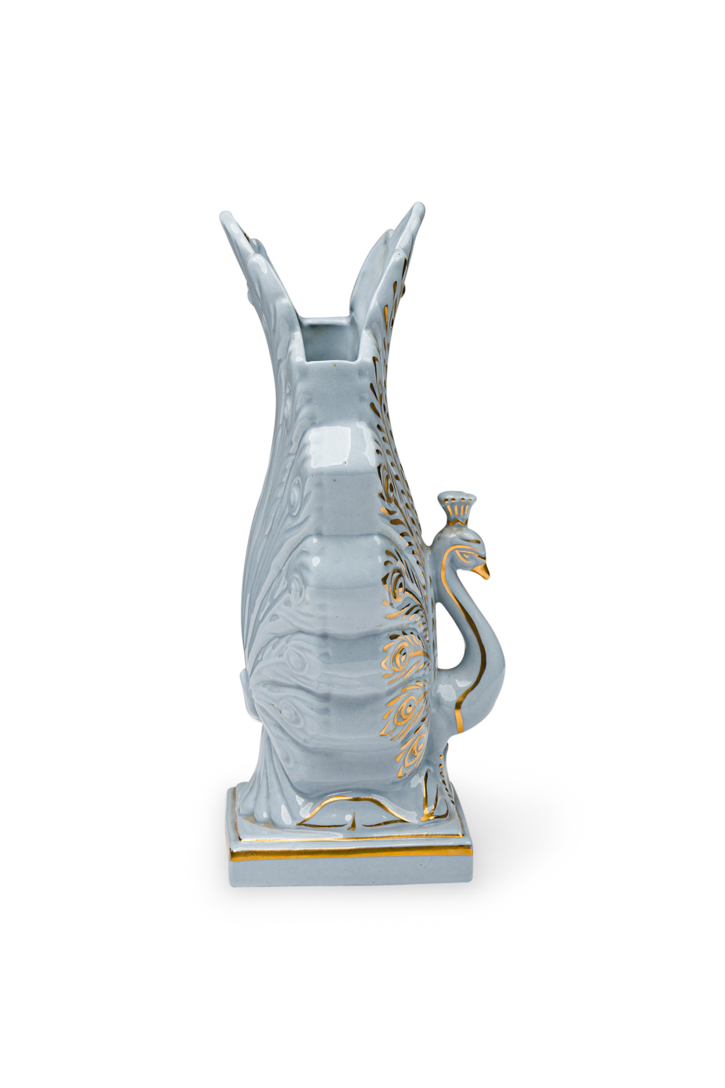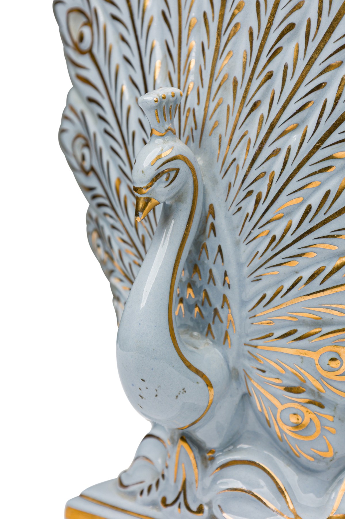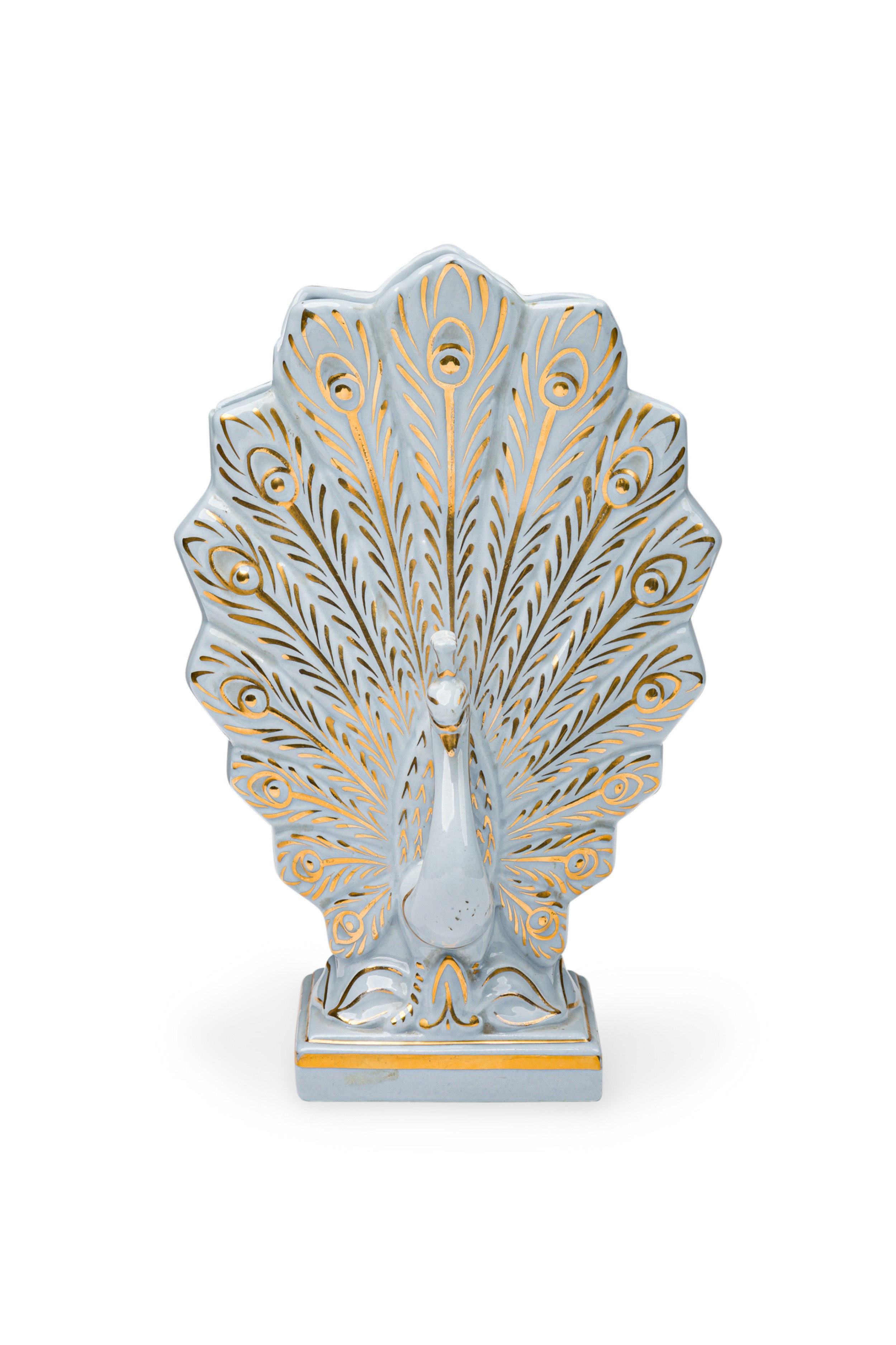 American Mid-Century Porcelain Gilded Peacock Vase