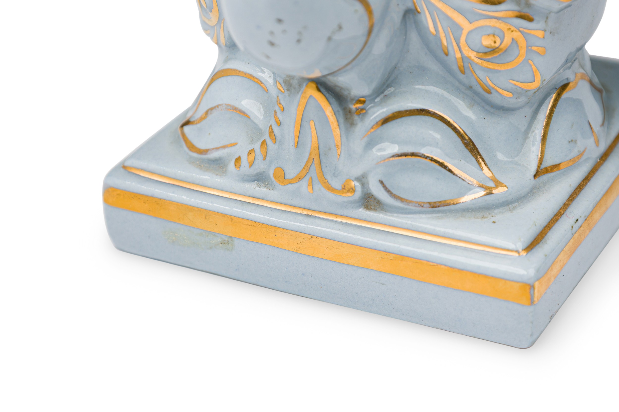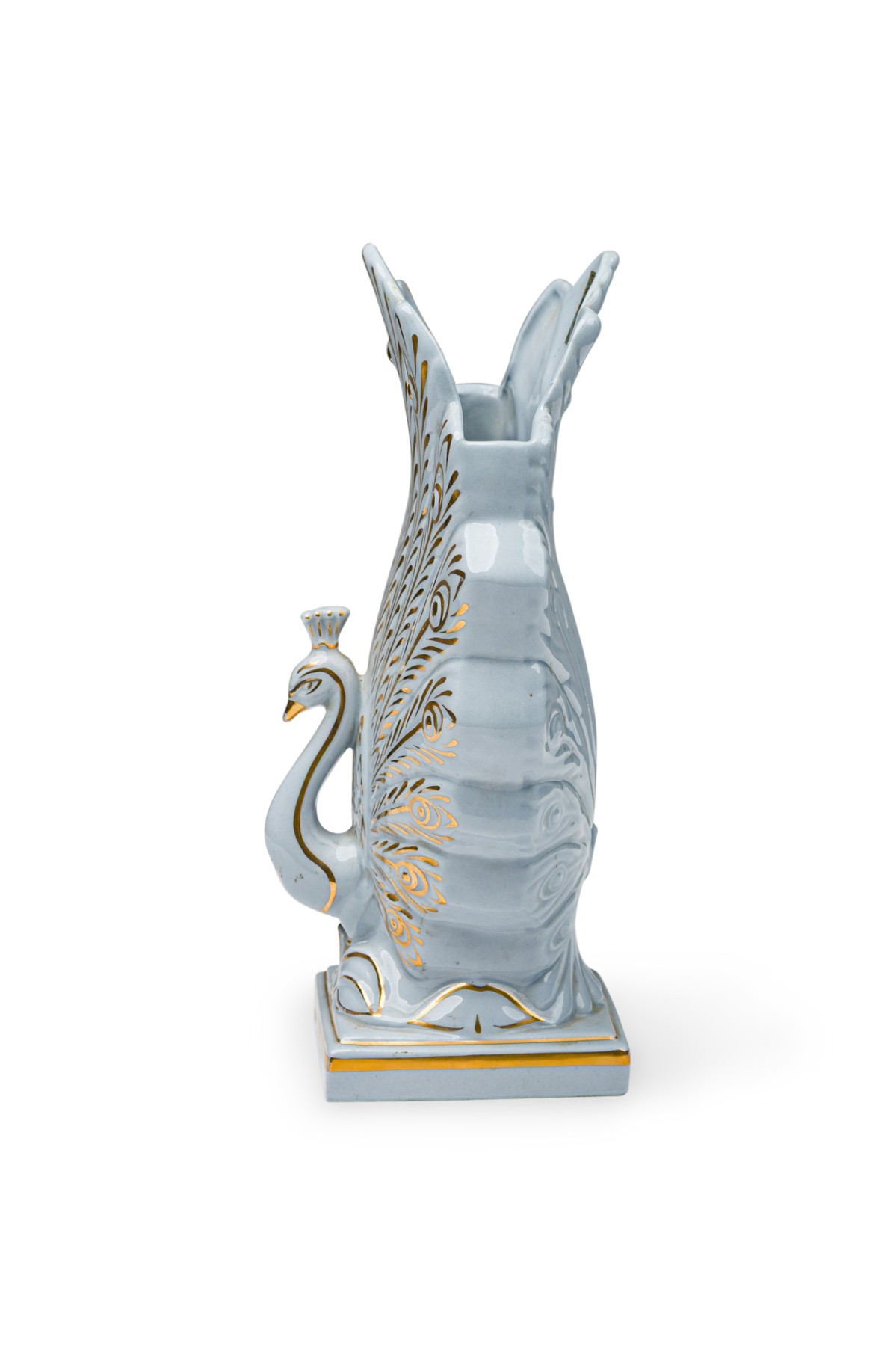American Mid-Century white porcelain and gilt trim peacock vase on a square pedastal base
