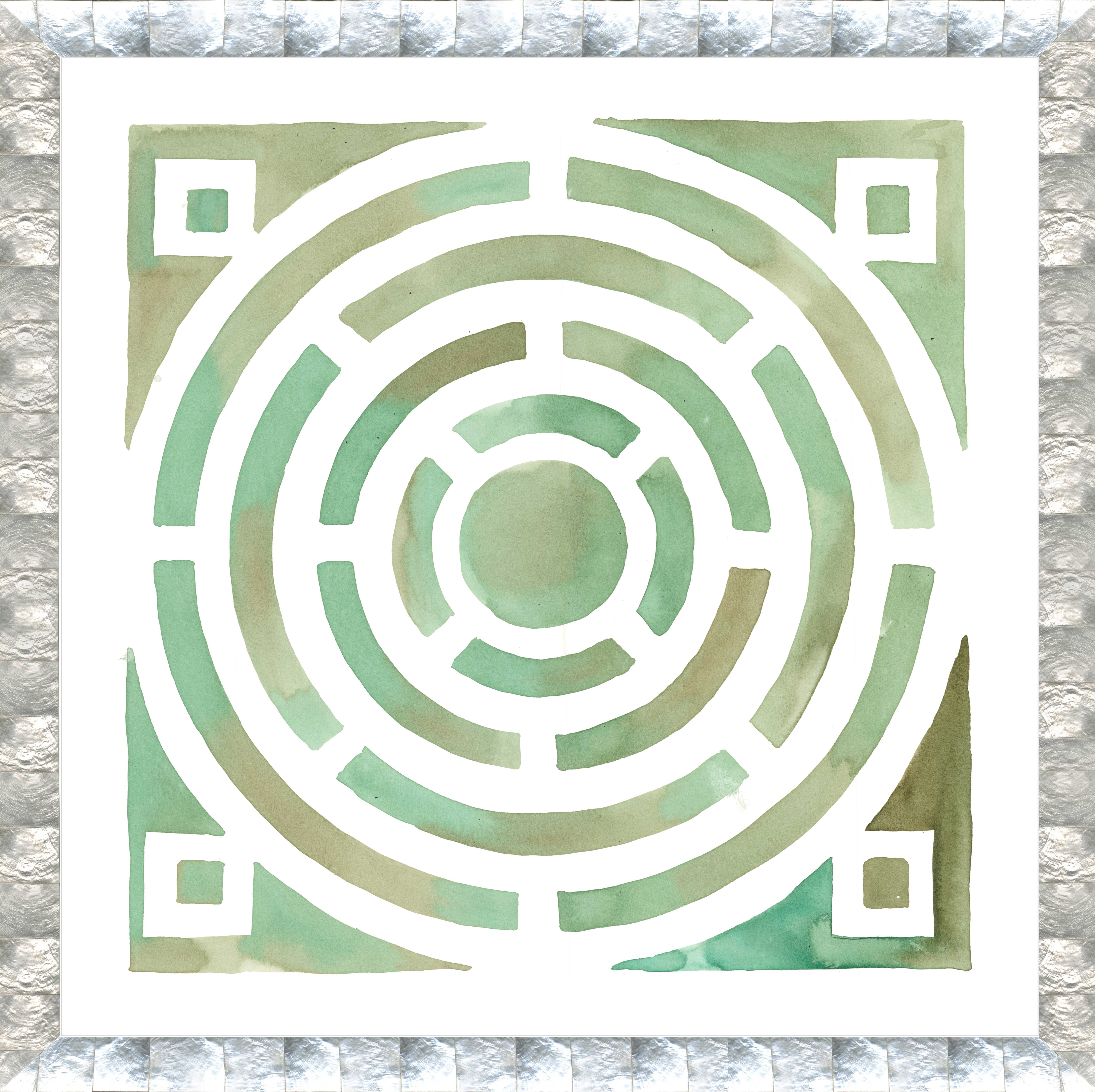 Contemporary print of a watercolor painting of a garden plot in green and white in a faux gray stone frame 061575, 061577, 061578)