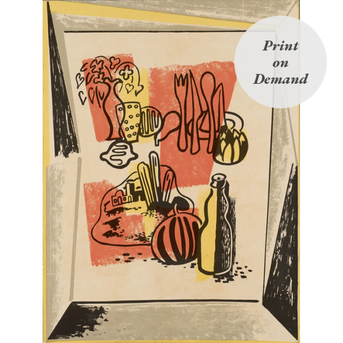 Mid-Century American Mixed Media Collage of Abstract Female Figure With Leaf (Print on Demand)