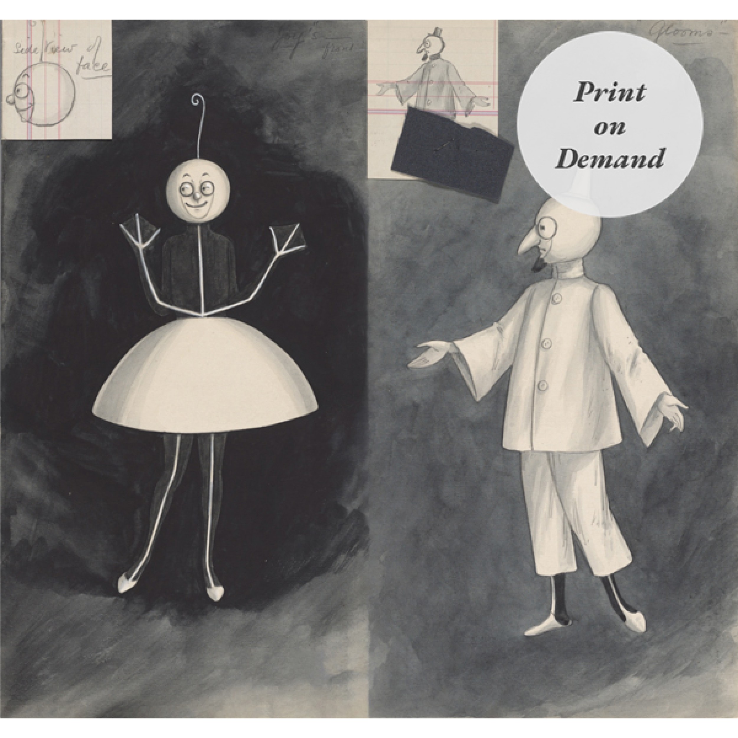 20th century graphite on paper of character sketches in black, white, and gray tones.