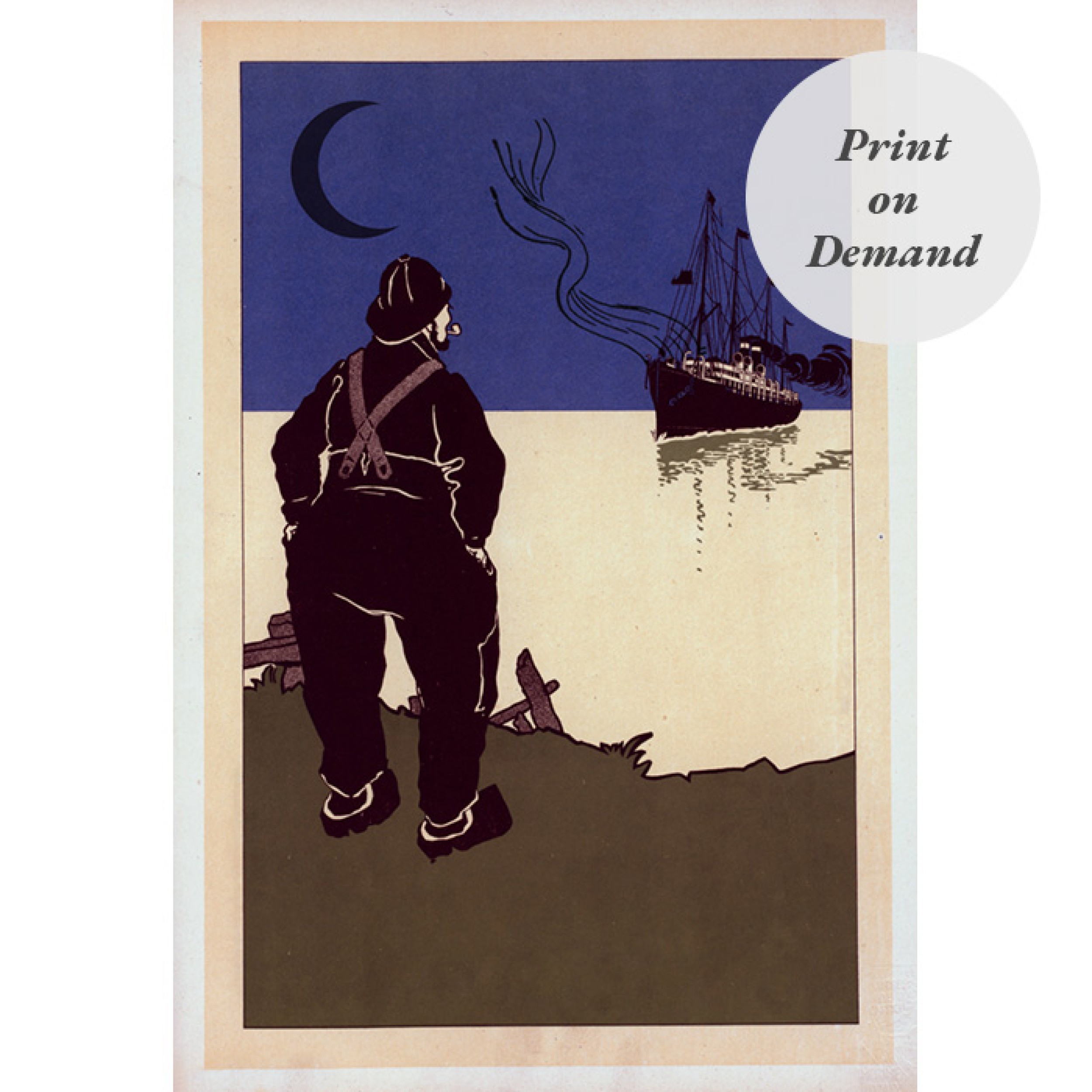 Art Nouveau Lithograph of Sailor Gazing At Steamship (Print on Demand)