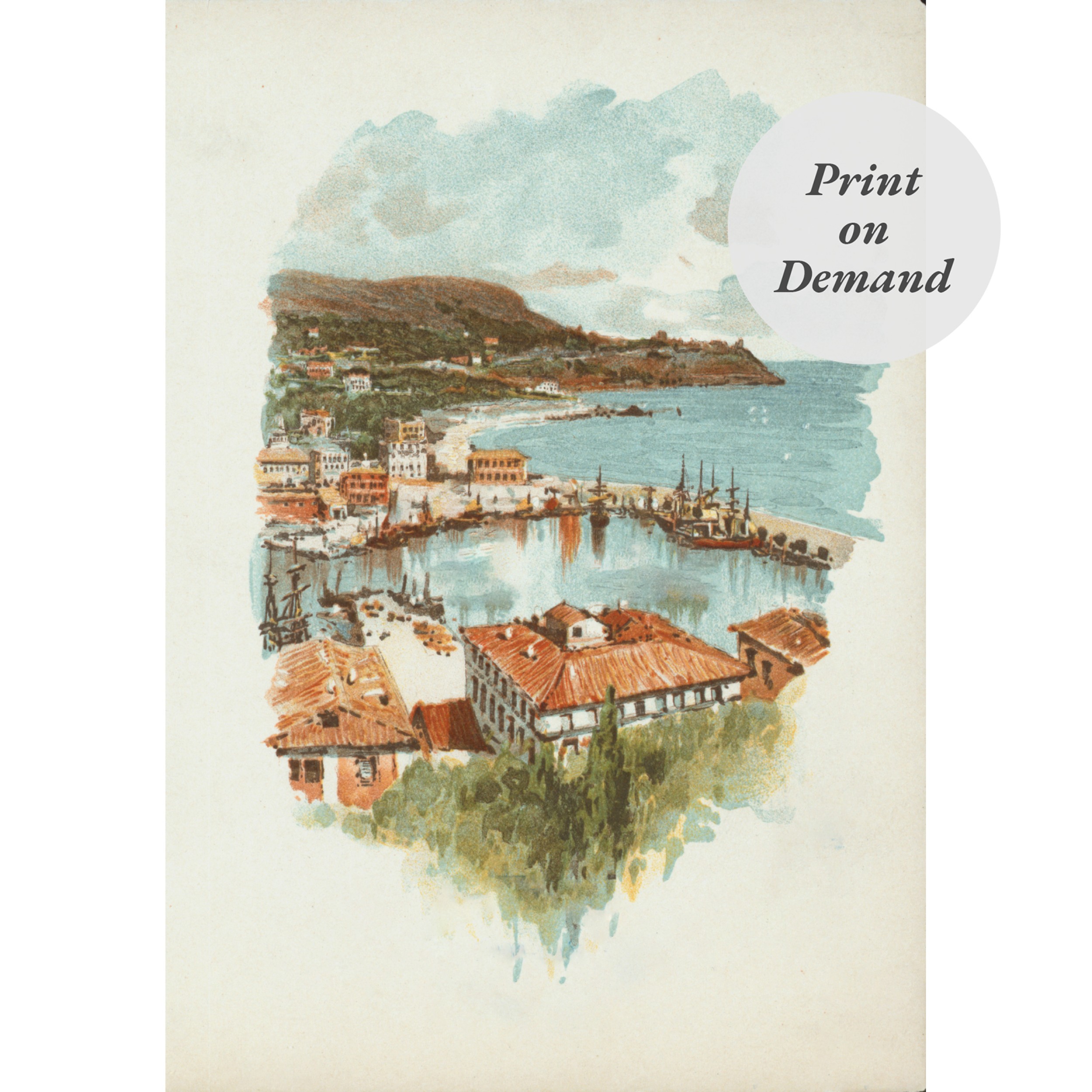 Contemporary Watercolor Painting of Waterfront Village (Print on Demand)