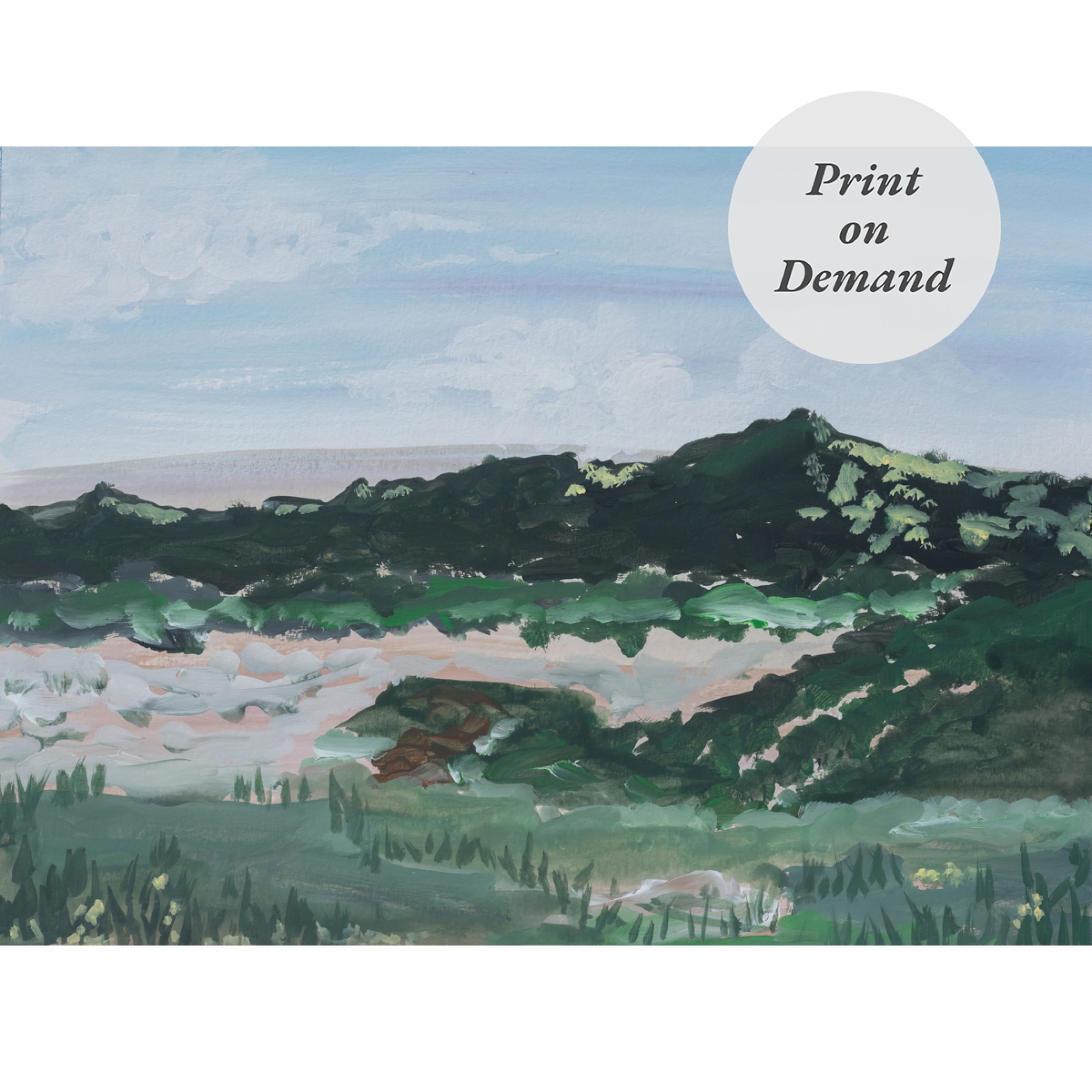 Impressionist Painting of Mountains in Distance (Print on Demand)