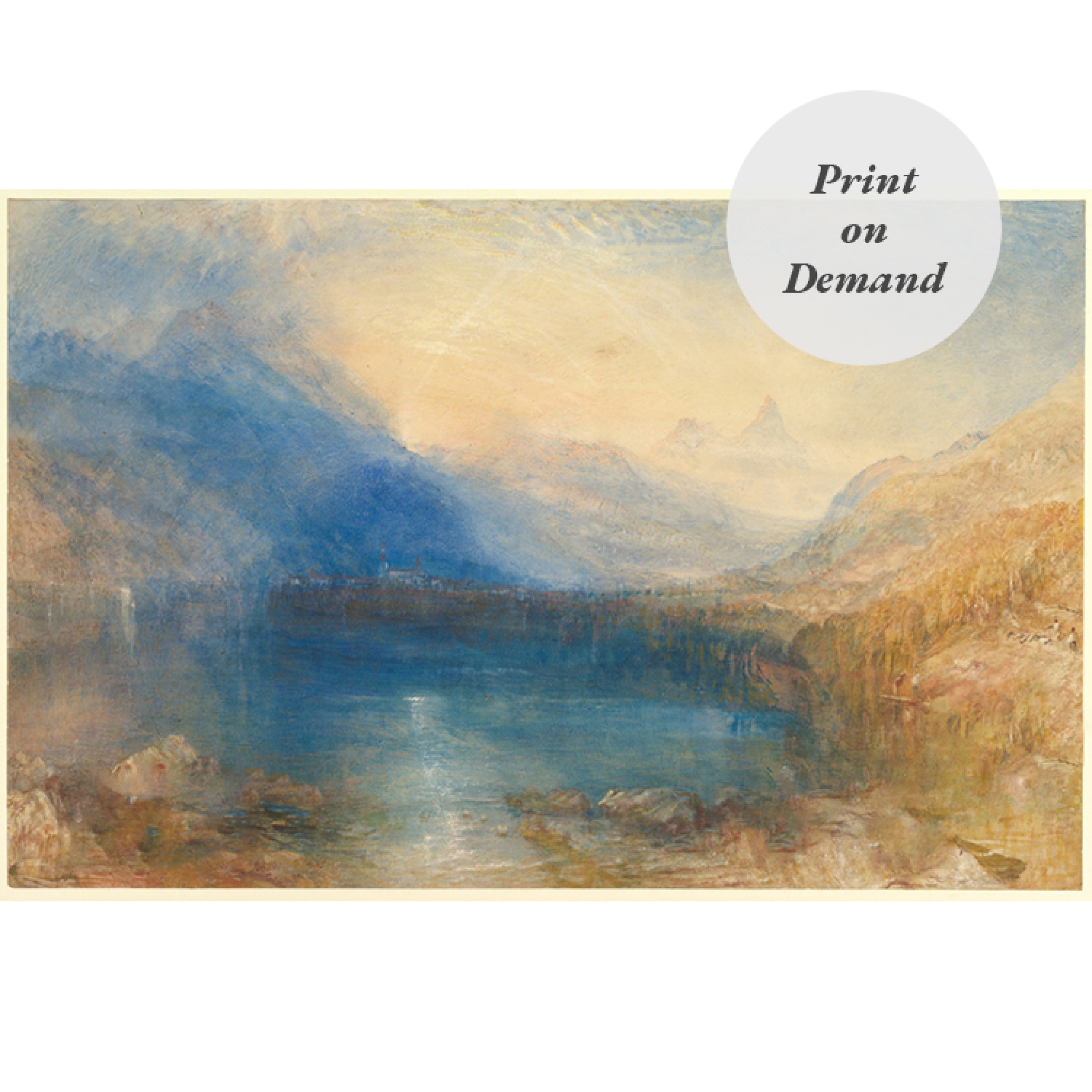 19th Century Watercolor Painting of Mountain Lake Scene (Print on Demand)
