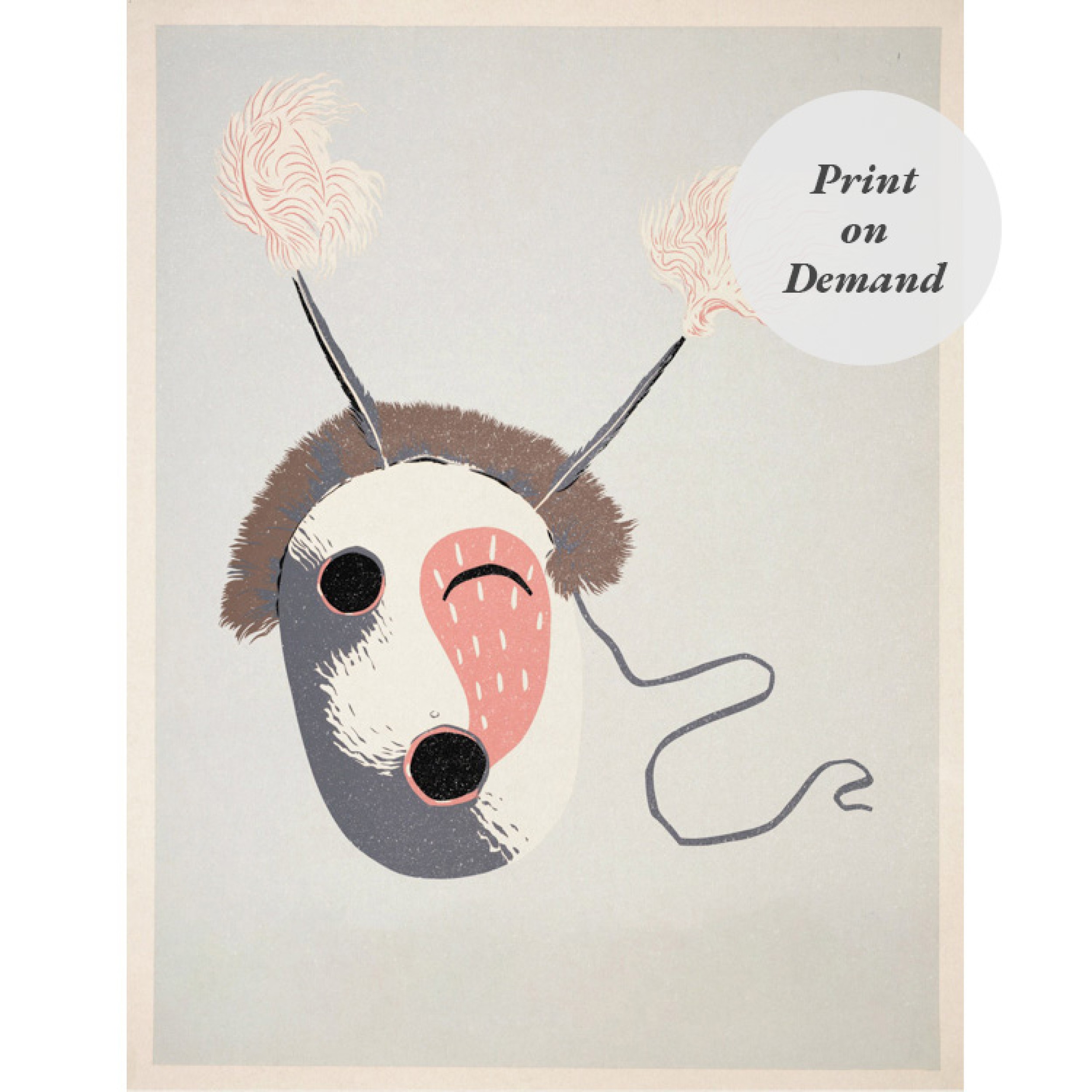 Mid-Century Lithograph of Folkloric Mask (Print on Demand)