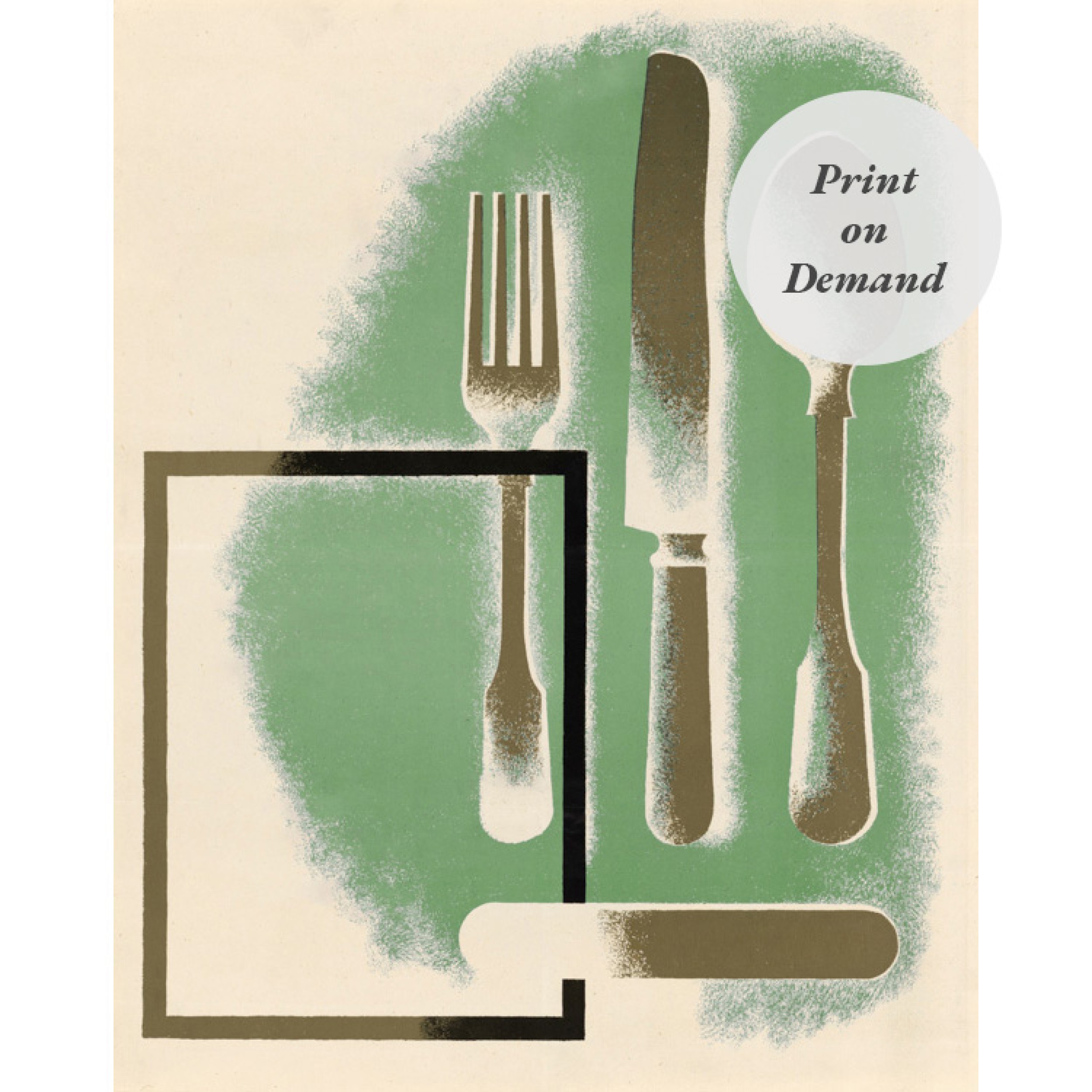 Mid-Century Lithograph of Cutlery (Print on Demand)