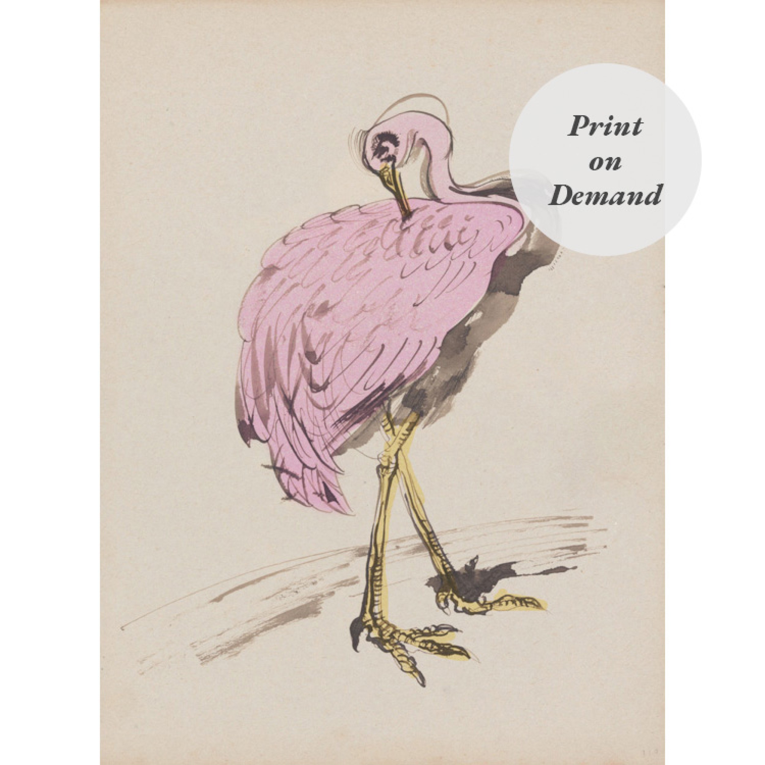 Choose one of the options below.Mid-Century Watercolor Painting of Pink Flamingo (Print on Demand)