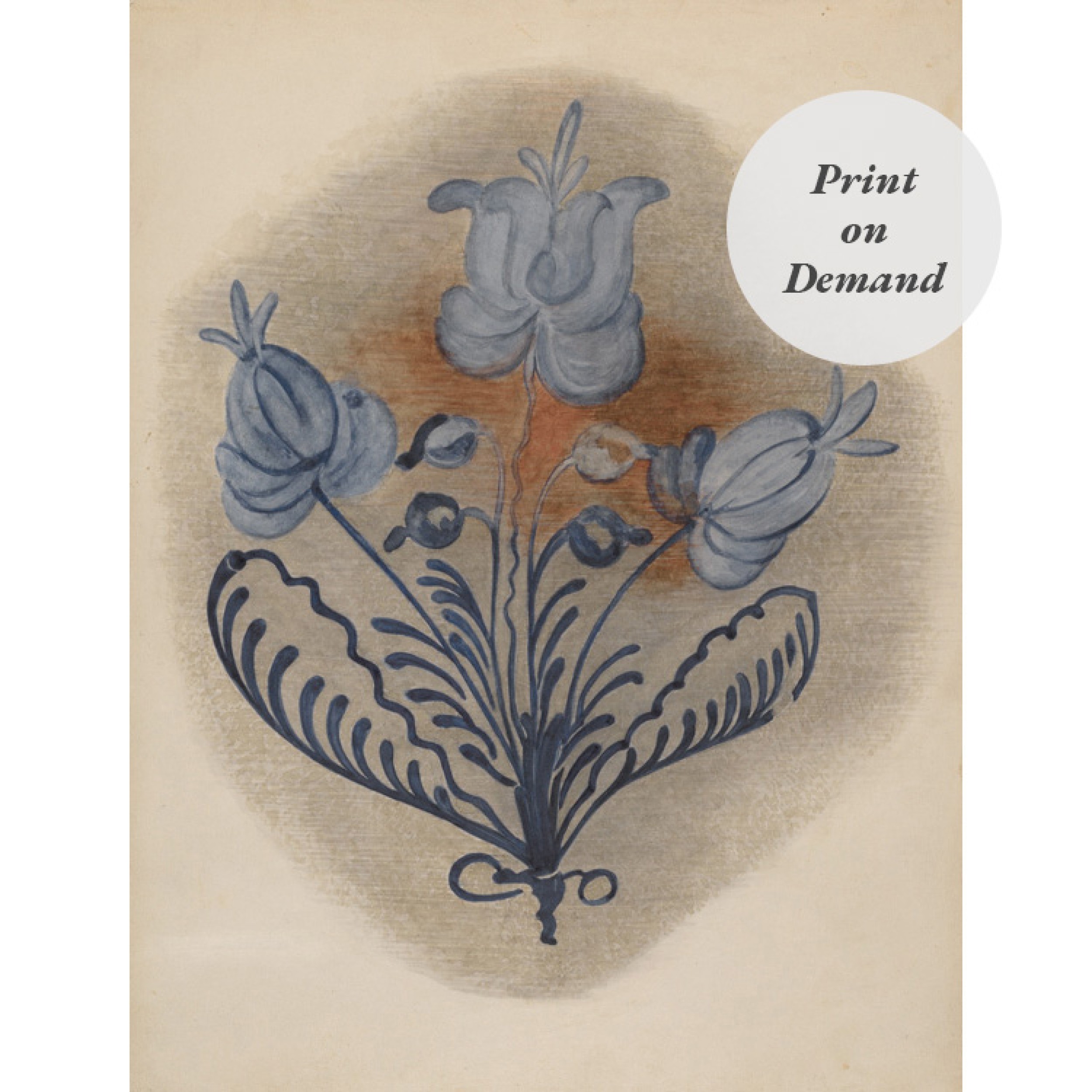 19th Century Watercolor Painting of Blue Flowers (Print on Demand)