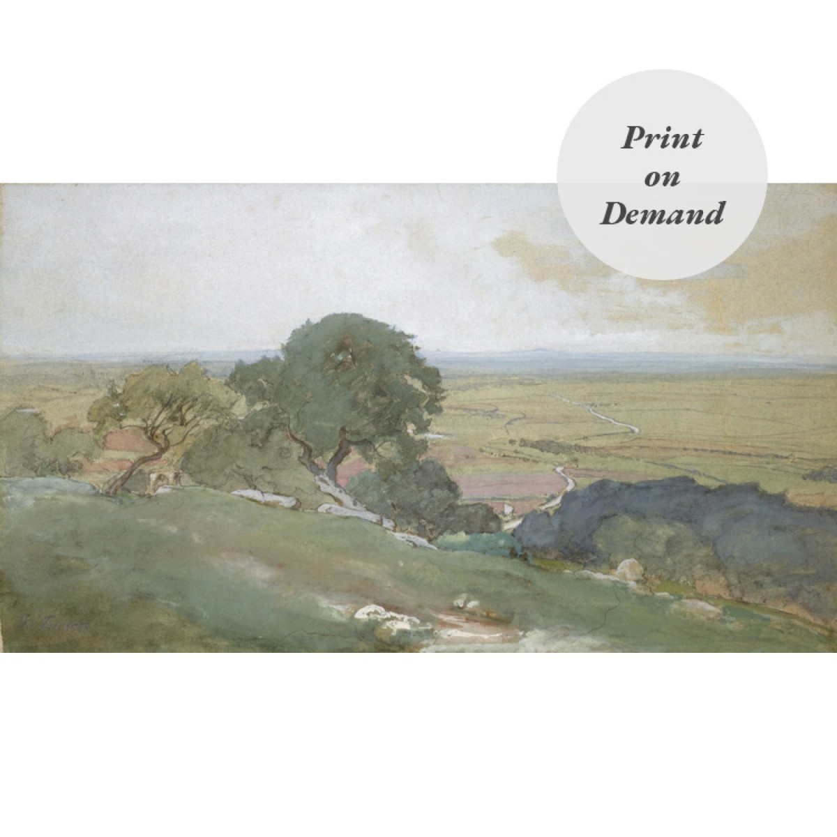 Impressionist Watercolor Painting of Steep Grassy Slope (Print on Demand)
