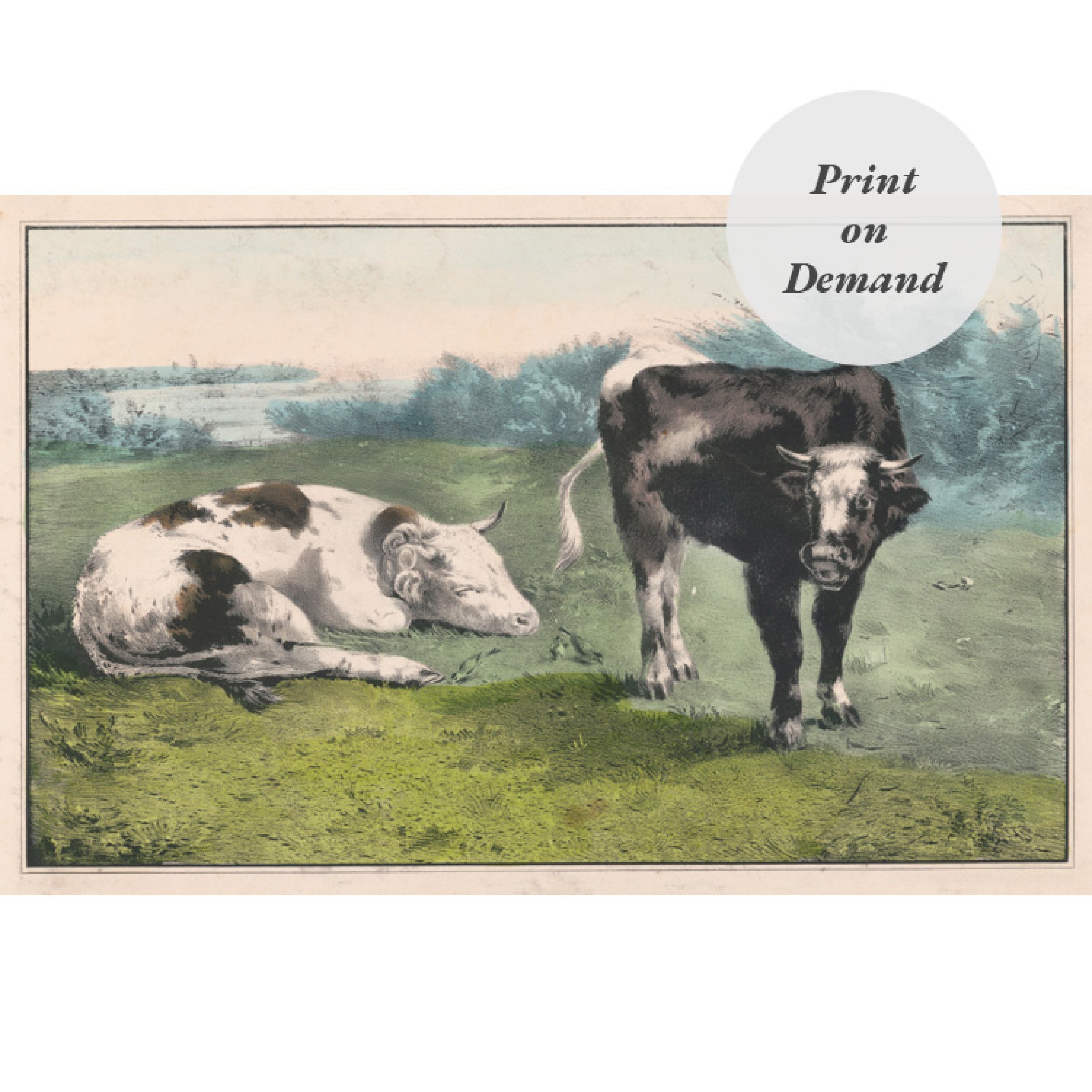 19th Century Lithograph of Cattle on Pasture (Print on Demand)