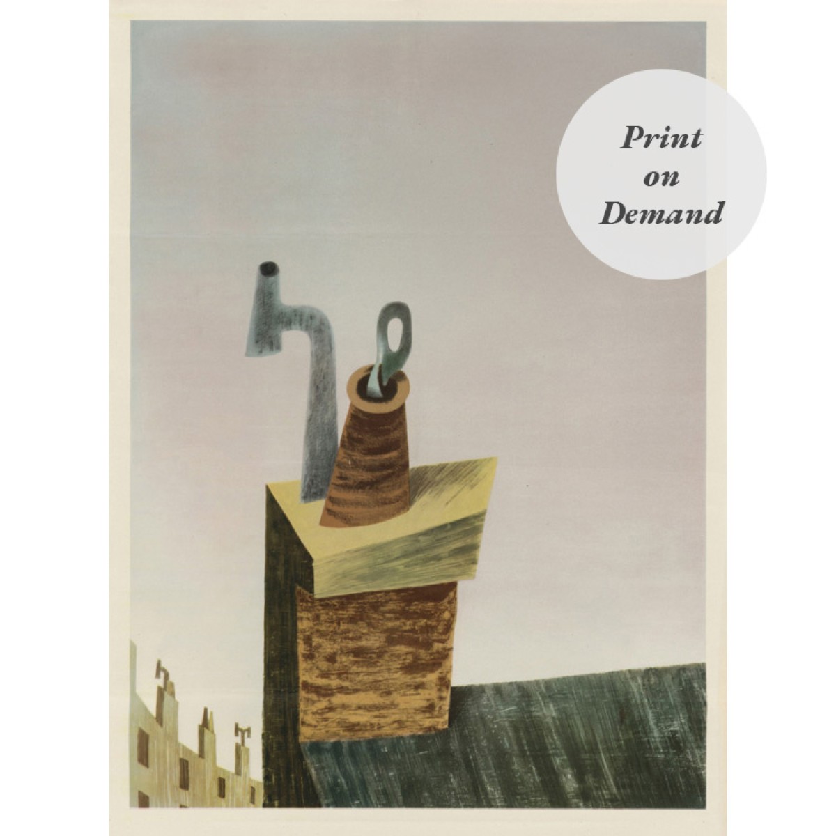 Mid-Century Cityscape Painting of Whimsical Tenements (Print on Demand)