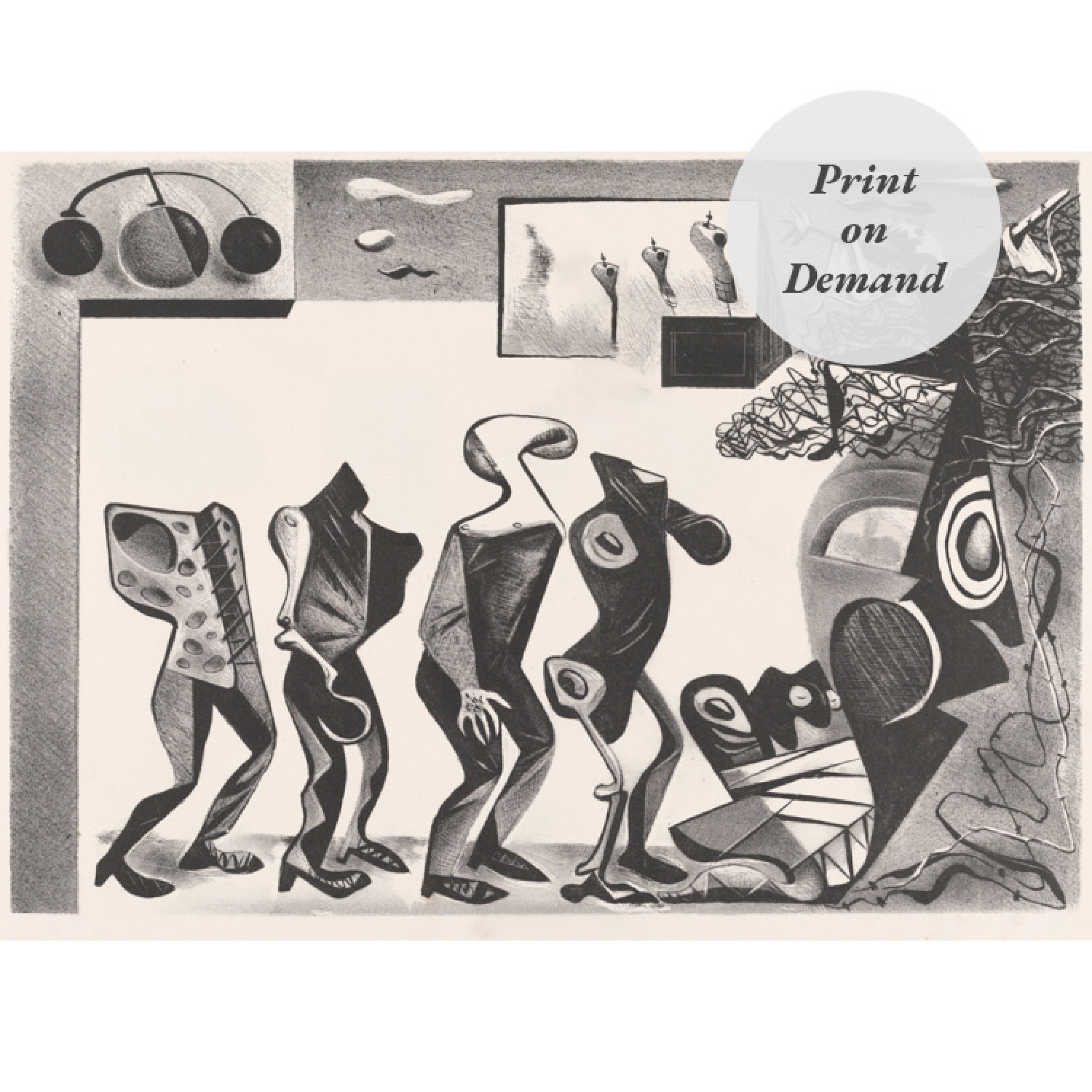 Mid-Century Lithograph of Biomorphic Tribal Procession (Print on Demand)