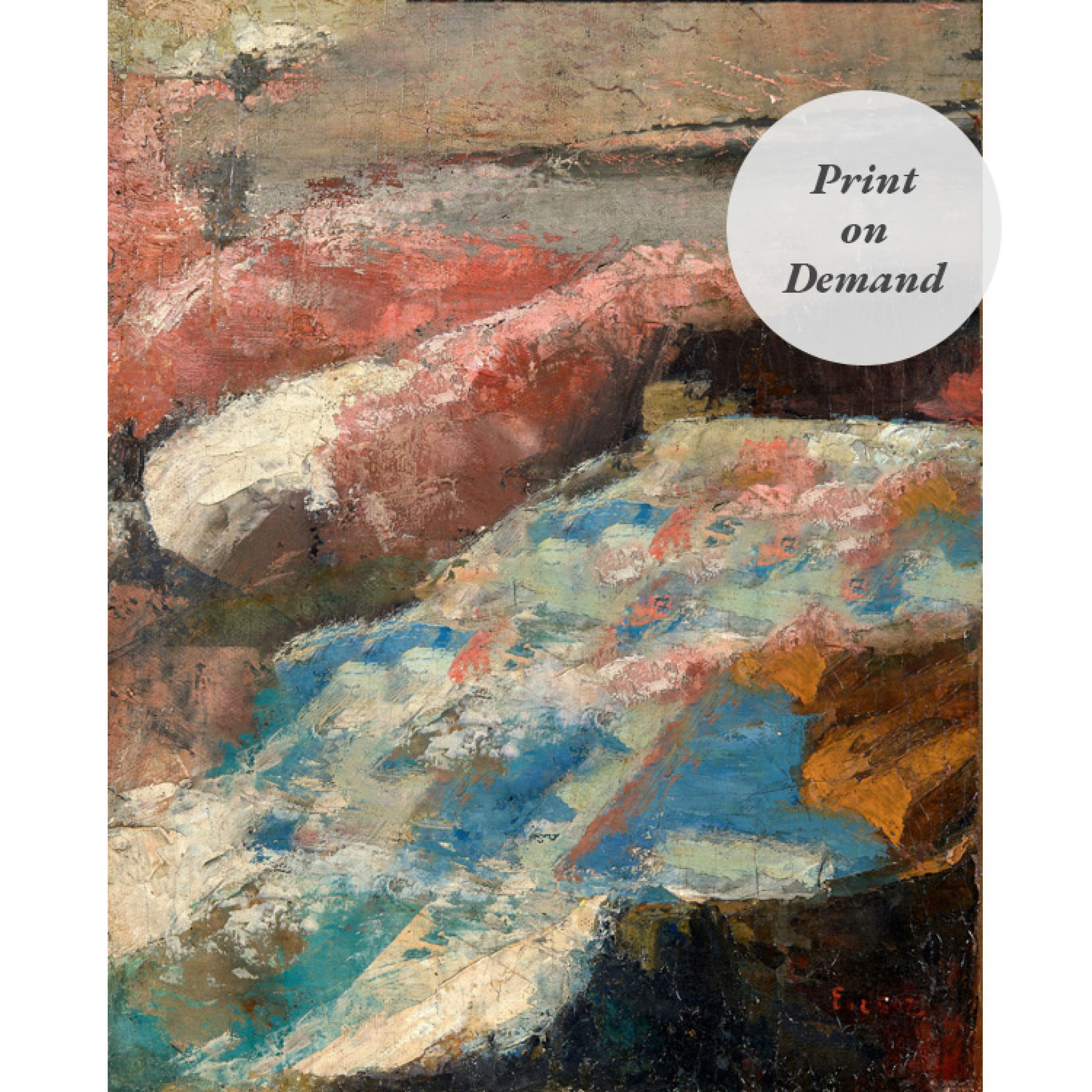 Contemporary Oil Painting of Turbulent Cascade Over Rocks (Print on Demand)